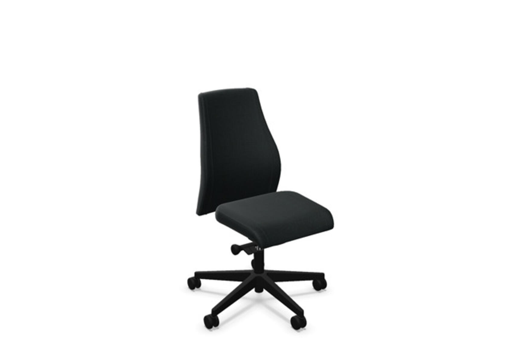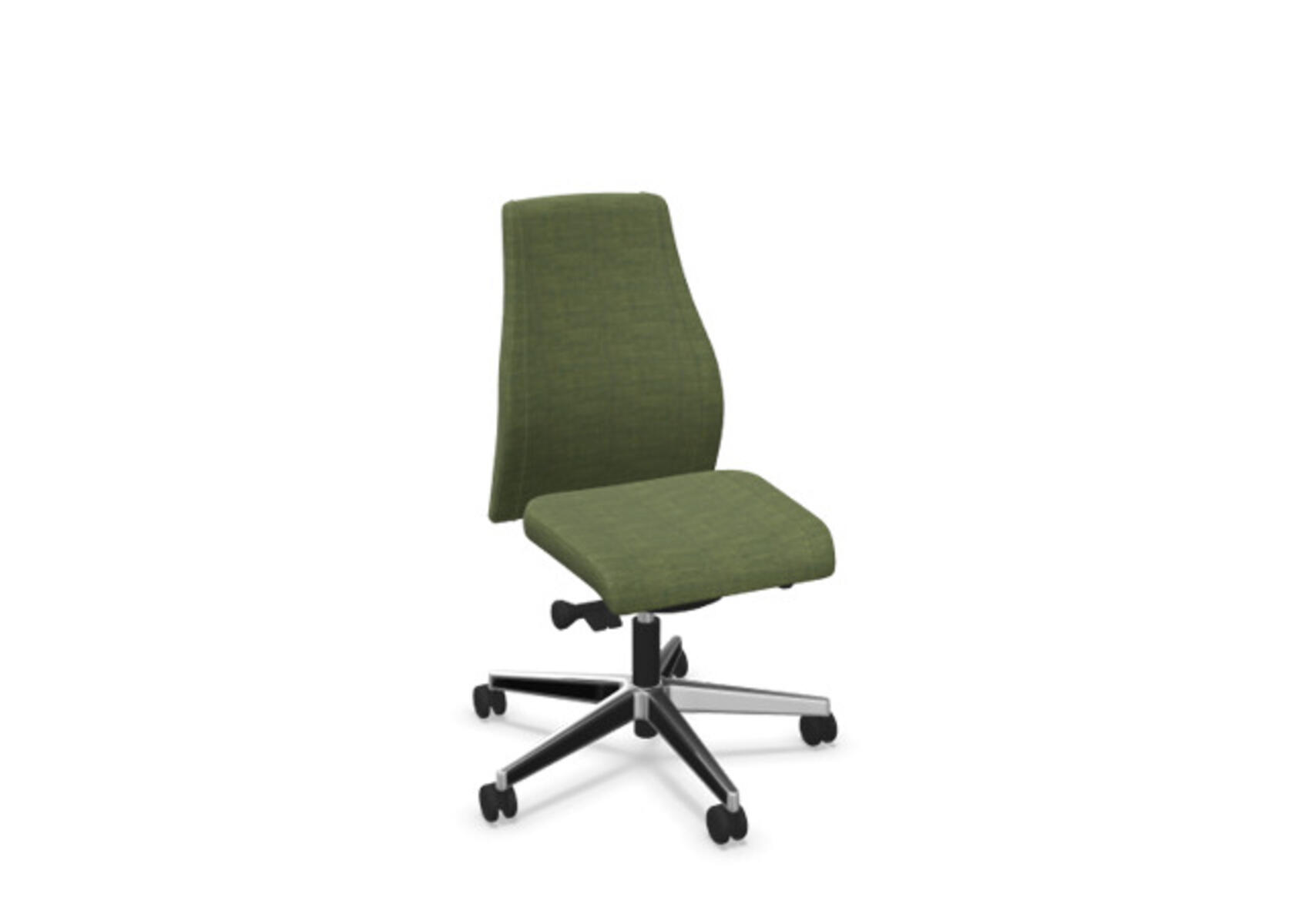 Tyylikäs ja ergonominen toimistotuoli, jossa ympäriverhoiltu korkea selkänoja. Synkronimekanismi tarjoaa optimaalista tukea aktiiviseen istumiseen koko työpäivän ajan. Verhoiltu kestävällä polyesterikankaalla. Synkronoitu selkänojan ja istuimen kallistus mahdollistaa aktiivisen ja mukavan istuma-asennon. Selkänojan kallistuskulma 20° synkronoitu istuimen 11° kulmaan. Selkänoja lukittavissa 5 eri asentoon, mahdollistaen yksilöllisen säädön, ja vastusta voi säätää helposti säätönupilla. Selkänoja on korkeussäädettävä 70 mm ja lukittavissa 13 eri asentoon. Säädettävä, verhoiltu niskatuki, jossa kulma- ja korkeussäätö 75 mm. Tuolissa on Anti-Shock-toiminto, joka estää selkänojaa palautumasta äkillisesti, kun kallistuslukitus vapautetaan. Valittavissa musta polyamidinen tai kiillotettu alumiiniristikko sekä itsestään jarruttavat pyörät pehmeille tai koville lattioille. Lisävarusteena saatavilla lannerangan tuki, joka on manuaalisesti säädettävissä syvyyssuunnassa (20 mm) säätönupin avulla. Käsinojat (2D, 3D tai 4D) myydään erikseen.