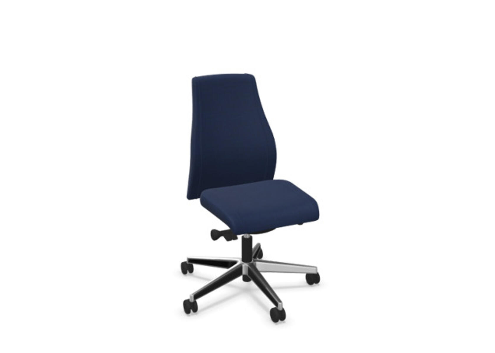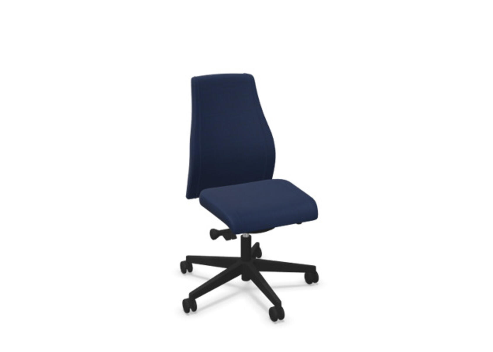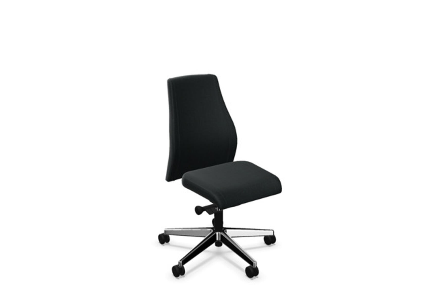 Tyylikäs ja ergonominen toimistotuoli, jossa ympäriverhoiltu matala selkänoja. Synkronimekanismi tarjoaa optimaalista tukea aktiiviseen istumiseen koko työpäivän ajan. Verhoiltu kestävällä polyesterikankaalla. Synkronoitu selkänojan ja istuimen kallistus mahdollistaa aktiivisen ja mukavan istuma-asennon. Selkänojan kallistuskulma 23° synkronoitu istuinosan kallistuskulmaan 10°. Selkänoja lukittavissa 5 eri asentoon, mahdollistaen yksilöllisen säädön, ja vastusta voi säätää helposti säätönupilla 7 eri kohtaan. Selkänoja on korkeussäädettävä 70 mm ja lukittavissa 13 eri asentoon. Istuinsyvyys säädettävissä 60 mm. Negatiivinen istuinosan kallistus –2°, synkronoitu selkänojan 5° kallistukseen. Tämä takaa optimaalisen tuen kaikissa kallistuskulmissa. Tuolissa on Anti-Shock-toiminto, joka estää selkänojaa palautumasta äkillisesti, kun kallistuslukitus vapautetaan. Valittavissa musta polyamidinen tai kiillotettu alumiiniristikko sekä itsestään jarruttavat pyörät pehmeille tai koville lattioille. Lisävarusteena saatavilla lannerangan tuki, joka on manuaalisesti säädettävissä syvyyssuunnassa (20 mm) säätönupin avulla. Käsinojat (2D, 3D tai 4D) myydään erikseen.