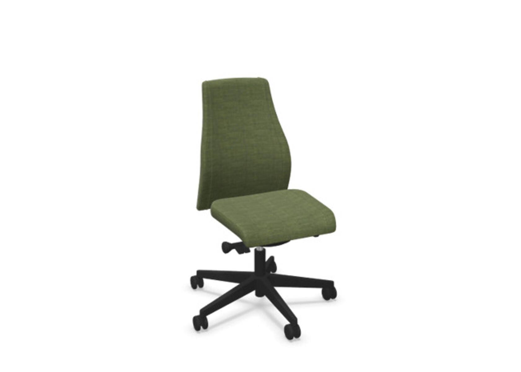 Tyylikäs ja ergonominen toimistotuoli, jossa ympäriverhoiltu matala selkänoja. Synkronimekanismi tarjoaa optimaalista tukea aktiiviseen istumiseen koko työpäivän ajan. Verhoiltu villakankaalla. Synkronoitu selkänojan ja istuimen kallistus mahdollistaa aktiivisen ja mukavan istuma-asennon. Selkänojan kallistuskulma 20° synkronoitu istuimen 11° kulmaan. Selkänoja lukittavissa 5 eri asentoon, mahdollistaen yksilöllisen säädön, ja vastusta voi säätää helposti säätönupilla. Selkänoja on korkeussäädettävä 70 mm ja lukittavissa 13 eri asentoon. Tuolissa on Anti-Shock-toiminto, joka estää selkänojaa palautumasta äkillisesti, kun kallistuslukitus vapautetaan. Valittavissa musta polyamidinen tai kiillotettu alumiiniristikko sekä itsestään jarruttavat pyörät pehmeille tai koville lattioille. Lisävarusteena saatavilla lannerangan tuki, joka on manuaalisesti säädettävissä syvyyssuunnassa (20 mm) säätönupin avulla. Käsinojat (2D, 3D tai 4D) myydään erikseen.