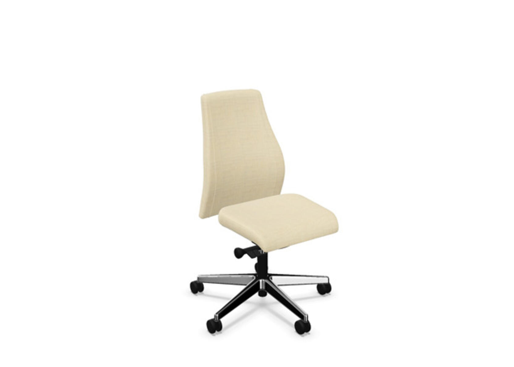 Tyylikäs ja ergonominen toimistotuoli, jossa ympäriverhoiltu matala selkänoja. Synkronimekanismi tarjoaa optimaalista tukea aktiiviseen istumiseen koko työpäivän ajan. Verhoiltu kestävällä polyesterikankaalla. Synkronoitu selkänojan ja istuimen kallistus mahdollistaa aktiivisen ja mukavan istuma-asennon. Selkänojan kallistuskulma 20° synkronoitu istuimen 11° kulmaan. Selkänoja lukittavissa 5 eri asentoon, mahdollistaen yksilöllisen säädön, ja vastusta voi säätää helposti säätönupilla. Selkänoja on korkeussäädettävä 70 mm ja lukittavissa 13 eri asentoon. Tuolissa on Anti-Shock-toiminto, joka estää selkänojaa palautumasta äkillisesti, kun kallistuslukitus vapautetaan. Valittavissa musta polyamidinen tai kiillotettu alumiiniristikko sekä itsestään jarruttavat pyörät pehmeille tai koville lattioille. Lisävarusteena saatavilla lannerangan tuki, joka on manuaalisesti säädettävissä syvyyssuunnassa (20 mm) säätönupin avulla. Käsinojat (2D, 3D tai 4D) myydään erikseen.