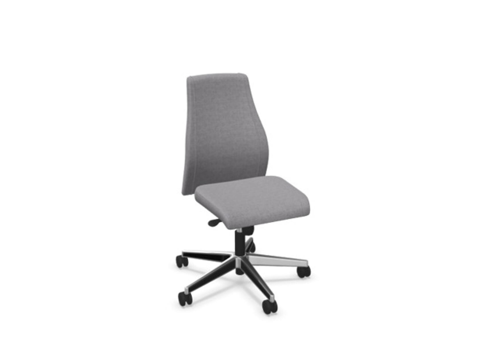 Tyylikäs ja ergonominen toimistotuoli, jossa ympäriverhoiltu matala selkänoja. Synkronimekanismi tarjoaa optimaalista tukea aktiiviseen istumiseen koko työpäivän ajan. Verhoiltu kestävällä polyesterikankaalla. Synkronoitu selkänojan ja istuimen kallistus mahdollistaa aktiivisen ja mukavan istuma-asennon. Selkänojan kallistuskulma 23° synkronoitu istuinosan kallistuskulmaan 10°. Selkänoja lukittavissa 5 eri asentoon, mahdollistaen yksilöllisen säädön, ja vastusta voi säätää helposti säätönupilla 7 eri kohtaan. Selkänoja on korkeussäädettävä 70 mm ja lukittavissa 13 eri asentoon. Istuinsyvyys säädettävissä 60 mm. Negatiivinen istuinosan kallistus –2°, synkronoitu selkänojan 5° kallistukseen. Tämä takaa optimaalisen tuen kaikissa kallistuskulmissa. Tuolissa on Anti-Shock-toiminto, joka estää selkänojaa palautumasta äkillisesti, kun kallistuslukitus vapautetaan. Valittavissa musta polyamidinen tai kiillotettu alumiiniristikko sekä itsestään jarruttavat pyörät pehmeille tai koville lattioille. Lisävarusteena saatavilla lannerangan tuki, joka on manuaalisesti säädettävissä syvyyssuunnassa (20 mm) säätönupin avulla. Käsinojat (2D, 3D tai 4D) myydään erikseen.