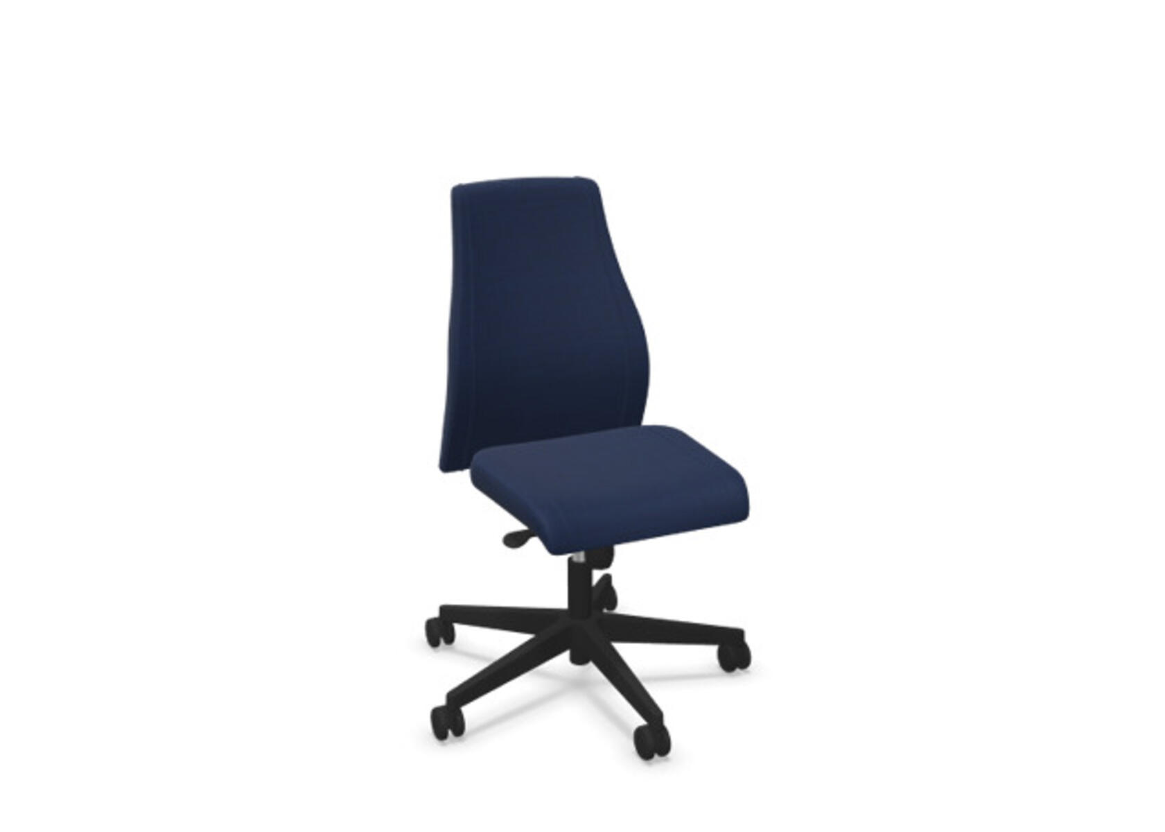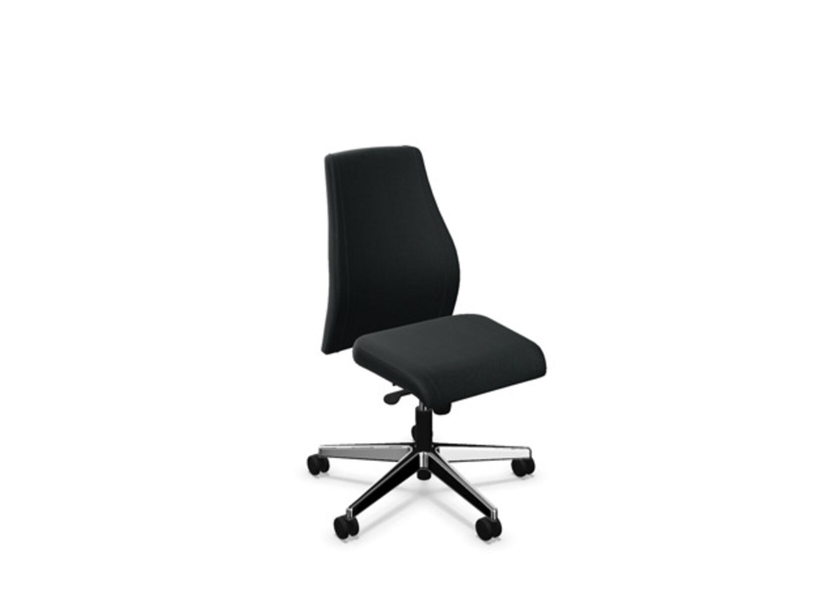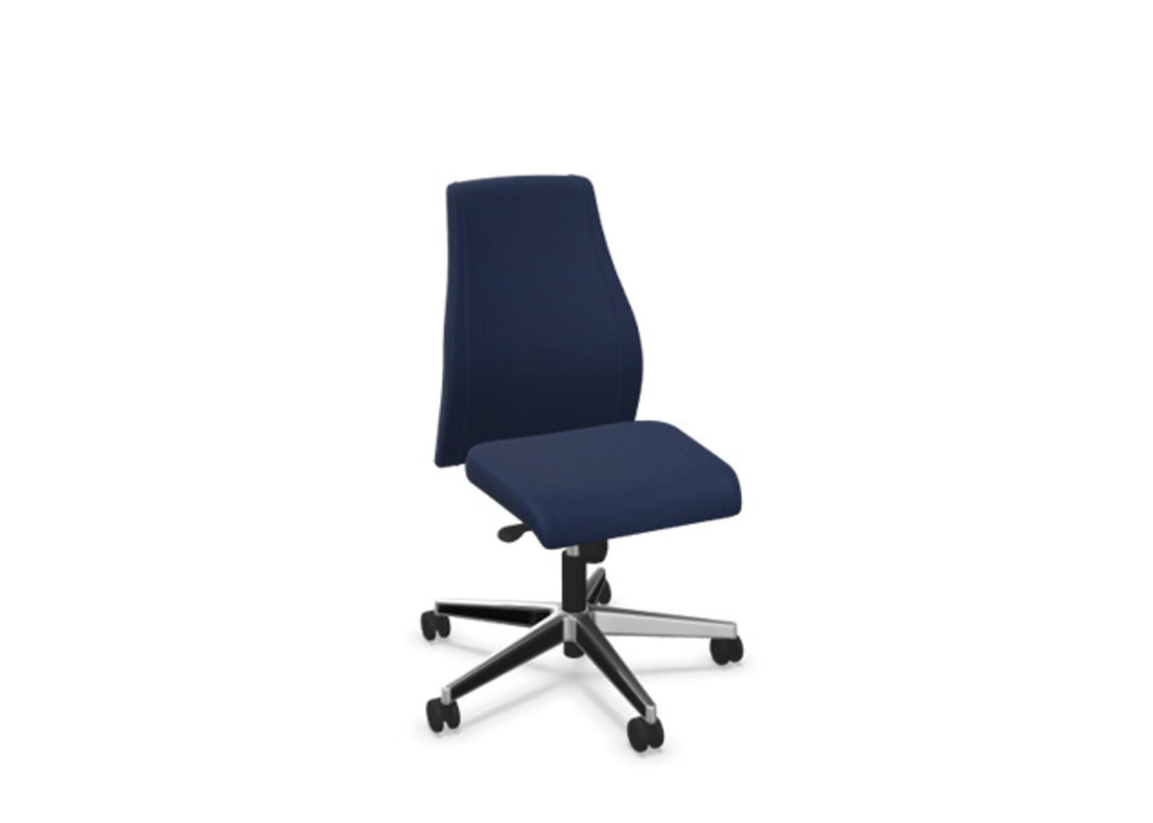 Tyylikäs ja ergonominen toimistotuoli, jossa ympäriverhoiltu korkea selkänoja. Synkronimekanismi tarjoaa optimaalista tukea aktiiviseen istumiseen koko työpäivän ajan. Verhoiltu kestävällä polyesterikankaalla. Synkronoitu selkänojan ja istuimen kallistus mahdollistaa aktiivisen ja mukavan istuma-asennon. Selkänojan kallistuskulma 20° synkronoitu istuimen 11° kulmaan. Selkänoja lukittavissa 5 eri asentoon, mahdollistaen yksilöllisen säädön, ja vastusta voi säätää helposti säätönupilla. Selkänoja on korkeussäädettävä 70 mm ja lukittavissa 13 eri asentoon. Säädettävä, verhoiltu niskatuki, jossa kulma- ja korkeussäätö 75 mm. Tuolissa on Anti-Shock-toiminto, joka estää selkänojaa palautumasta äkillisesti, kun kallistuslukitus vapautetaan. Valittavissa musta polyamidinen tai kiillotettu alumiiniristikko sekä itsestään jarruttavat pyörät pehmeille tai koville lattioille. Lisävarusteena saatavilla lannerangan tuki, joka on manuaalisesti säädettävissä syvyyssuunnassa (20 mm) säätönupin avulla. Käsinojat (2D, 3D tai 4D) myydään erikseen.