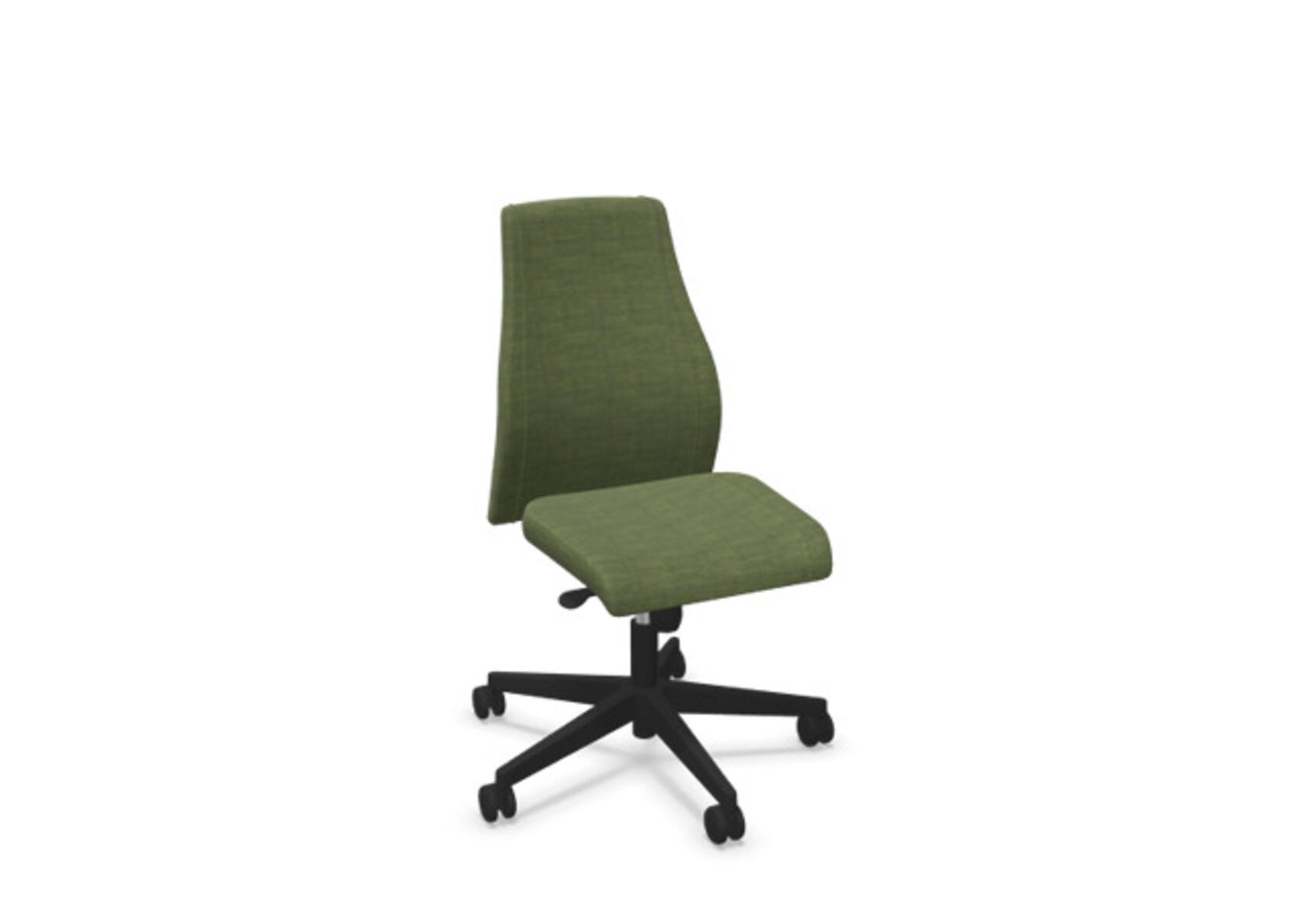 Tyylikäs ja ergonominen toimistotuoli, jossa ympäriverhoiltu matala selkänoja. Synkronimekanismi tarjoaa optimaalista tukea aktiiviseen istumiseen koko työpäivän ajan. Verhoiltu kestävällä polyesterikankaalla. Synkronoitu selkänojan ja istuimen kallistus mahdollistaa aktiivisen ja mukavan istuma-asennon. Selkänojan kallistuskulma 20° synkronoitu istuimen 11° kulmaan. Selkänoja lukittavissa 5 eri asentoon, mahdollistaen yksilöllisen säädön, ja vastusta voi säätää helposti säätönupilla. Selkänoja on korkeussäädettävä 70 mm ja lukittavissa 13 eri asentoon. Tuolissa on Anti-Shock-toiminto, joka estää selkänojaa palautumasta äkillisesti, kun kallistuslukitus vapautetaan. Valittavissa musta polyamidinen tai kiillotettu alumiiniristikko sekä itsestään jarruttavat pyörät pehmeille tai koville lattioille. Lisävarusteena saatavilla lannerangan tuki, joka on manuaalisesti säädettävissä syvyyssuunnassa (20 mm) säätönupin avulla. Käsinojat (2D, 3D tai 4D) myydään erikseen.