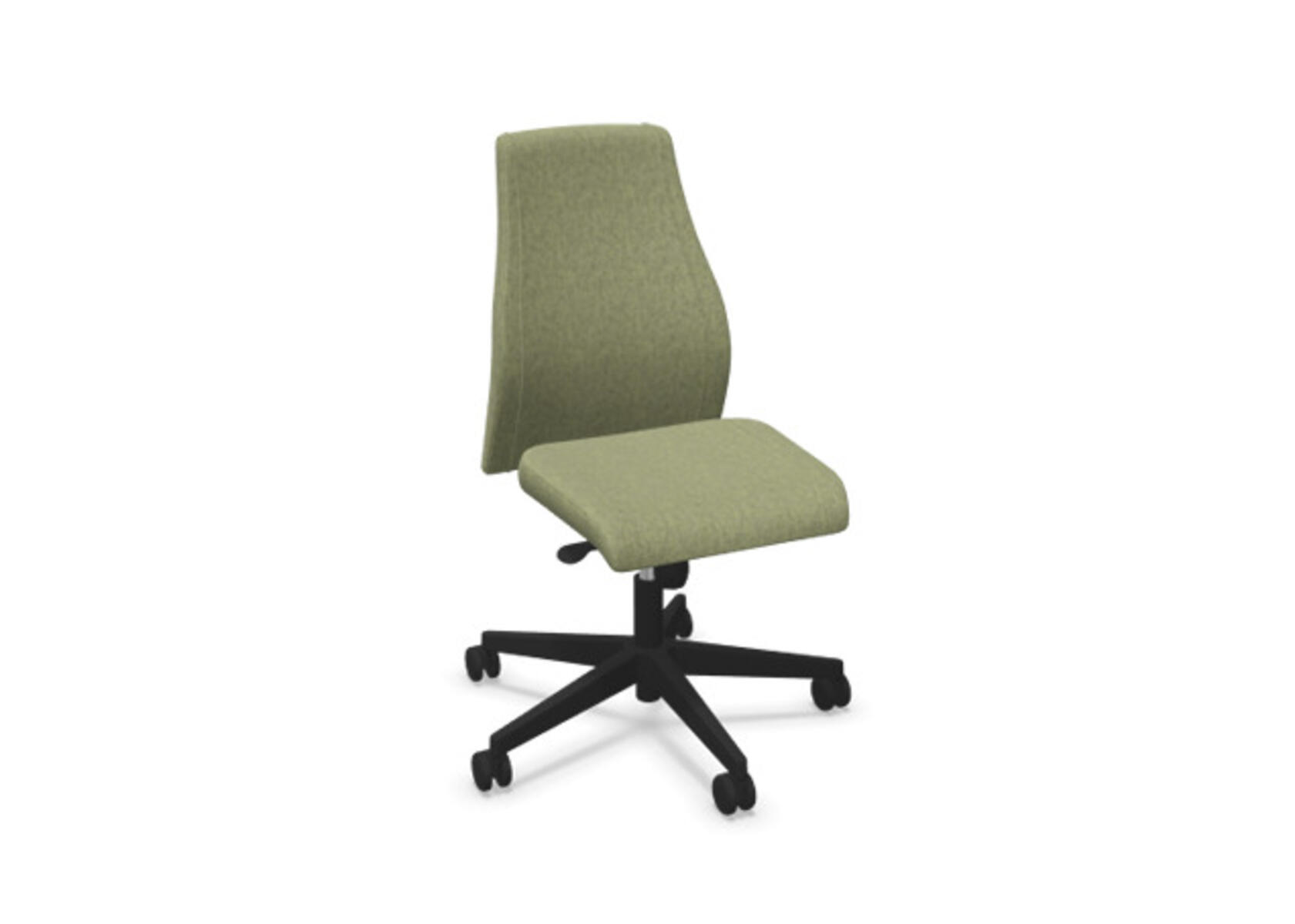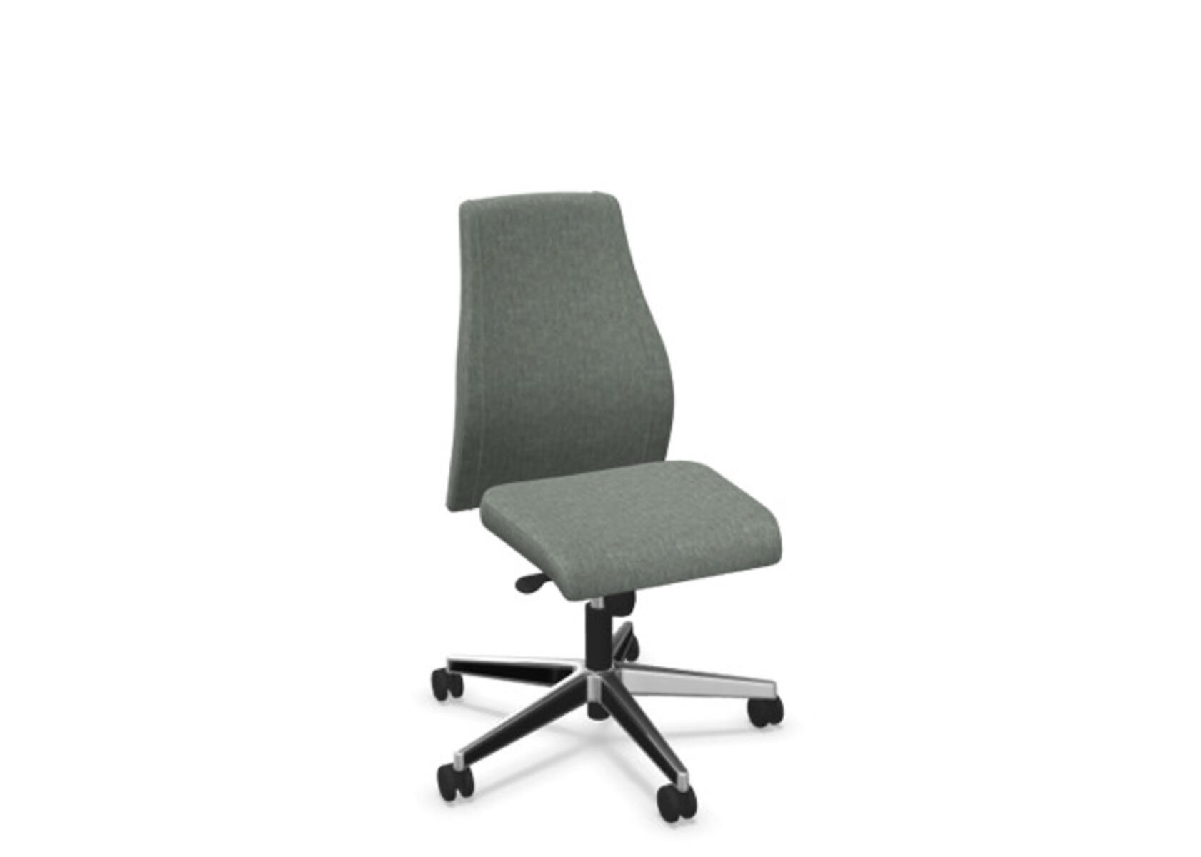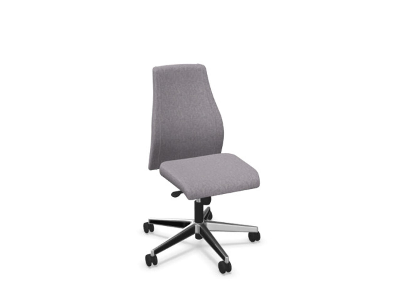 Tyylikäs ja ergonominen toimistotuoli, jossa ympäriverhoiltu matala selkänoja. Synkronimekanismi tarjoaa optimaalista tukea aktiiviseen istumiseen koko työpäivän ajan. Verhoiltu villakankaalla. Synkronoitu selkänojan ja istuimen kallistus mahdollistaa aktiivisen ja mukavan istuma-asennon. Selkänojan kallistuskulma 20° synkronoitu istuimen 11° kulmaan. Selkänoja lukittavissa 5 eri asentoon, mahdollistaen yksilöllisen säädön, ja vastusta voi säätää helposti säätönupilla. Selkänoja on korkeussäädettävä 70 mm ja lukittavissa 13 eri asentoon. Tuolissa on Anti-Shock-toiminto, joka estää selkänojaa palautumasta äkillisesti, kun kallistuslukitus vapautetaan. Valittavissa musta polyamidinen tai kiillotettu alumiiniristikko sekä itsestään jarruttavat pyörät pehmeille tai koville lattioille. Lisävarusteena saatavilla lannerangan tuki, joka on manuaalisesti säädettävissä syvyyssuunnassa (20 mm) säätönupin avulla. Käsinojat (2D, 3D tai 4D) myydään erikseen.