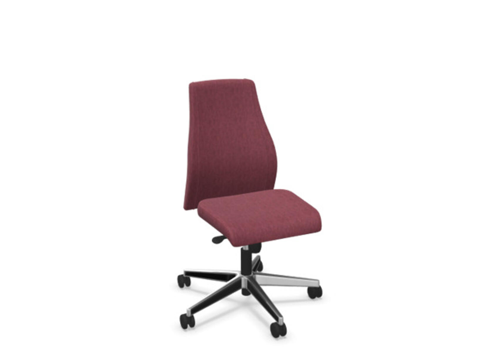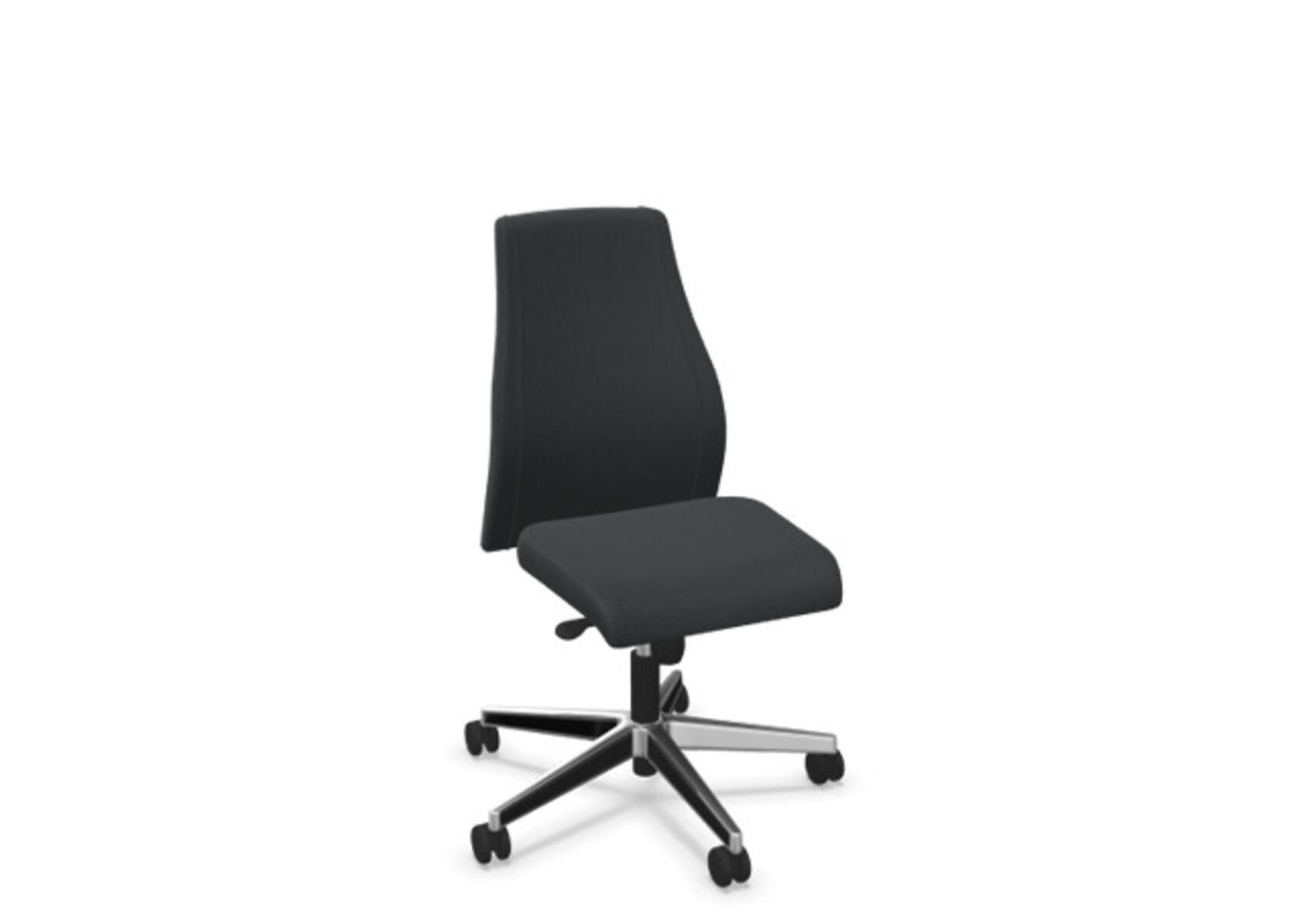 Tyylikäs ja ergonominen toimistotuoli, jossa ympäriverhoiltu matala selkänoja. Synkronimekanismi tarjoaa optimaalista tukea aktiiviseen istumiseen koko työpäivän ajan. Verhoiltu kestävällä polyesterikankaalla. Synkronoitu selkänojan ja istuimen kallistus mahdollistaa aktiivisen ja mukavan istuma-asennon. Selkänojan kallistuskulma 23° synkronoitu istuinosan kallistuskulmaan 10°. Selkänoja lukittavissa 5 eri asentoon, mahdollistaen yksilöllisen säädön, ja vastusta voi säätää helposti säätönupilla 7 eri kohtaan. Selkänoja on korkeussäädettävä 70 mm ja lukittavissa 13 eri asentoon. Istuinsyvyys säädettävissä 60 mm. Negatiivinen istuinosan kallistus –2°, synkronoitu selkänojan 5° kallistukseen. Tämä takaa optimaalisen tuen kaikissa kallistuskulmissa. Tuolissa on Anti-Shock-toiminto, joka estää selkänojaa palautumasta äkillisesti, kun kallistuslukitus vapautetaan. Valittavissa musta polyamidinen tai kiillotettu alumiiniristikko sekä itsestään jarruttavat pyörät pehmeille tai koville lattioille. Lisävarusteena saatavilla lannerangan tuki, joka on manuaalisesti säädettävissä syvyyssuunnassa (20 mm) säätönupin avulla. Käsinojat (2D, 3D tai 4D) myydään erikseen.
