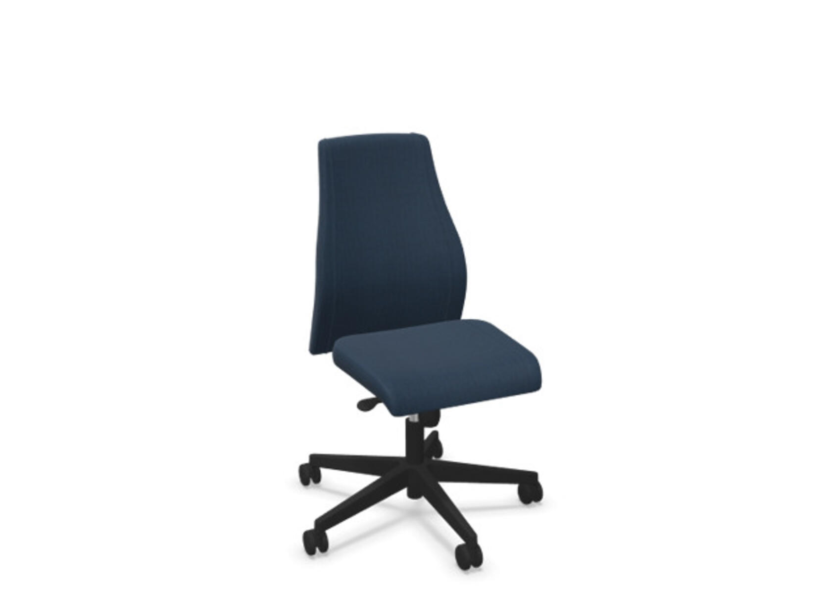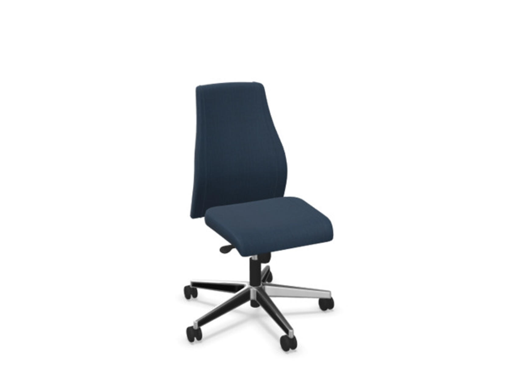 Tyylikäs ja ergonominen toimistotuoli, jossa ympäriverhoiltu korkea selkänoja. Synkronimekanismi tarjoaa optimaalista tukea aktiiviseen istumiseen koko työpäivän ajan. Verhoiltu kestävällä polyesterikankaalla. Synkronoitu selkänojan ja istuimen kallistus mahdollistaa aktiivisen ja mukavan istuma-asennon. Selkänojan kallistuskulma 20° synkronoitu istuimen 11° kulmaan. Selkänoja lukittavissa 5 eri asentoon, mahdollistaen yksilöllisen säädön, ja vastusta voi säätää helposti säätönupilla. Selkänoja on korkeussäädettävä 70 mm ja lukittavissa 13 eri asentoon. Säädettävä, verhoiltu niskatuki, jossa kulma- ja korkeussäätö 75 mm. Tuolissa on Anti-Shock-toiminto, joka estää selkänojaa palautumasta äkillisesti, kun kallistuslukitus vapautetaan. Valittavissa musta polyamidinen tai kiillotettu alumiiniristikko sekä itsestään jarruttavat pyörät pehmeille tai koville lattioille. Lisävarusteena saatavilla lannerangan tuki, joka on manuaalisesti säädettävissä syvyyssuunnassa (20 mm) säätönupin avulla. Käsinojat (2D, 3D tai 4D) myydään erikseen.