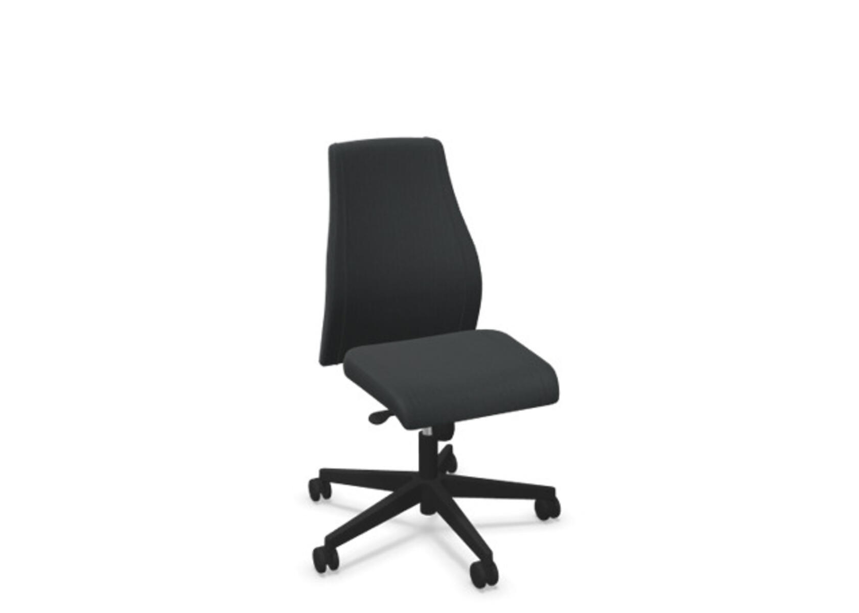Tyylikäs ja ergonominen toimistotuoli, jossa ympäriverhoiltu matala selkänoja. Synkronimekanismi tarjoaa optimaalista tukea aktiiviseen istumiseen koko työpäivän ajan. Verhoiltu kestävällä polyesterikankaalla. Synkronoitu selkänojan ja istuimen kallistus mahdollistaa aktiivisen ja mukavan istuma-asennon. Selkänojan kallistuskulma 20° synkronoitu istuimen 11° kulmaan. Selkänoja lukittavissa 5 eri asentoon, mahdollistaen yksilöllisen säädön, ja vastusta voi säätää helposti säätönupilla. Selkänoja on korkeussäädettävä 70 mm ja lukittavissa 13 eri asentoon. Tuolissa on Anti-Shock-toiminto, joka estää selkänojaa palautumasta äkillisesti, kun kallistuslukitus vapautetaan. Valittavissa musta polyamidinen tai kiillotettu alumiiniristikko sekä itsestään jarruttavat pyörät pehmeille tai koville lattioille. Lisävarusteena saatavilla lannerangan tuki, joka on manuaalisesti säädettävissä syvyyssuunnassa (20 mm) säätönupin avulla. Käsinojat (2D, 3D tai 4D) myydään erikseen.