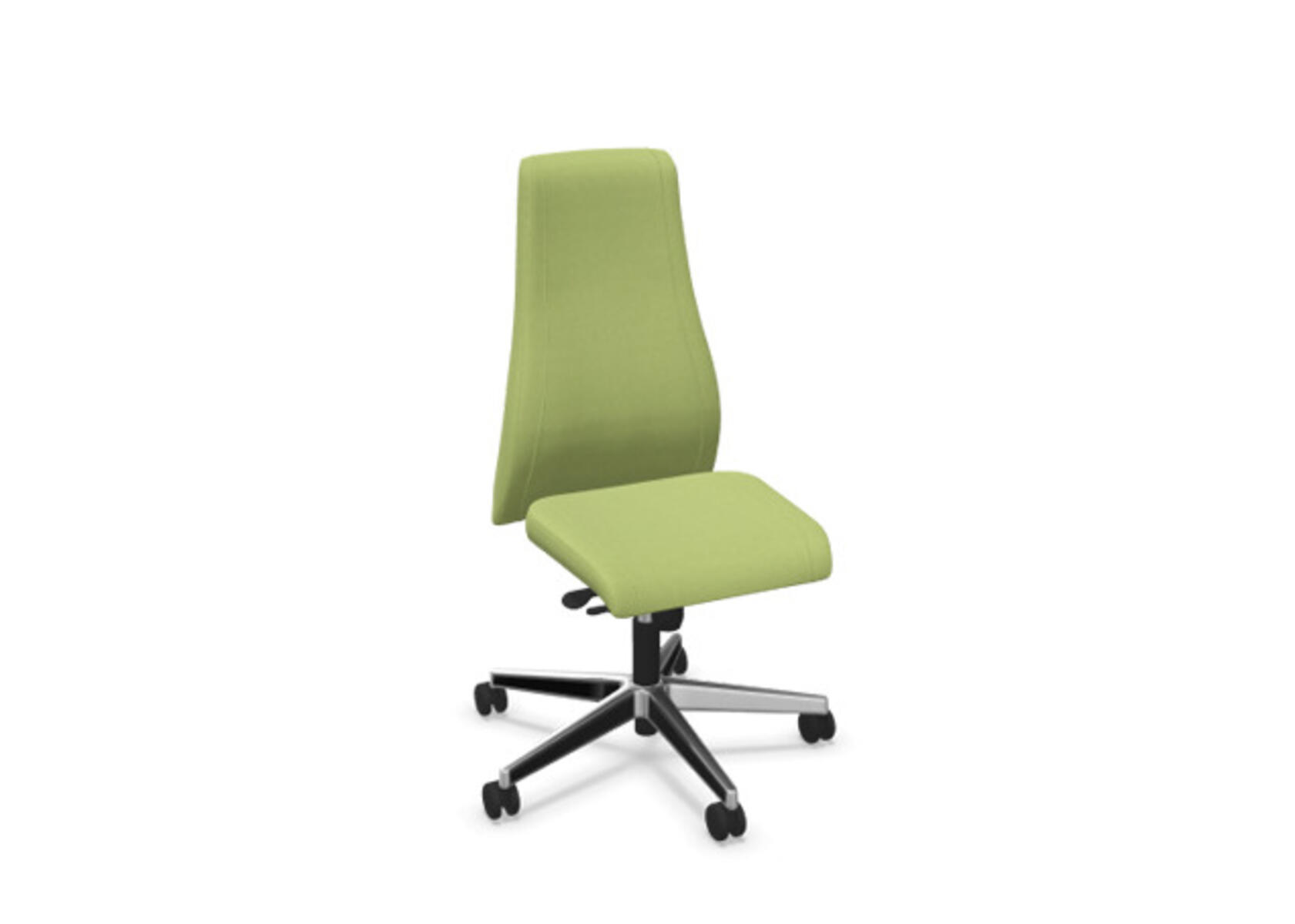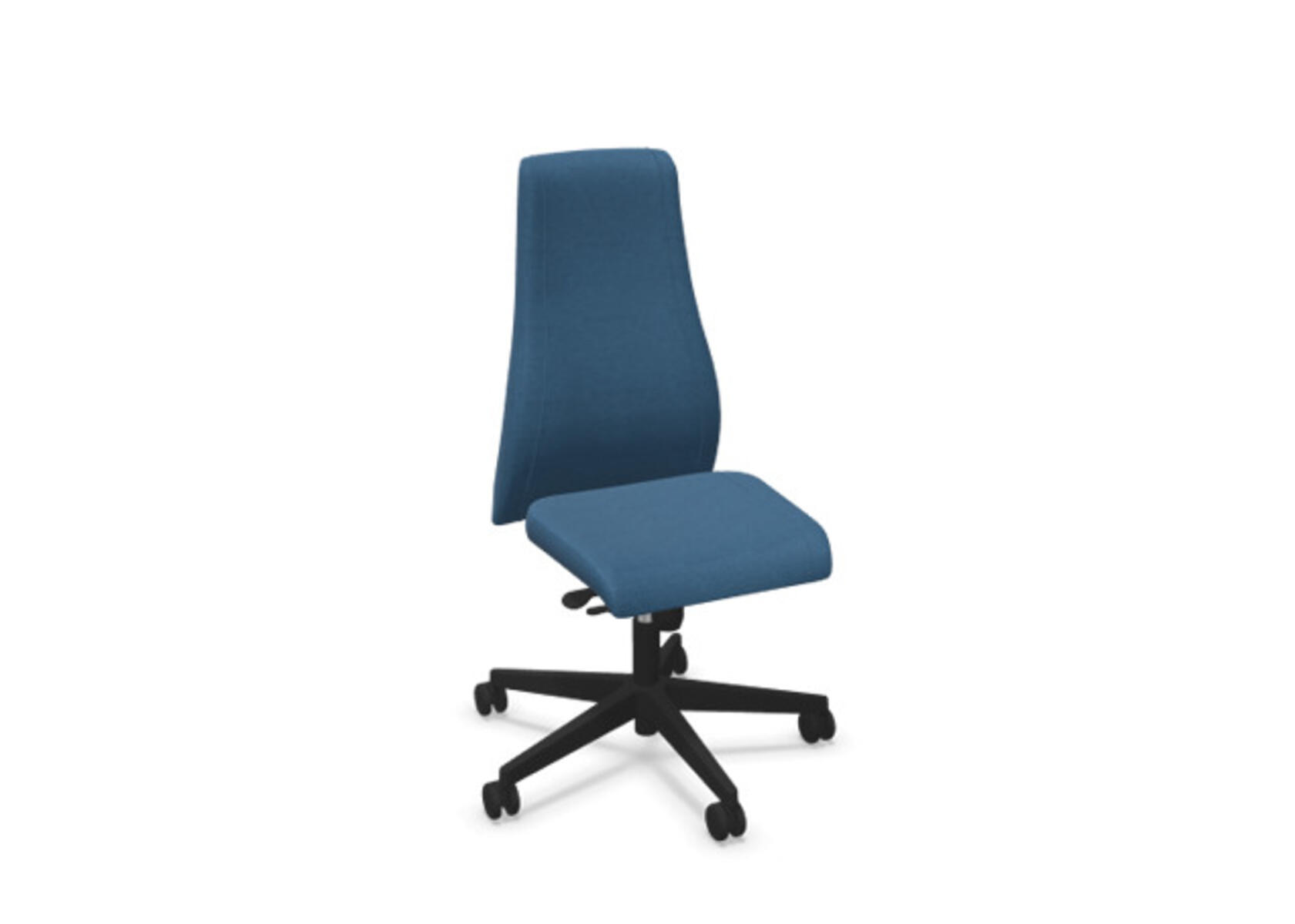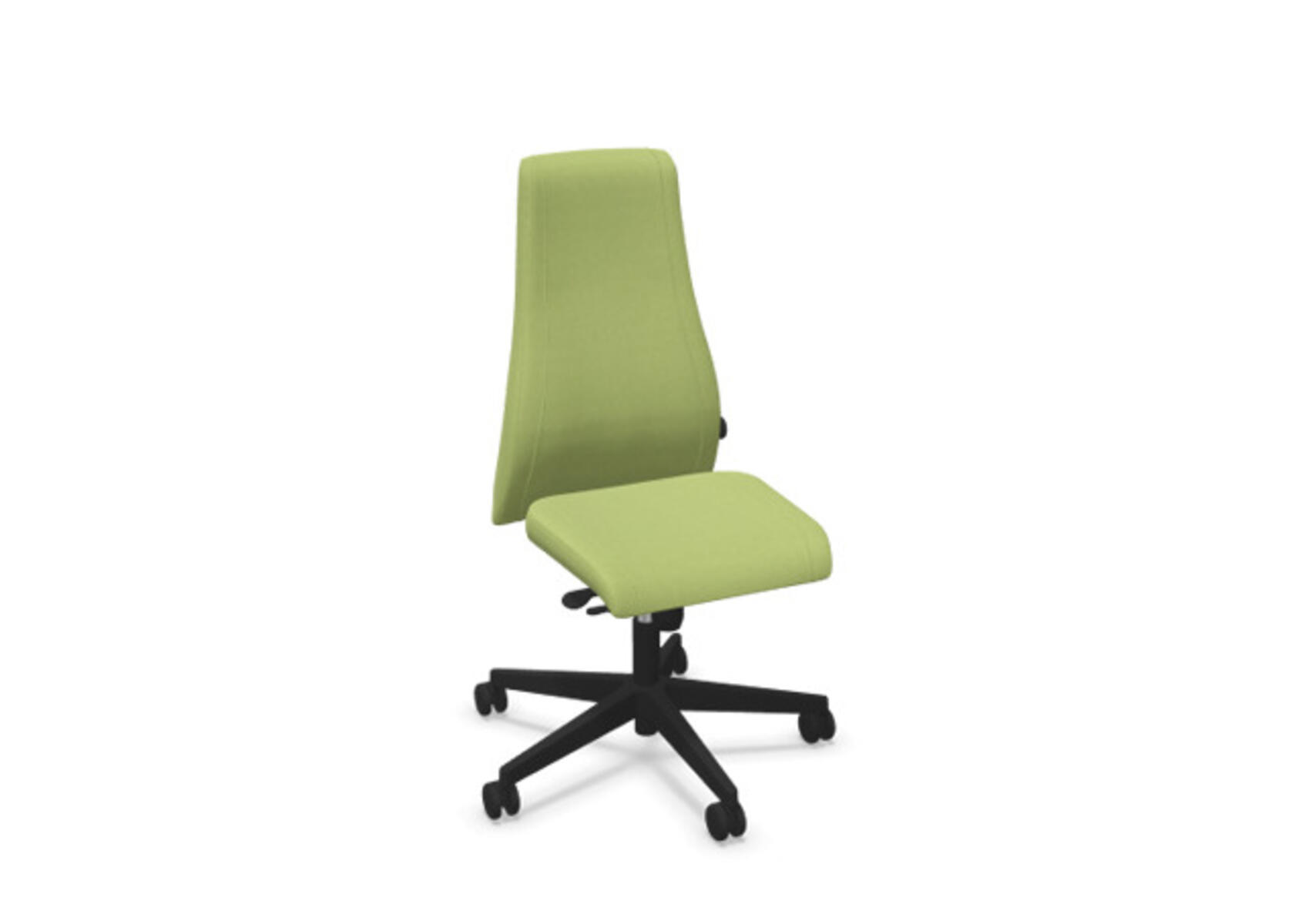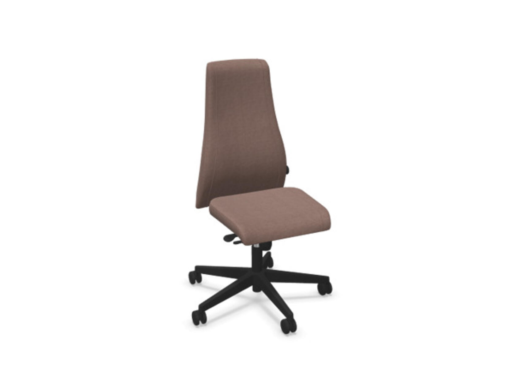 Tyylikäs ja ergonominen toimistotuoli, jossa ympäriverhoiltu korkea selkänoja. Synkronimekanismi tarjoaa optimaalista tukea aktiiviseen istumiseen koko työpäivän ajan. Verhoiltu kestävällä polyesterikankaalla. Synkronoitu selkänojan ja istuimen kallistus mahdollistaa aktiivisen ja mukavan istuma-asennon. Selkänojan kallistuskulma 20° synkronoitu istuimen 11° kulmaan. Selkänoja lukittavissa 5 eri asentoon, mahdollistaen yksilöllisen säädön, ja vastusta voi säätää helposti säätönupilla. Selkänoja on korkeussäädettävä 70 mm ja lukittavissa 13 eri asentoon. Tuolissa on Anti-Shock-toiminto, joka estää selkänojaa palautumasta äkillisesti, kun kallistuslukitus vapautetaan. Valittavissa musta polyamidinen tai kiillotettu alumiiniristikko sekä itsestään jarruttavat pyörät pehmeille tai koville lattioille. Lisävarusteena saatavilla lannerangan tuki, joka on manuaalisesti säädettävissä syvyyssuunnassa (20 mm) säätönupin avulla. Käsinojat (2D, 3D tai 4D) myydään erikseen.
