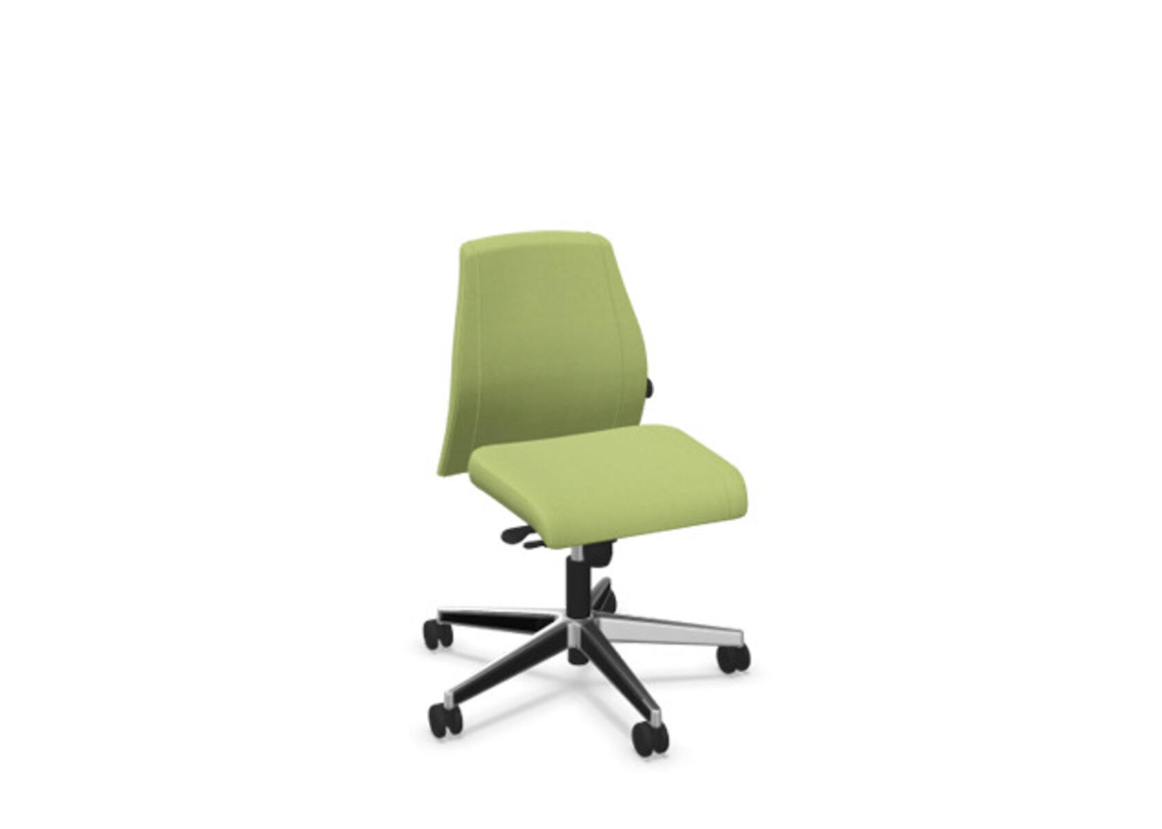 Tyylikäs ja ergonominen toimistotuoli, jossa ympäriverhoiltu matala selkänoja. Synkronimekanismi tarjoaa optimaalista tukea aktiiviseen istumiseen koko työpäivän ajan. Verhoiltu kestävällä polyesterikankaalla. Synkronoitu selkänojan ja istuimen kallistus mahdollistaa aktiivisen ja mukavan istuma-asennon. Selkänojan kallistuskulma 20° synkronoitu istuimen 11° kulmaan. Selkänoja lukittavissa 5 eri asentoon, mahdollistaen yksilöllisen säädön, ja vastusta voi säätää helposti säätönupilla. Selkänoja on korkeussäädettävä 70 mm ja lukittavissa 13 eri asentoon. Tuolissa on Anti-Shock-toiminto, joka estää selkänojaa palautumasta äkillisesti, kun kallistuslukitus vapautetaan. Valittavissa musta polyamidinen tai kiillotettu alumiiniristikko sekä itsestään jarruttavat pyörät pehmeille tai koville lattioille. Lisävarusteena saatavilla lannerangan tuki, joka on manuaalisesti säädettävissä syvyyssuunnassa (20 mm) säätönupin avulla. Käsinojat (2D, 3D tai 4D) myydään erikseen.