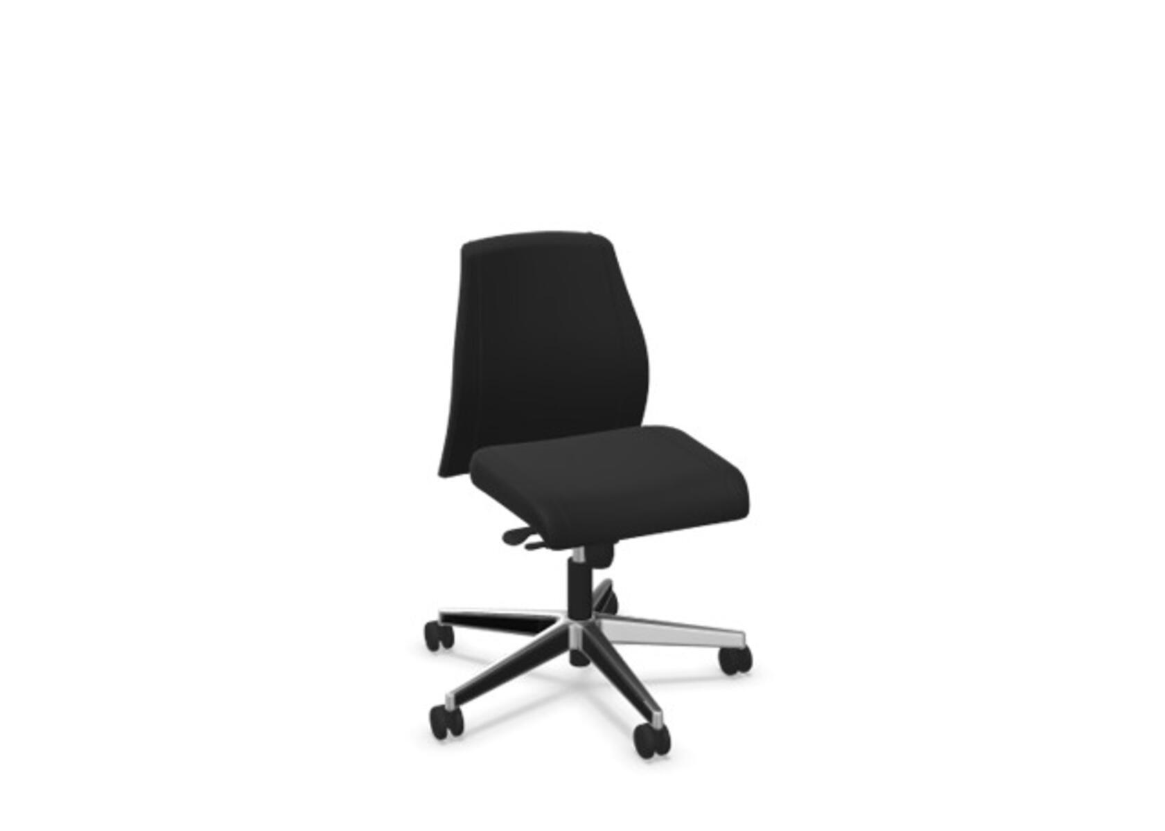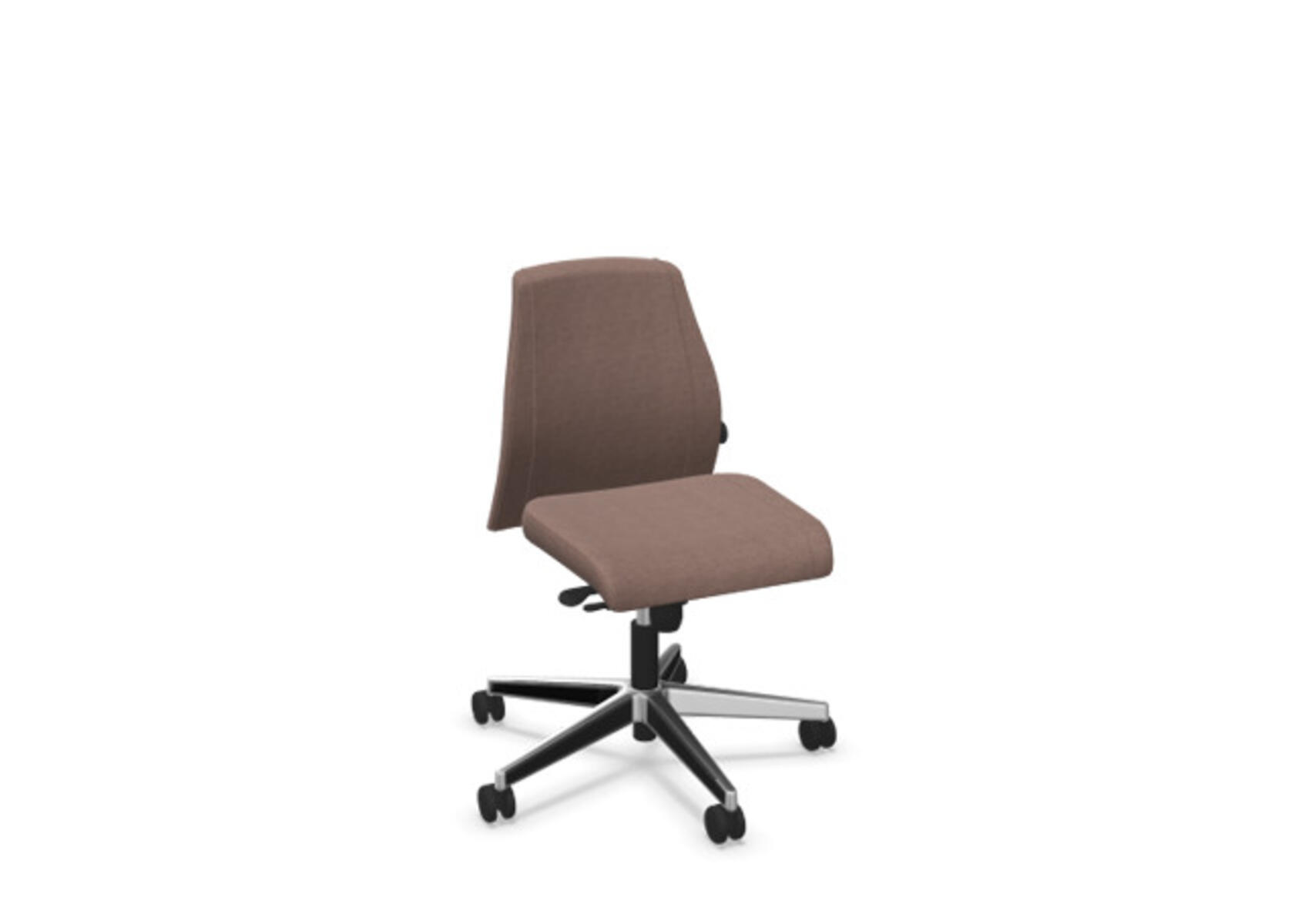Tyylikäs ja ergonominen toimistotuoli, jossa ympäriverhoiltu matala selkänoja. Synkronimekanismi tarjoaa optimaalista tukea aktiiviseen istumiseen koko työpäivän ajan. Verhoiltu kestävällä polyesterikankaalla. Synkronoitu selkänojan ja istuimen kallistus mahdollistaa aktiivisen ja mukavan istuma-asennon. Selkänojan kallistuskulma 23° synkronoitu istuinosan kallistuskulmaan 10°. Selkänoja lukittavissa 5 eri asentoon, mahdollistaen yksilöllisen säädön, ja vastusta voi säätää helposti säätönupilla 7 eri kohtaan. Selkänoja on korkeussäädettävä 70 mm ja lukittavissa 13 eri asentoon. Istuinsyvyys säädettävissä 60 mm. Negatiivinen istuinosan kallistus –2°, synkronoitu selkänojan 5° kallistukseen. Tämä takaa optimaalisen tuen kaikissa kallistuskulmissa. Tuolissa on Anti-Shock-toiminto, joka estää selkänojaa palautumasta äkillisesti, kun kallistuslukitus vapautetaan. Valittavissa musta polyamidinen tai kiillotettu alumiiniristikko sekä itsestään jarruttavat pyörät pehmeille tai koville lattioille. Lisävarusteena saatavilla lannerangan tuki, joka on manuaalisesti säädettävissä syvyyssuunnassa (20 mm) säätönupin avulla. Käsinojat (2D, 3D tai 4D) myydään erikseen.