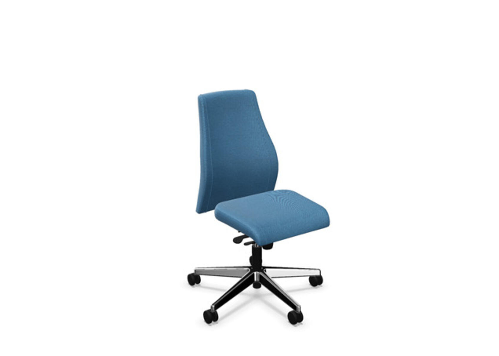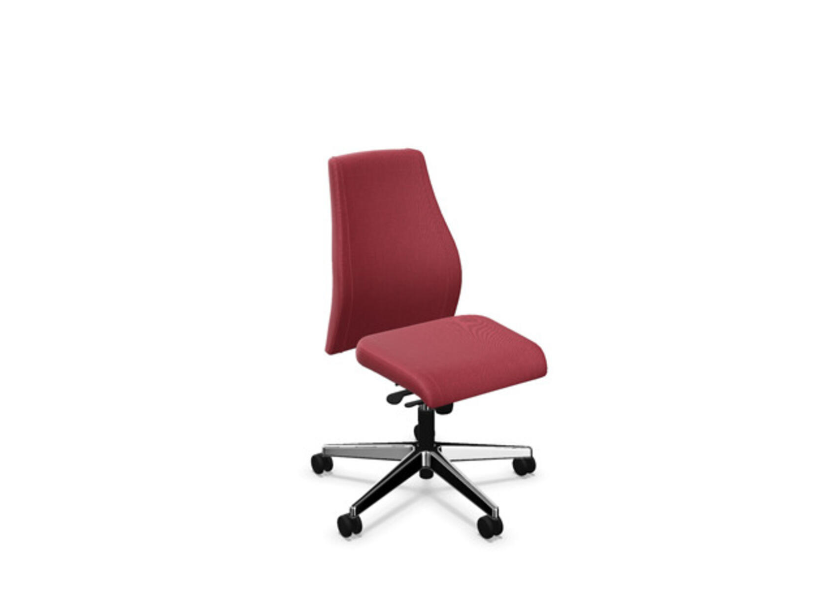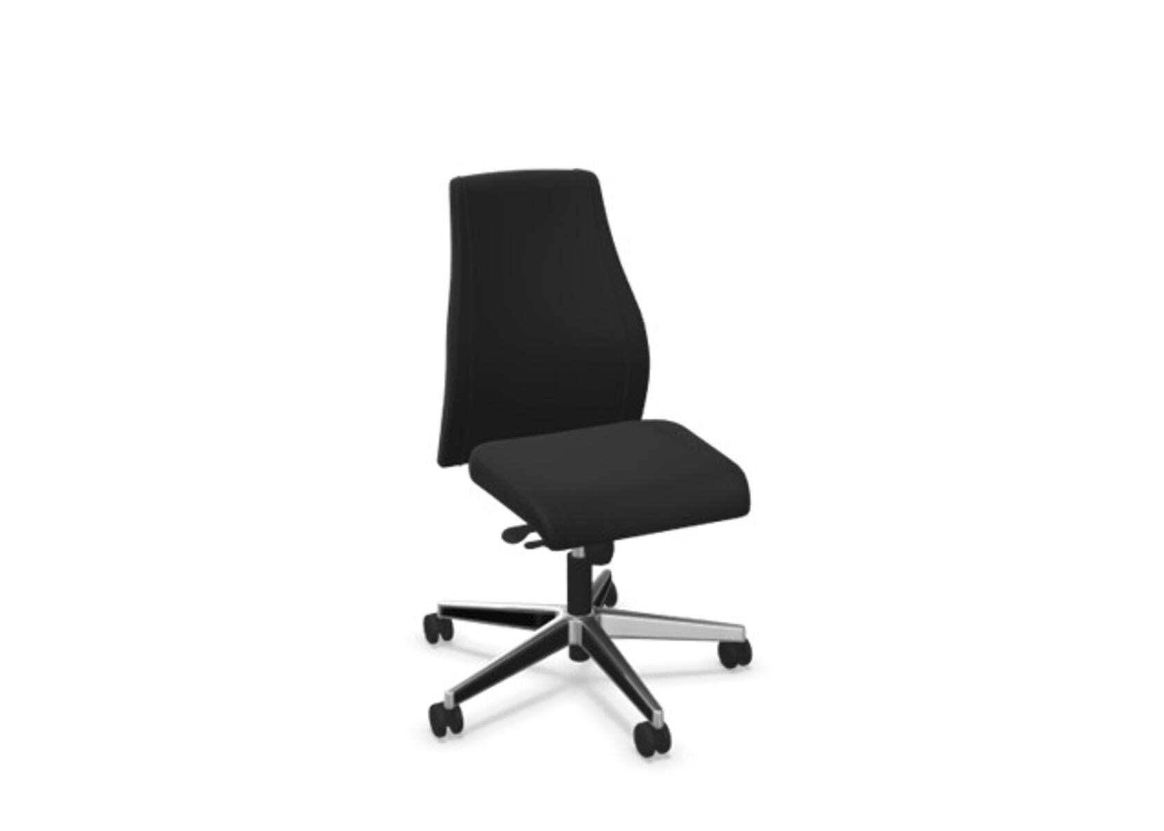 Tyylikäs ja ergonominen toimistotuoli, jossa ympäriverhoiltu matala selkänoja. Synkronimekanismi tarjoaa optimaalista tukea aktiiviseen istumiseen koko työpäivän ajan. Verhoiltu kestävällä polyesterikankaalla. Synkronoitu selkänojan ja istuimen kallistus mahdollistaa aktiivisen ja mukavan istuma-asennon. Selkänojan kallistuskulma 23° synkronoitu istuinosan kallistuskulmaan 10°. Selkänoja lukittavissa 5 eri asentoon, mahdollistaen yksilöllisen säädön, ja vastusta voi säätää helposti säätönupilla 7 eri kohtaan. Selkänoja on korkeussäädettävä 70 mm ja lukittavissa 13 eri asentoon. Istuinsyvyys säädettävissä 60 mm. Negatiivinen istuinosan kallistus –2°, synkronoitu selkänojan 5° kallistukseen. Tämä takaa optimaalisen tuen kaikissa kallistuskulmissa. Tuolissa on Anti-Shock-toiminto, joka estää selkänojaa palautumasta äkillisesti, kun kallistuslukitus vapautetaan. Valittavissa musta polyamidinen tai kiillotettu alumiiniristikko sekä itsestään jarruttavat pyörät pehmeille tai koville lattioille. Lisävarusteena saatavilla lannerangan tuki, joka on manuaalisesti säädettävissä syvyyssuunnassa (20 mm) säätönupin avulla. Käsinojat (2D, 3D tai 4D) myydään erikseen.