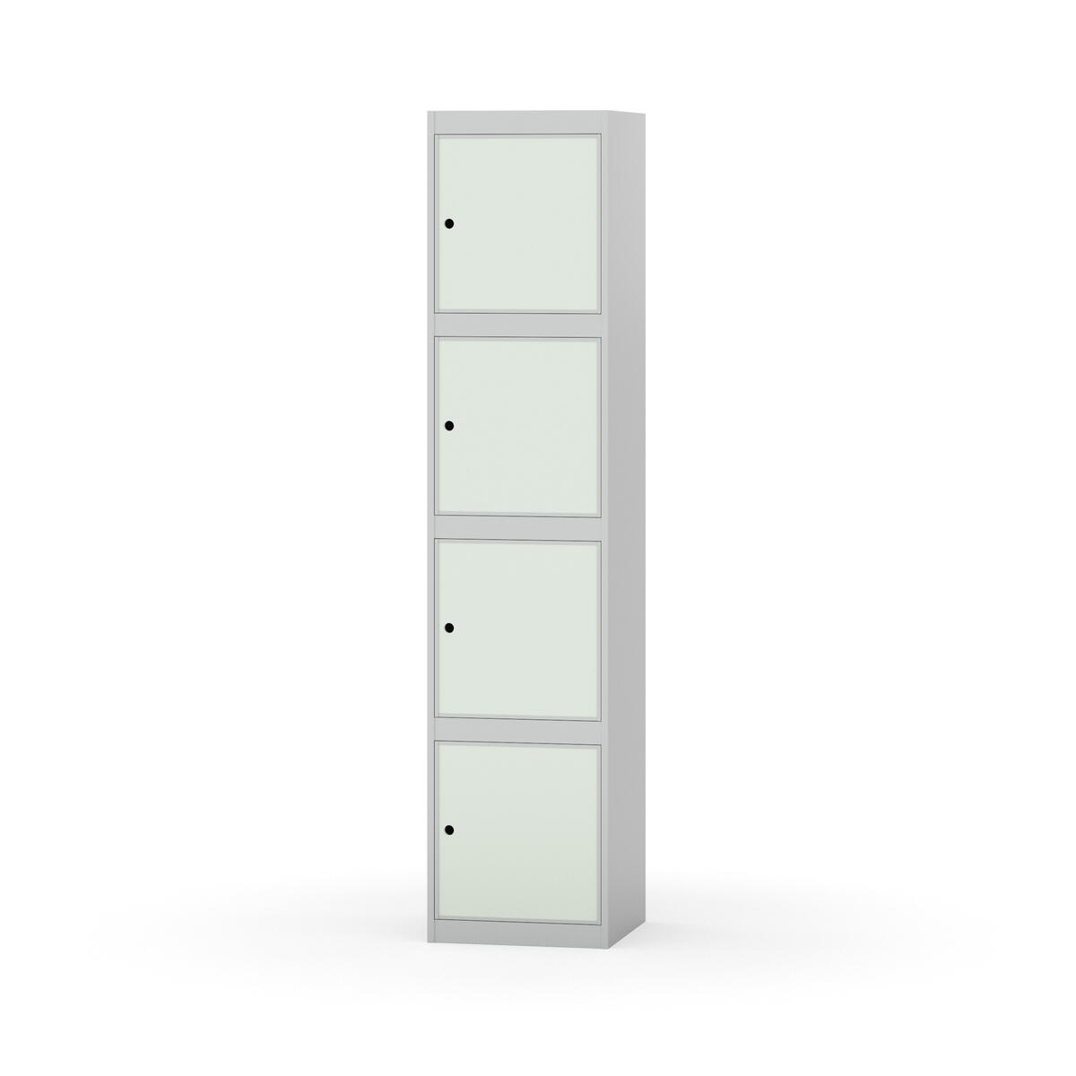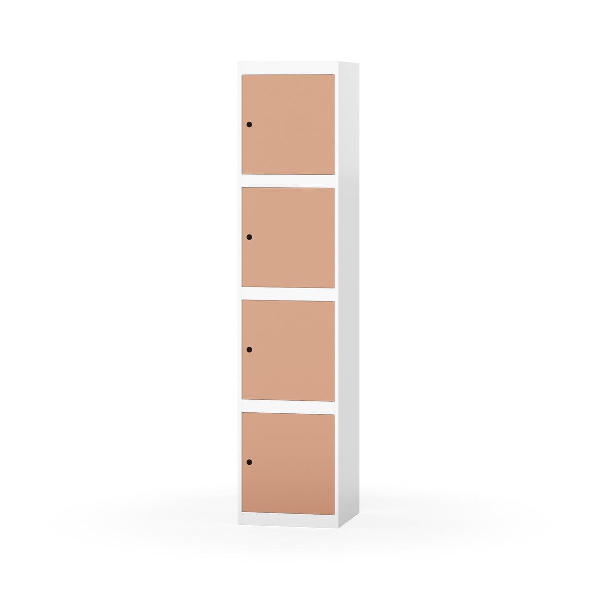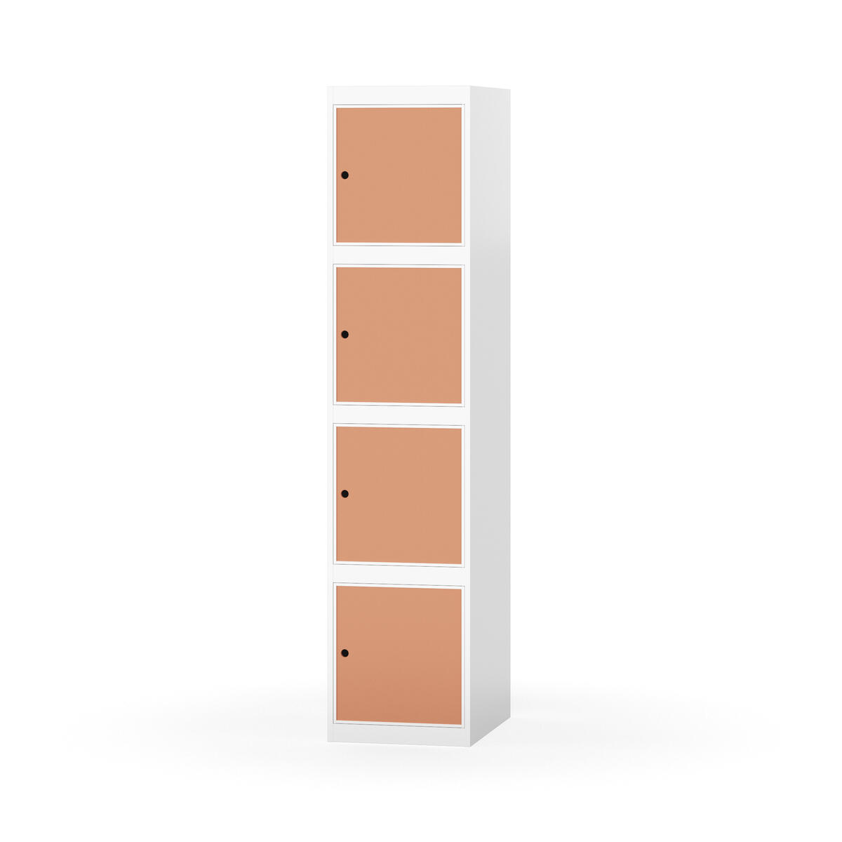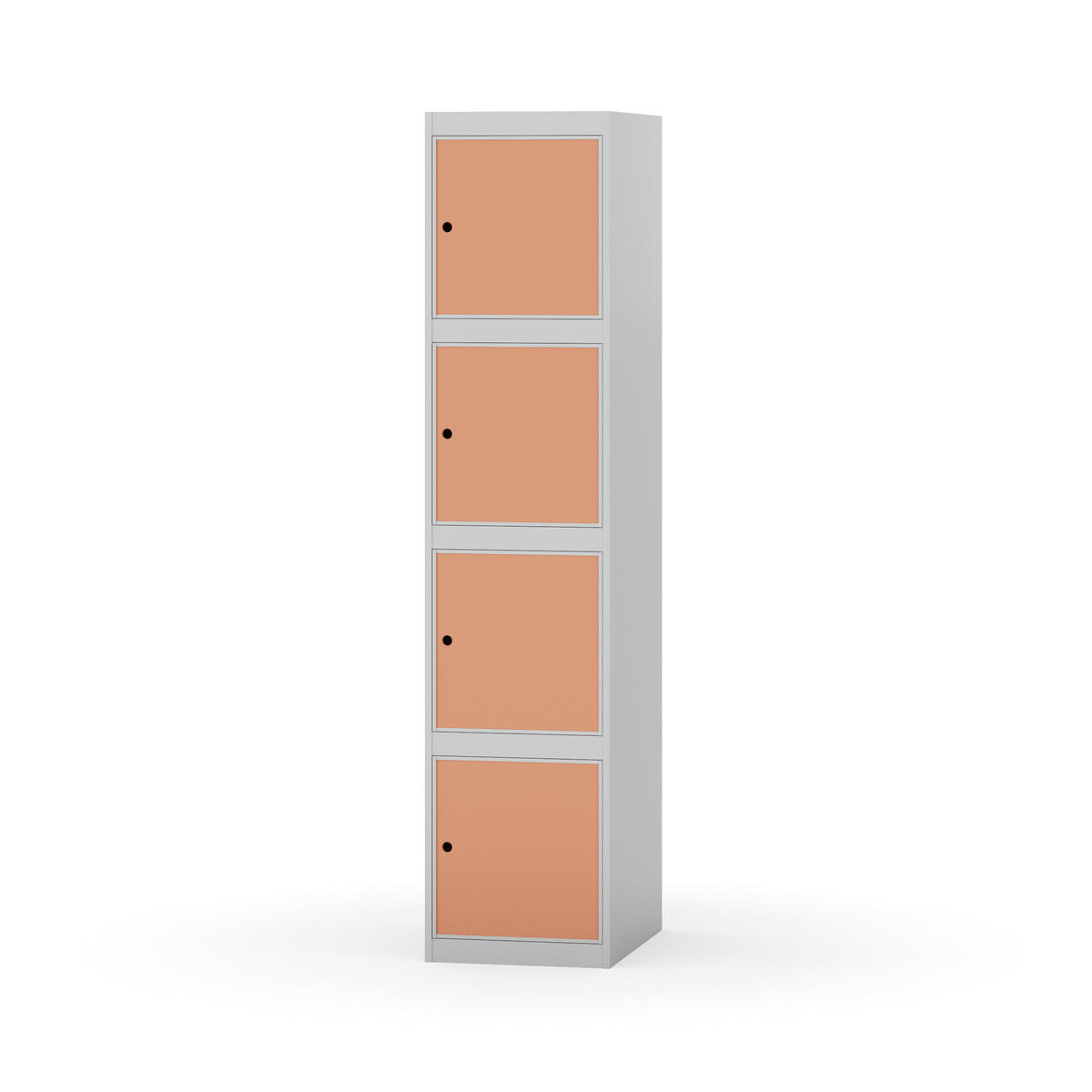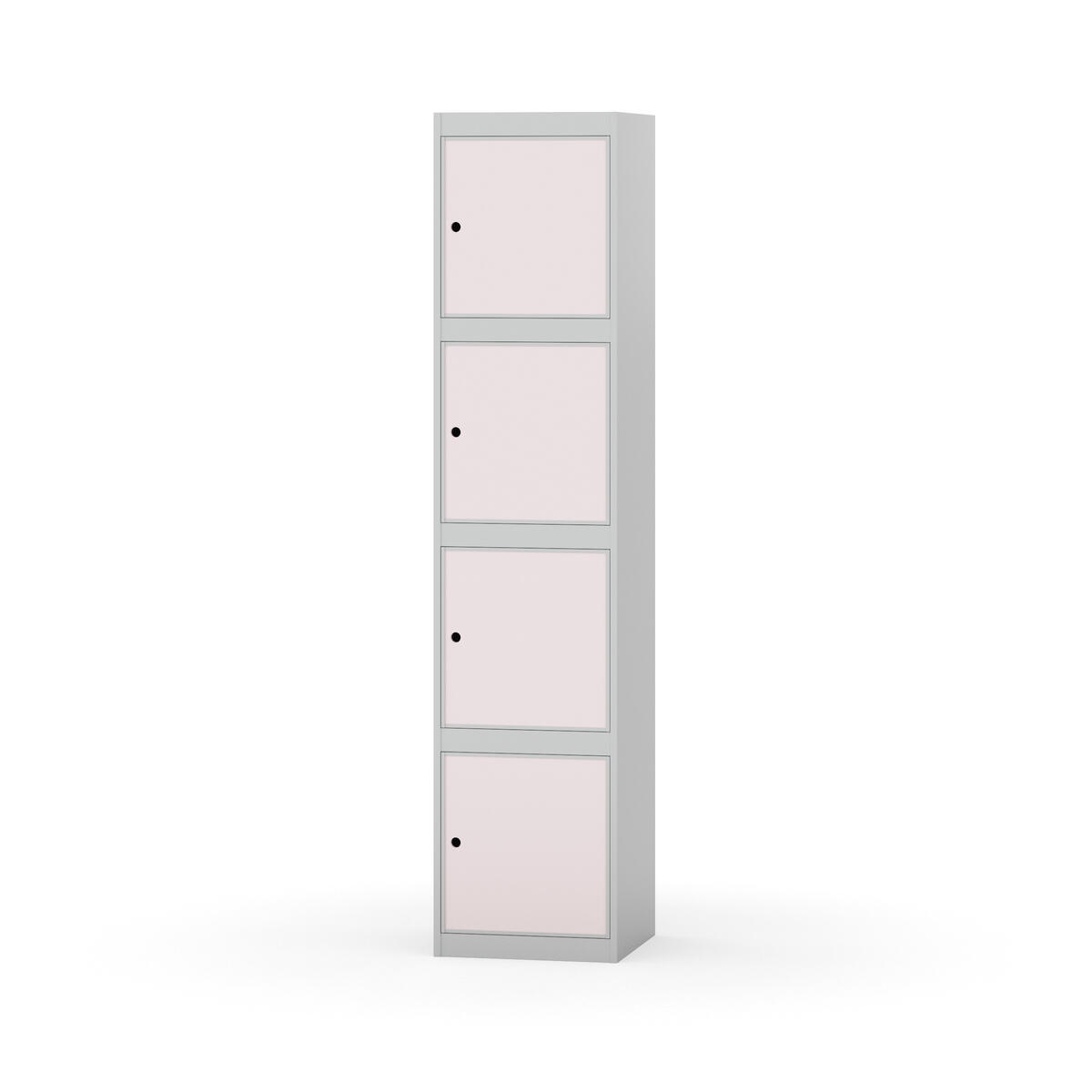 Täysin hitsattu runko. Valittavana pelti- tai korkeapainelaminaattipintainen ovi. Peltiovessa on pysäytin sekä teräsvahvike lukkoreiän ympärillä. Laminaattiovessa on teräskehys ja teräksinen pysäytin. Ovet aukeavat 90°. Sisällä ei ole hyllyjä tai vaatetankoa/-koukkuja. Kaapissa on tasainen pohja ilman kynnystä. Ilmastointireiät pohjassa ja katossa. Lukot ja sokkeli/jalusta tilataan erikseen omilla tuotenumeroillaan. Lukot tulevat asennettuna, sokkeli/jalusta asennetaan toimituksen yhteydessä.