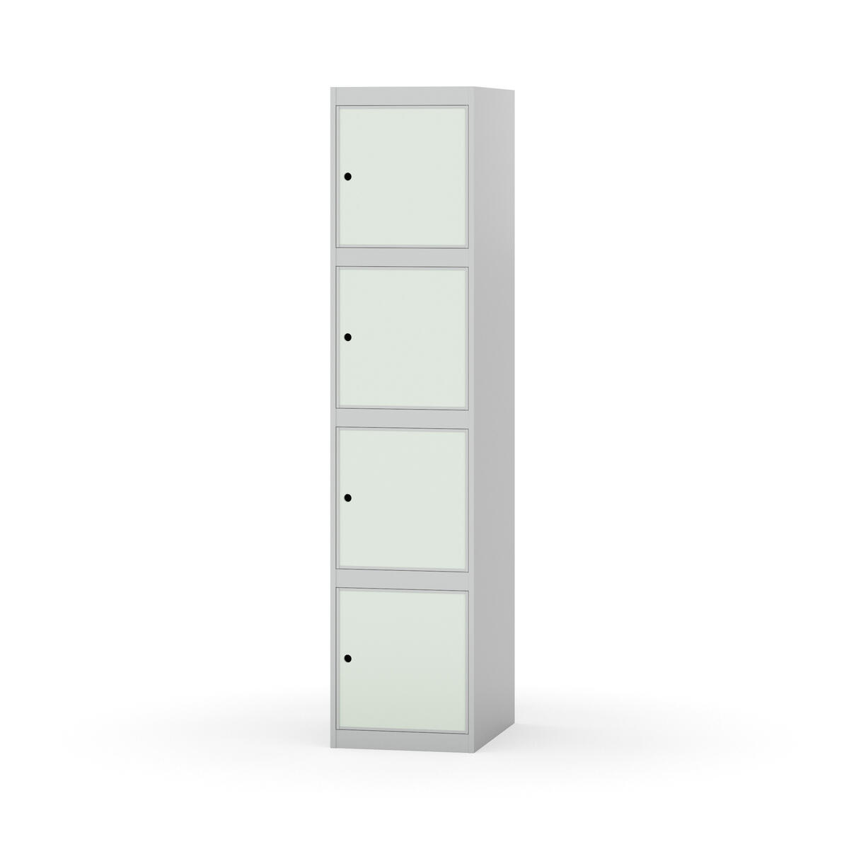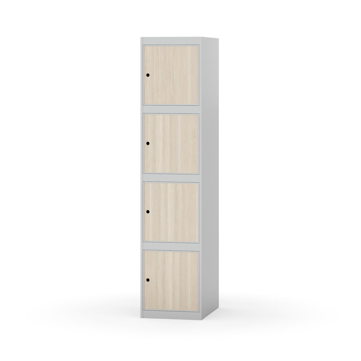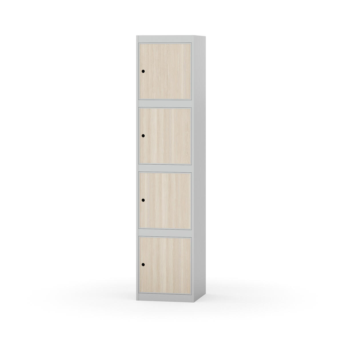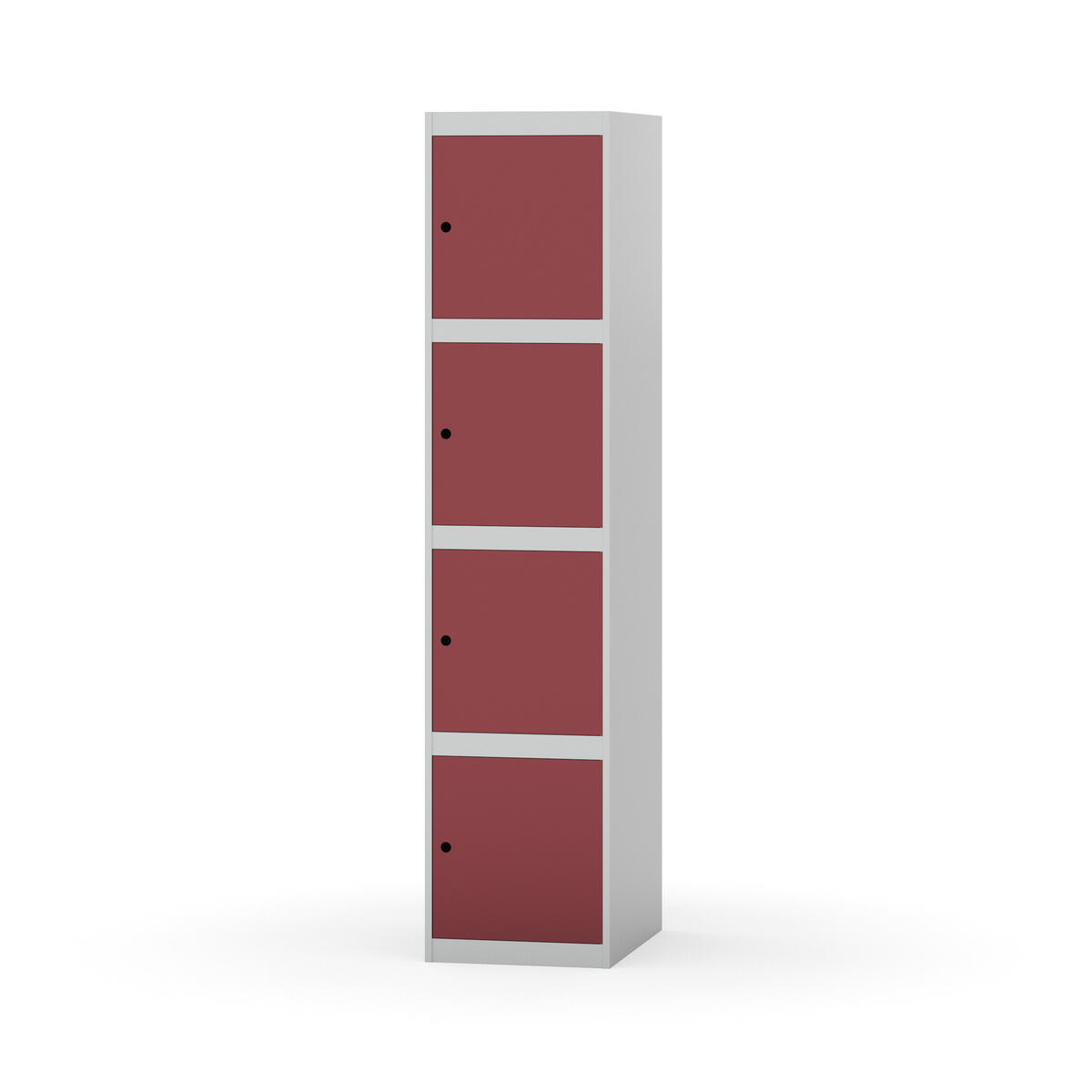 Täysin hitsattu runko. Valittavana pelti- tai korkeapainelaminaattipintainen ovi. Peltiovessa on pysäytin sekä teräsvahvike lukkoreiän ympärillä. Laminaattiovessa on teräskehys ja teräksinen pysäytin. Ovet aukeavat 90°. Sisällä ei ole hyllyjä tai vaatetankoa/-koukkuja. Kaapissa on tasainen pohja ilman kynnystä. Ilmastointireiät pohjassa ja katossa. Lukot ja sokkeli/jalusta tilataan erikseen omilla tuotenumeroillaan. Lukot tulevat asennettuna, sokkeli/jalusta asennetaan toimituksen yhteydessä.