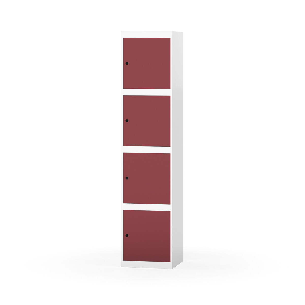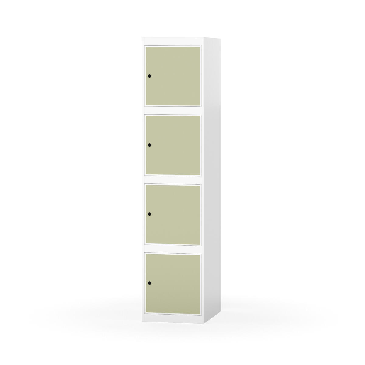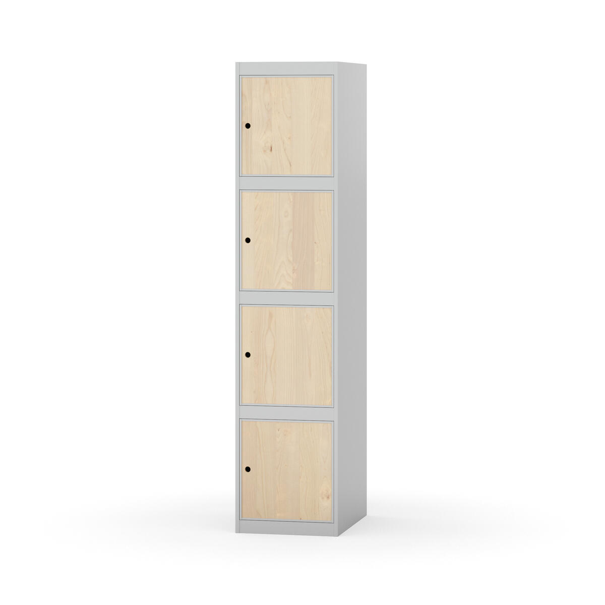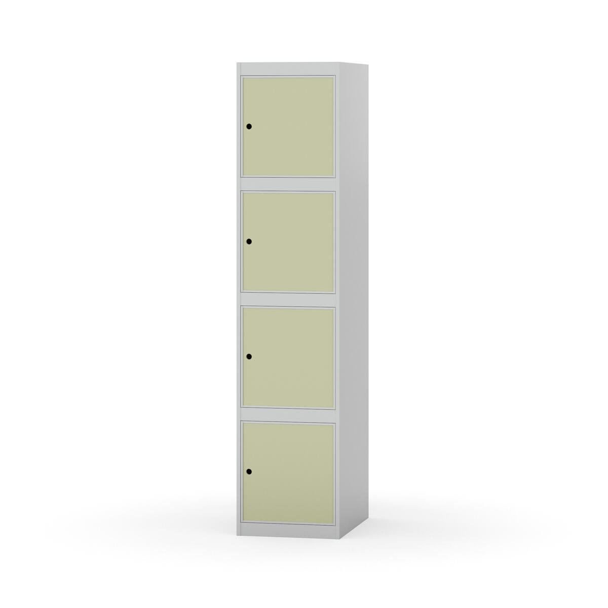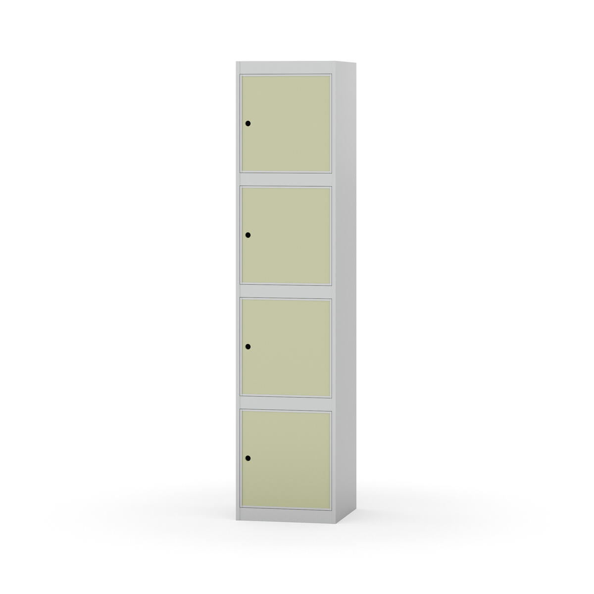 Täysin hitsattu runko. Valittavana pelti- tai korkeapainelaminaattipintainen ovi. Peltiovessa on pysäytin sekä teräsvahvike lukkoreiän ympärillä. Laminaattiovessa on teräskehys ja teräksinen pysäytin. Ovet aukeavat 90°. Sisällä ei ole hyllyjä tai vaatetankoa/-koukkuja. Kaapissa on tasainen pohja ilman kynnystä. Ilmastointireiät pohjassa ja katossa. Lukot ja sokkeli/jalusta tilataan erikseen omilla tuotenumeroillaan. Lukot tulevat asennettuna, sokkeli/jalusta asennetaan toimituksen yhteydessä.