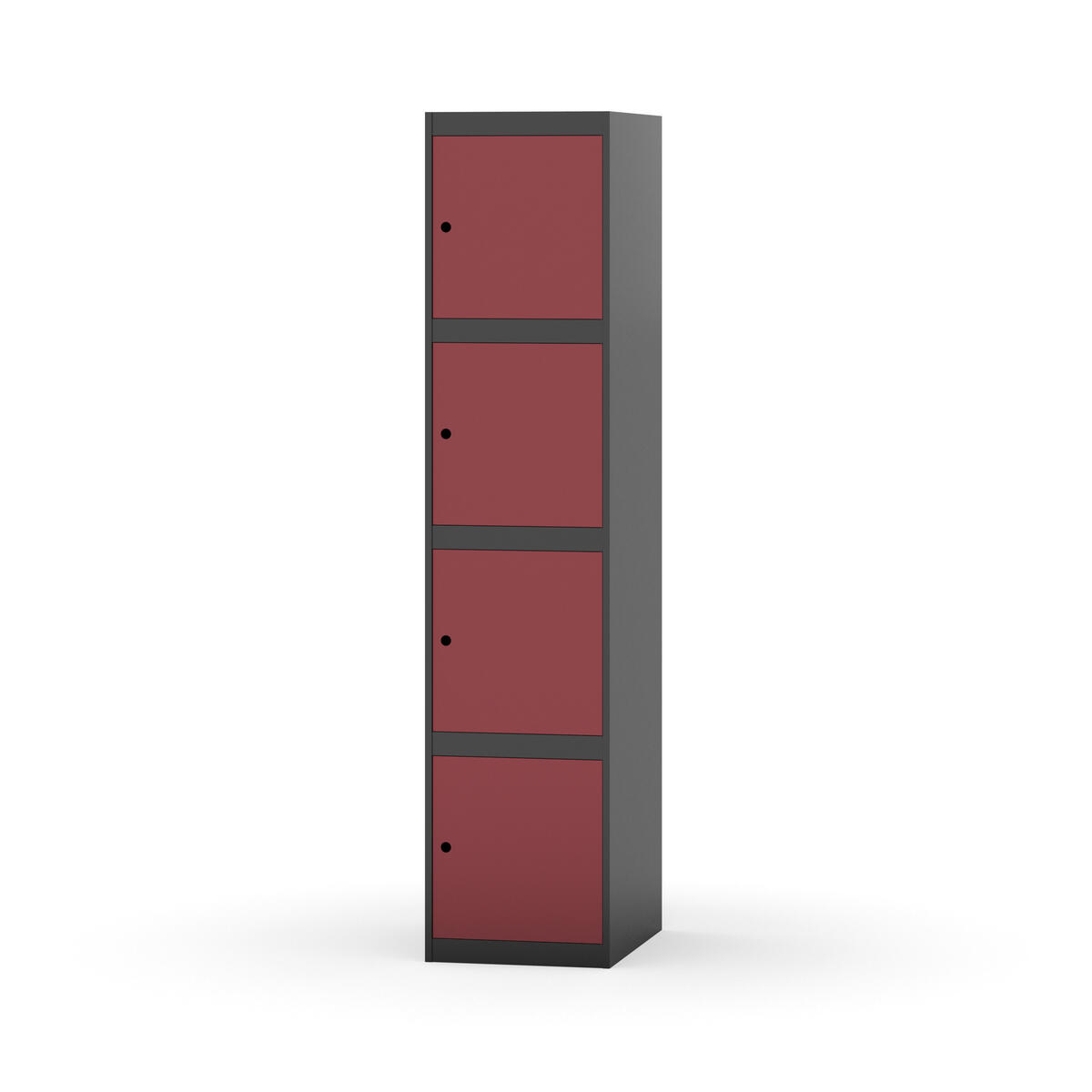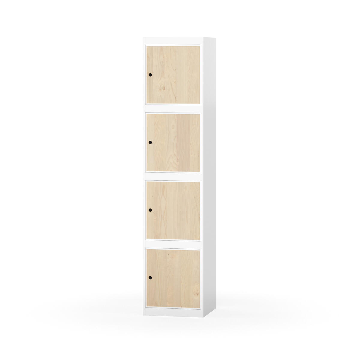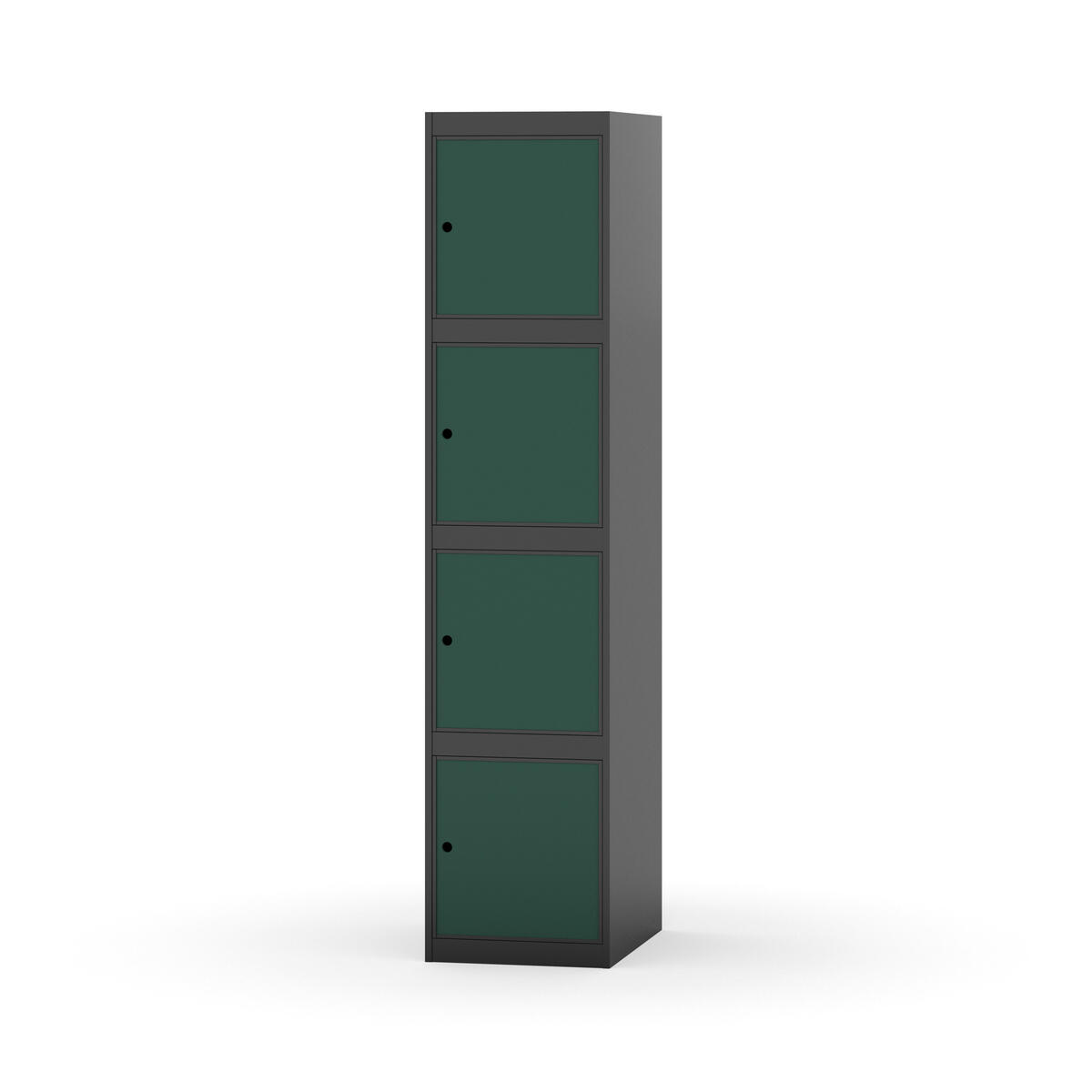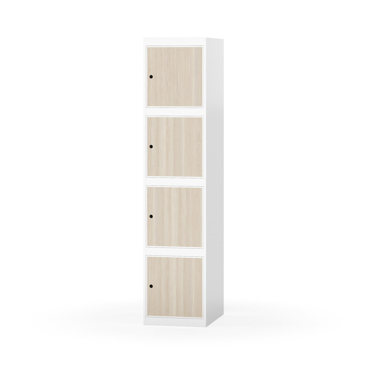 Täysin hitsattu runko. Valittavana pelti- tai korkeapainelaminaattipintainen ovi. Peltiovessa on pysäytin sekä teräsvahvike lukkoreiän ympärillä. Laminaattiovessa on teräskehys ja teräksinen pysäytin. Ovet aukeavat 90°. Sisällä ei ole hyllyjä tai vaatetankoa/-koukkuja. Kaapissa on tasainen pohja ilman kynnystä. Ilmastointireiät pohjassa ja katossa. Lukot ja sokkeli/jalusta tilataan erikseen omilla tuotenumeroillaan. Lukot tulevat asennettuna, sokkeli/jalusta asennetaan toimituksen yhteydessä.