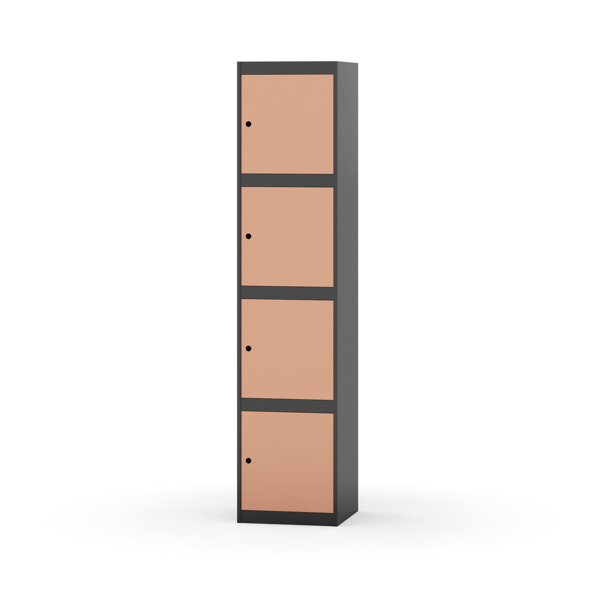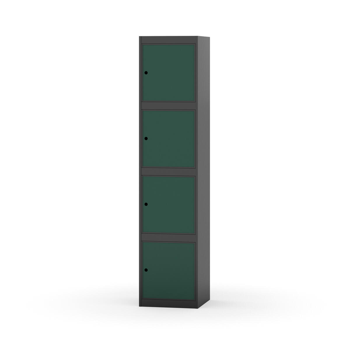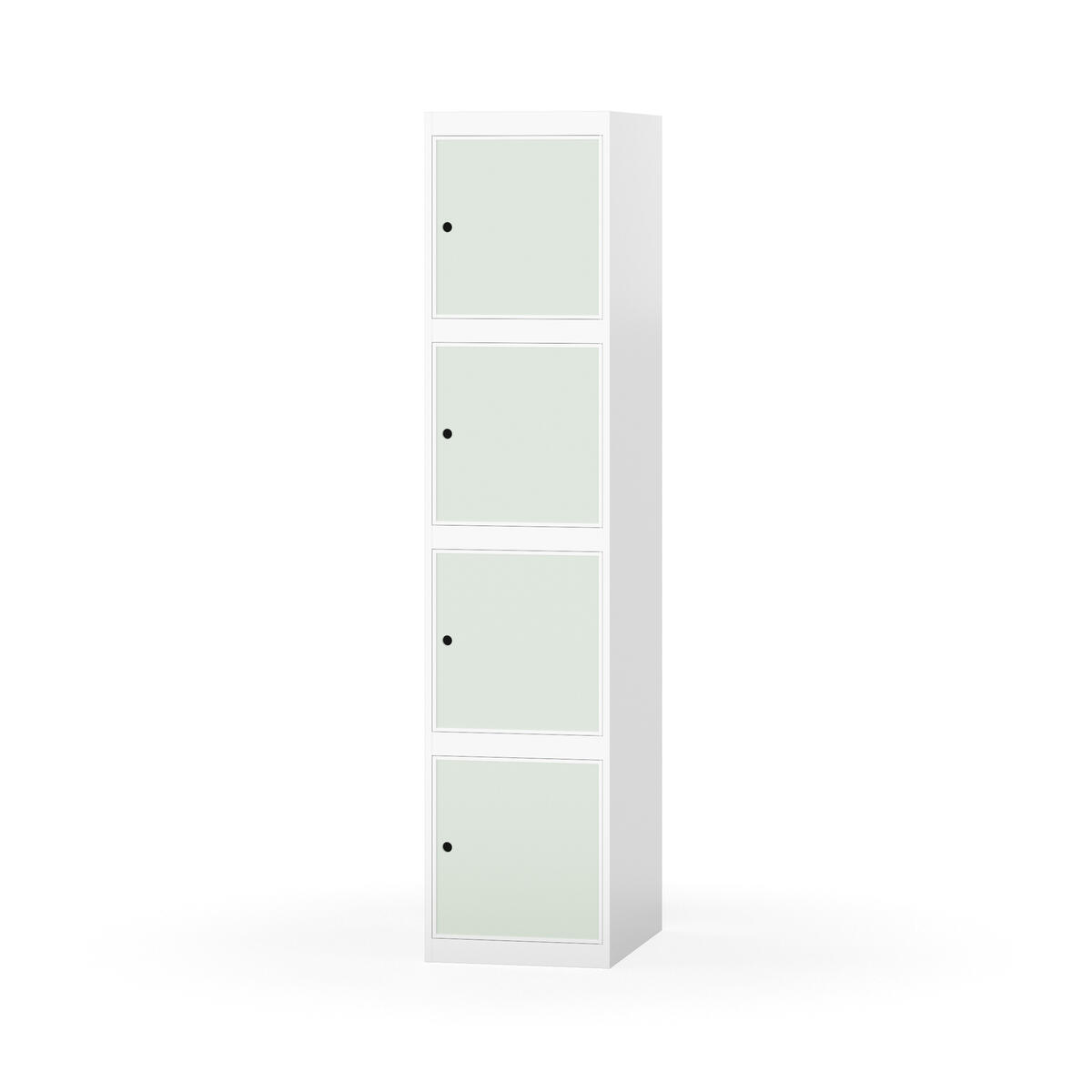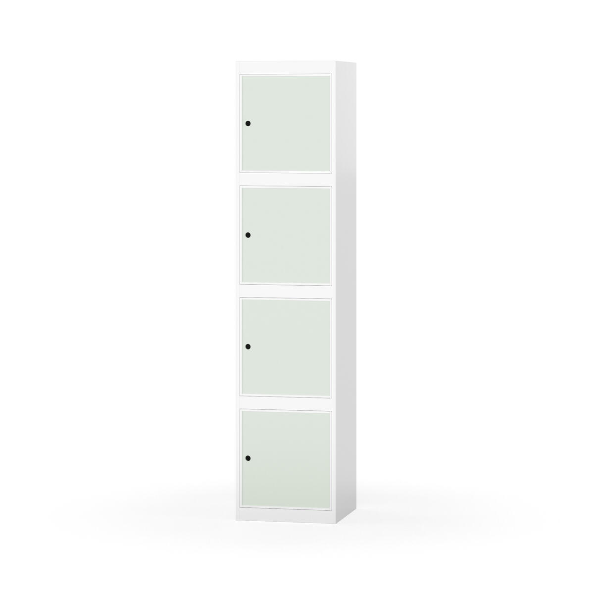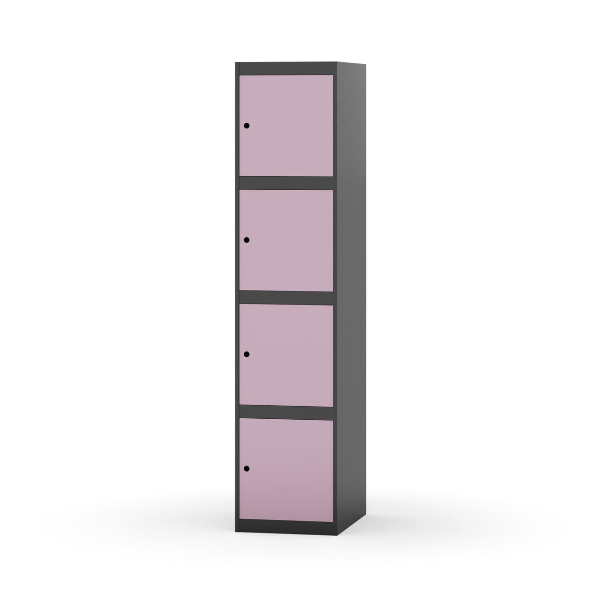 Täysin hitsattu runko. Valittavana pelti- tai korkeapainelaminaattipintainen ovi. Peltiovessa on pysäytin sekä teräsvahvike lukkoreiän ympärillä. Laminaattiovessa on teräskehys ja teräksinen pysäytin. Ovet aukeavat 90°. Sisällä ei ole hyllyjä tai vaatetankoa/-koukkuja. Kaapissa on tasainen pohja ilman kynnystä. Ilmastointireiät pohjassa ja katossa. Lukot ja sokkeli/jalusta tilataan erikseen omilla tuotenumeroillaan. Lukot tulevat asennettuna, sokkeli/jalusta asennetaan toimituksen yhteydessä.