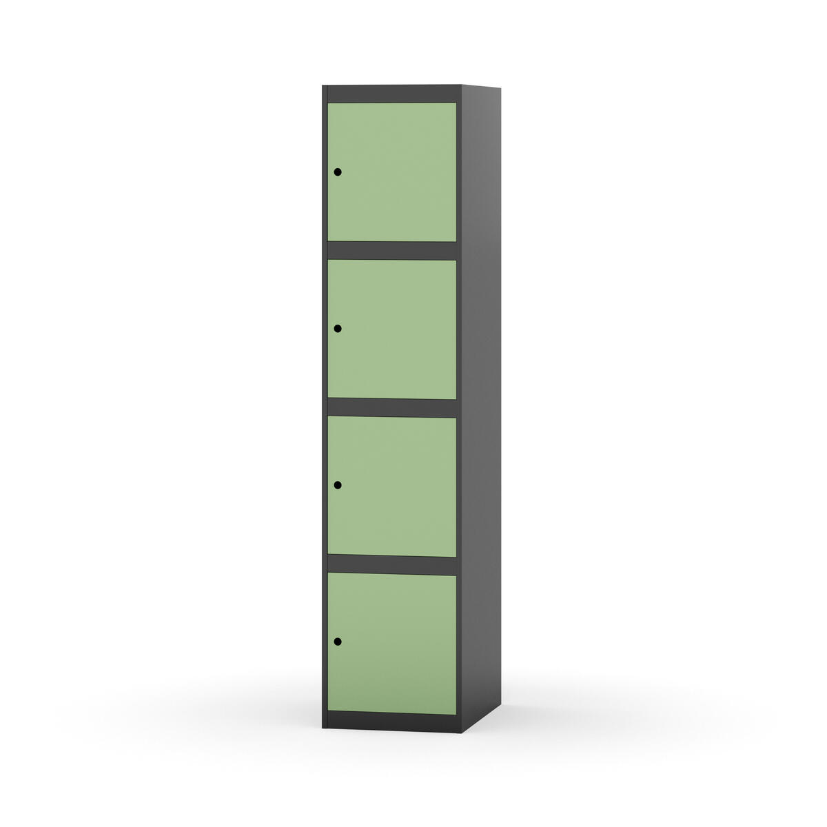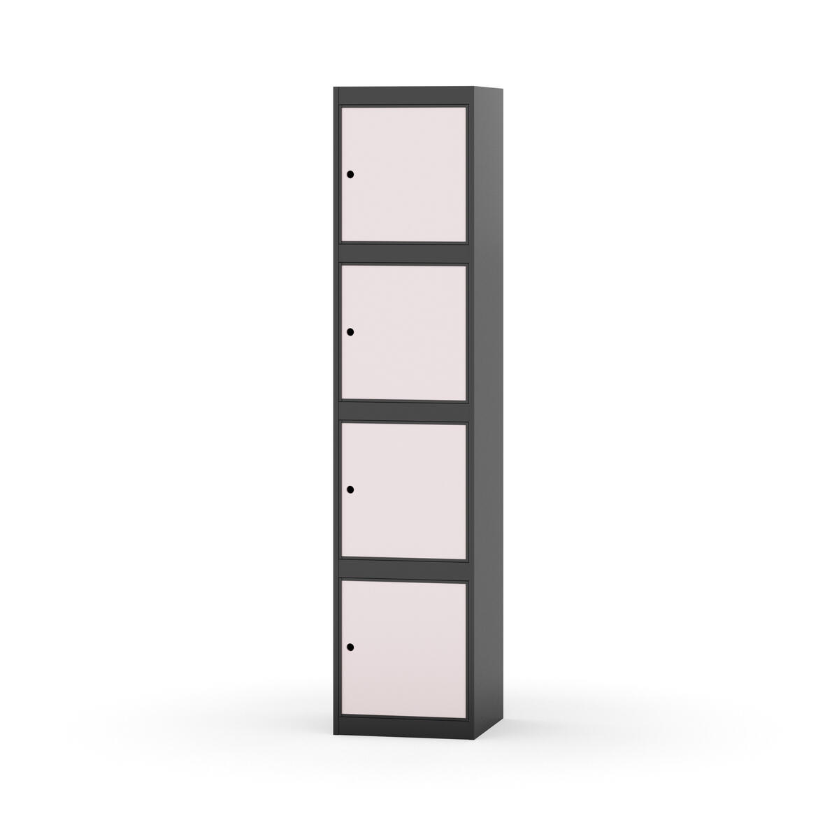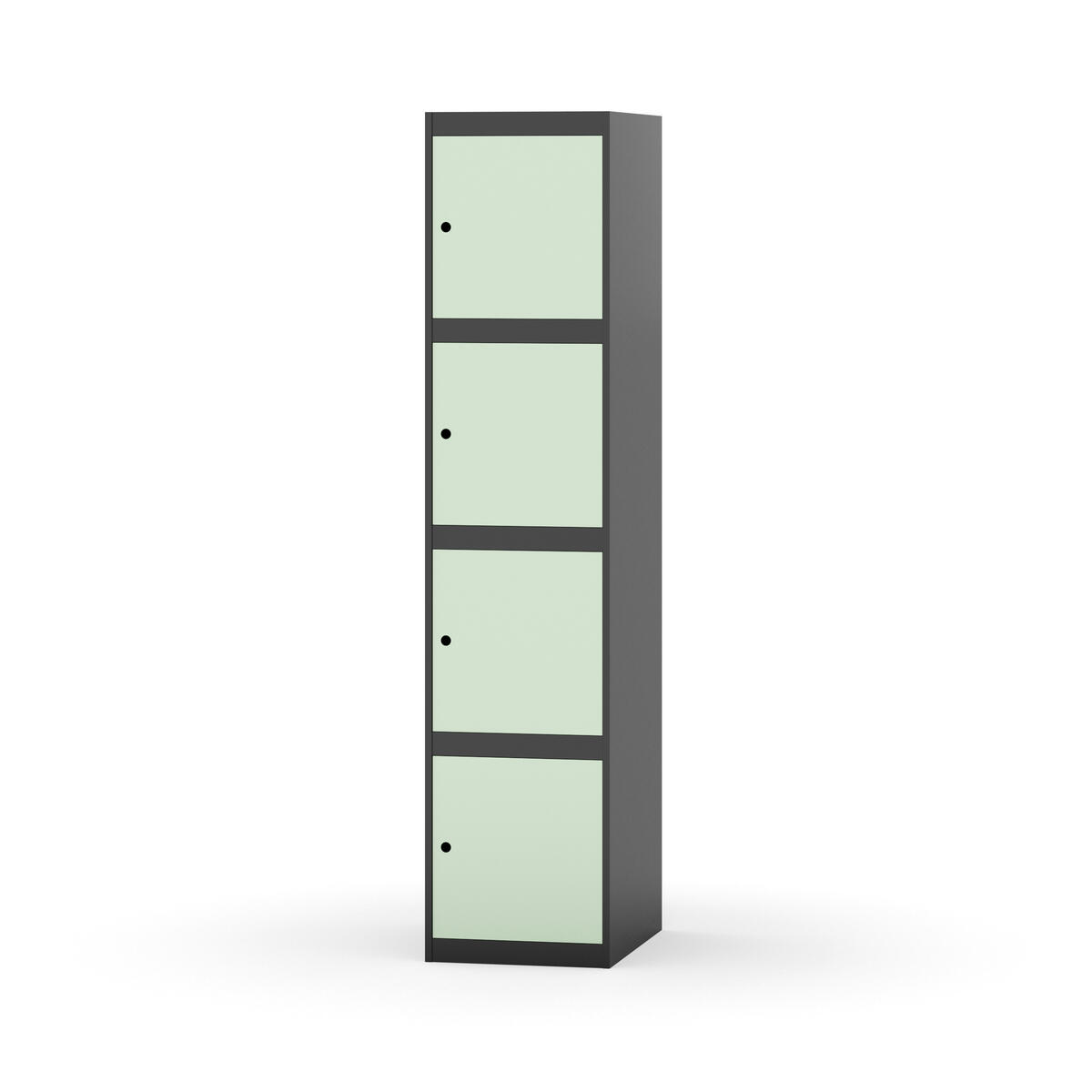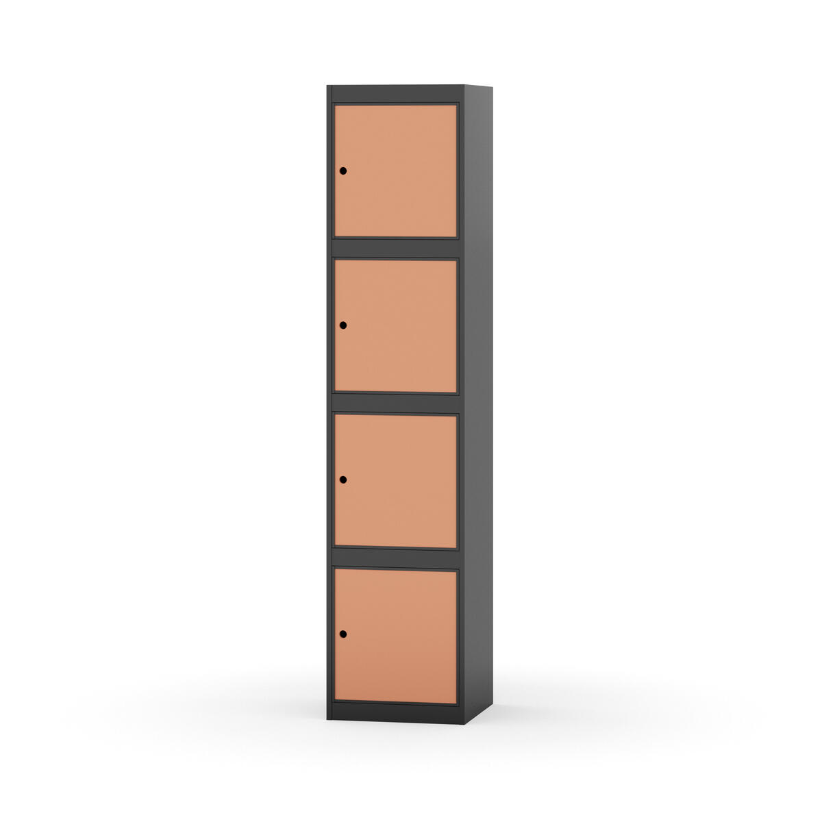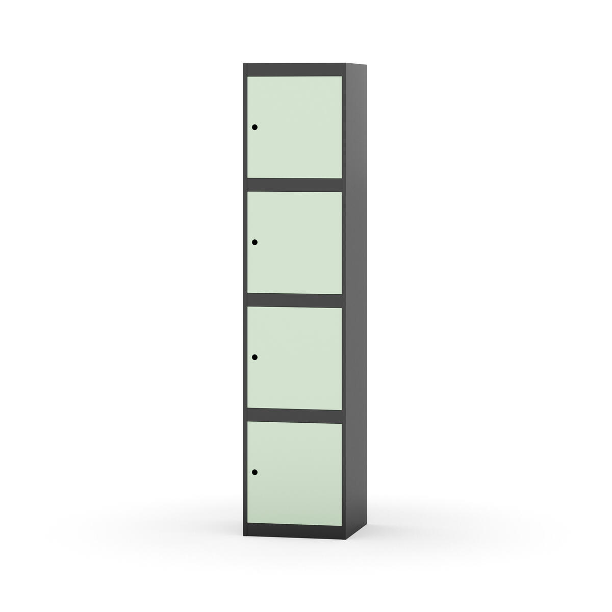 Täysin hitsattu runko. Valittavana pelti- tai korkeapainelaminaattipintainen ovi. Peltiovessa on pysäytin sekä teräsvahvike lukkoreiän ympärillä. Laminaattiovessa on teräskehys ja teräksinen pysäytin. Ovet aukeavat 90°. Sisällä ei ole hyllyjä tai vaatetankoa/-koukkuja. Kaapissa on tasainen pohja ilman kynnystä. Ilmastointireiät pohjassa ja katossa. Lukot ja sokkeli/jalusta tilataan erikseen omilla tuotenumeroillaan. Lukot tulevat asennettuna, sokkeli/jalusta asennetaan toimituksen yhteydessä.