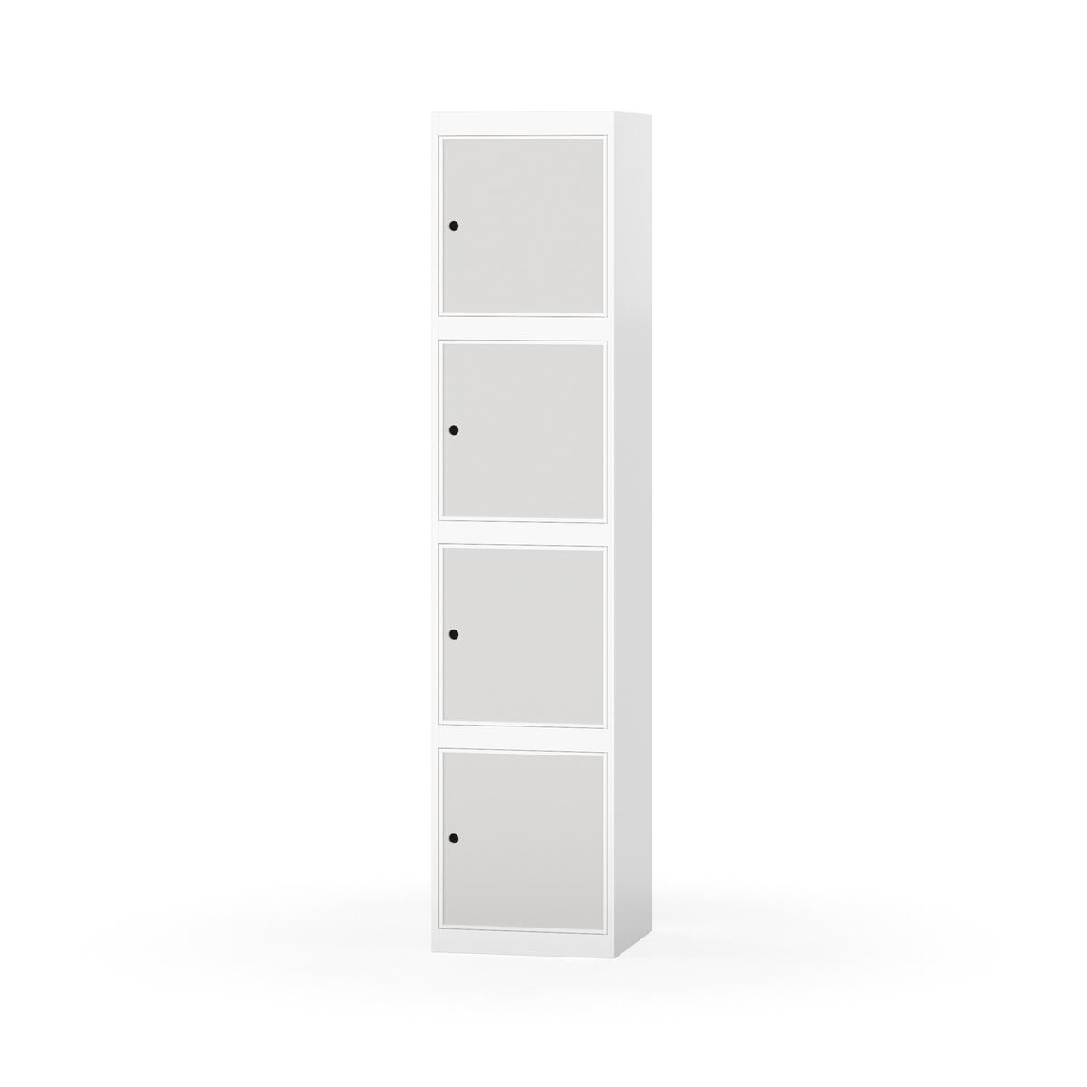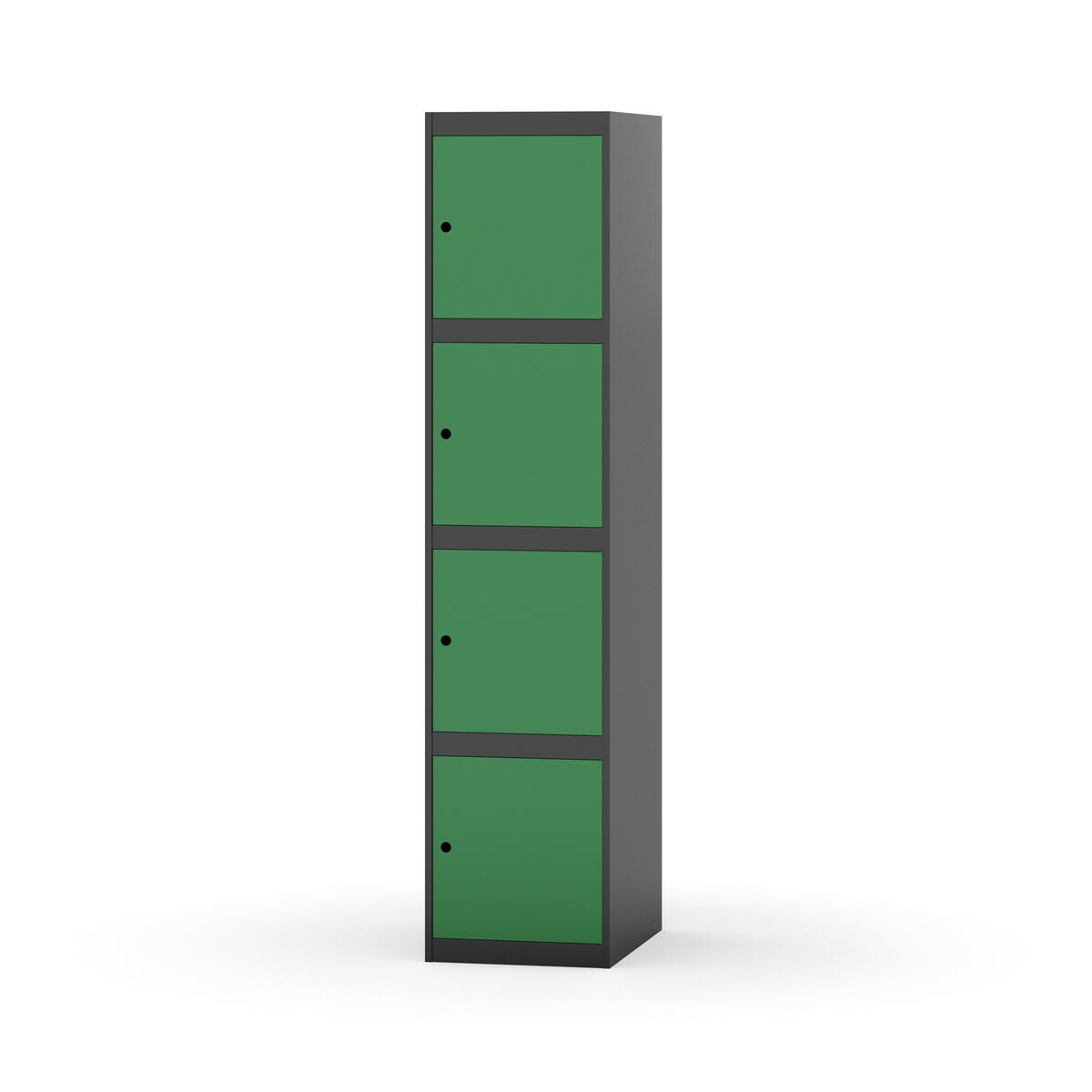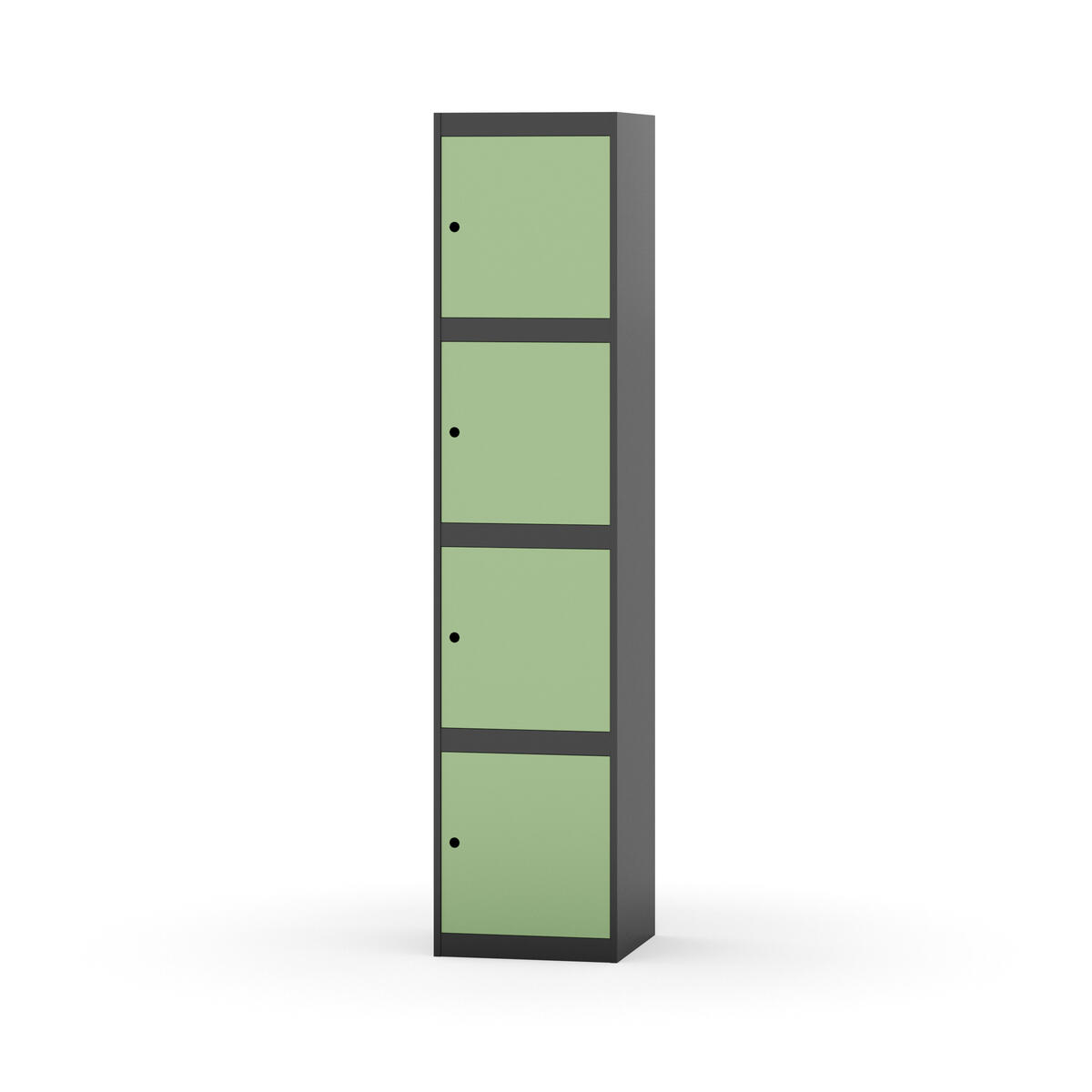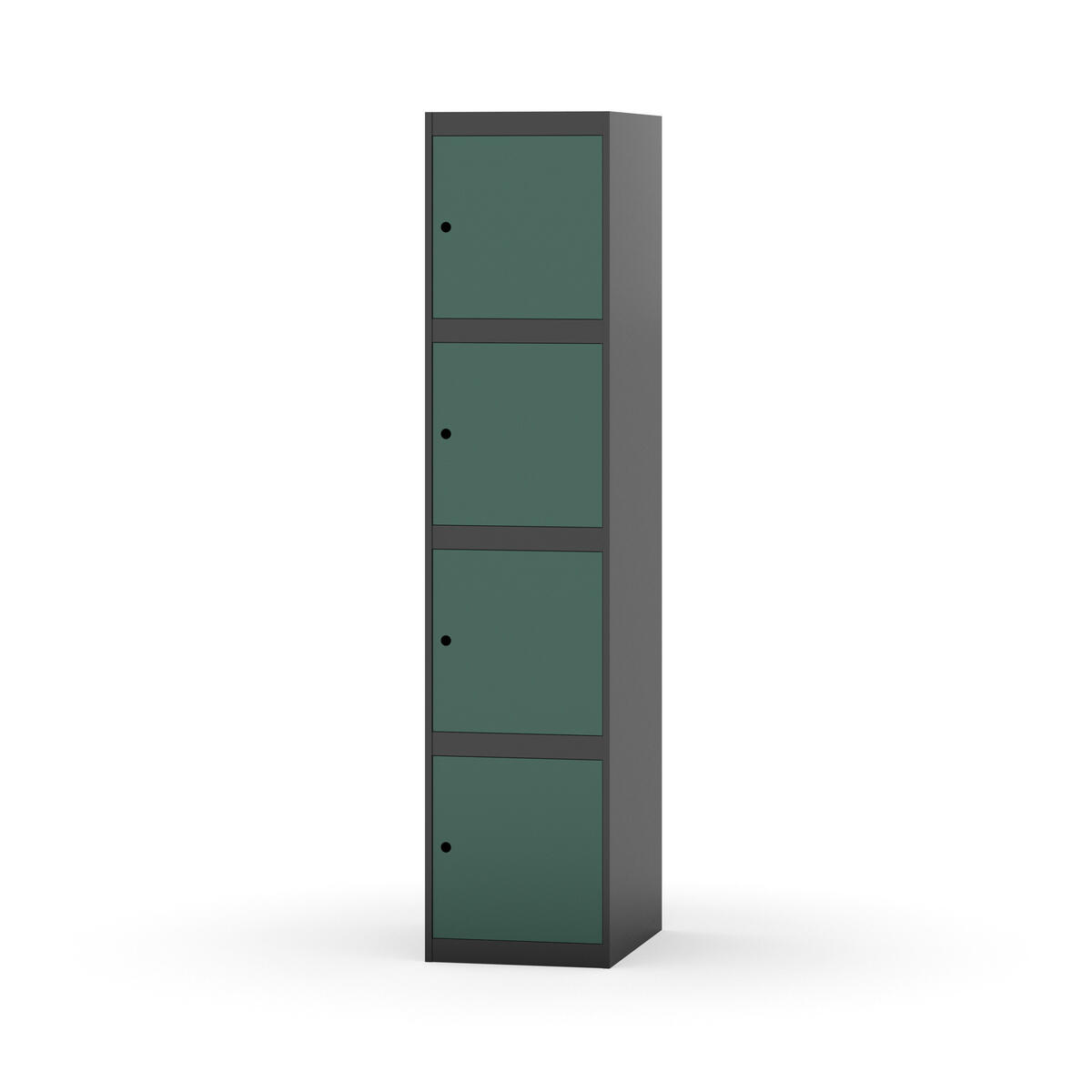 Täysin hitsattu runko. Valittavana pelti- tai korkeapainelaminaattipintainen ovi. Peltiovessa on pysäytin sekä teräsvahvike lukkoreiän ympärillä. Laminaattiovessa on teräskehys ja teräksinen pysäytin. Ovet aukeavat 90°. Sisällä ei ole hyllyjä tai vaatetankoa/-koukkuja. Kaapissa on tasainen pohja ilman kynnystä. Ilmastointireiät pohjassa ja katossa. Lukot ja sokkeli/jalusta tilataan erikseen omilla tuotenumeroillaan. Lukot tulevat asennettuna, sokkeli/jalusta asennetaan toimituksen yhteydessä.