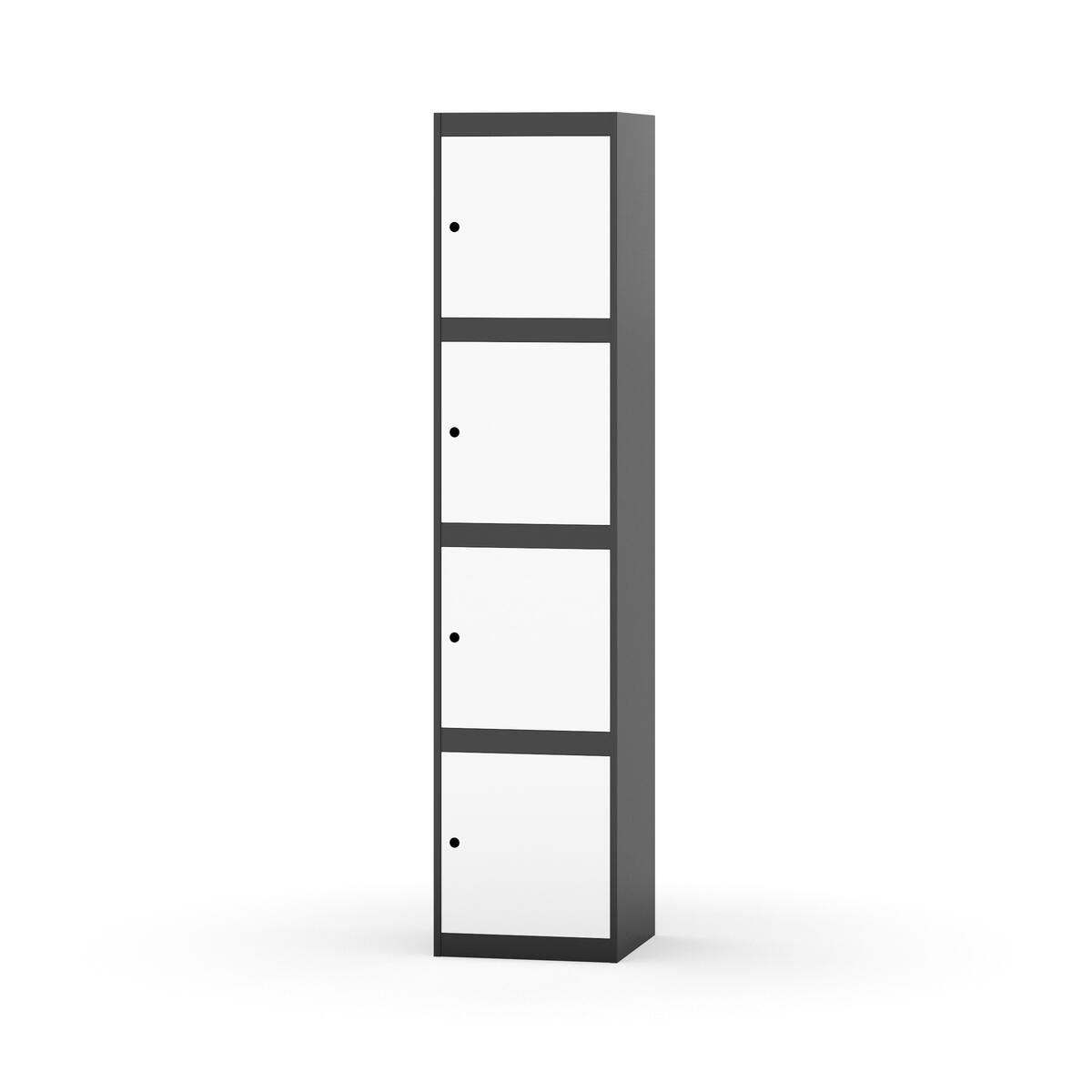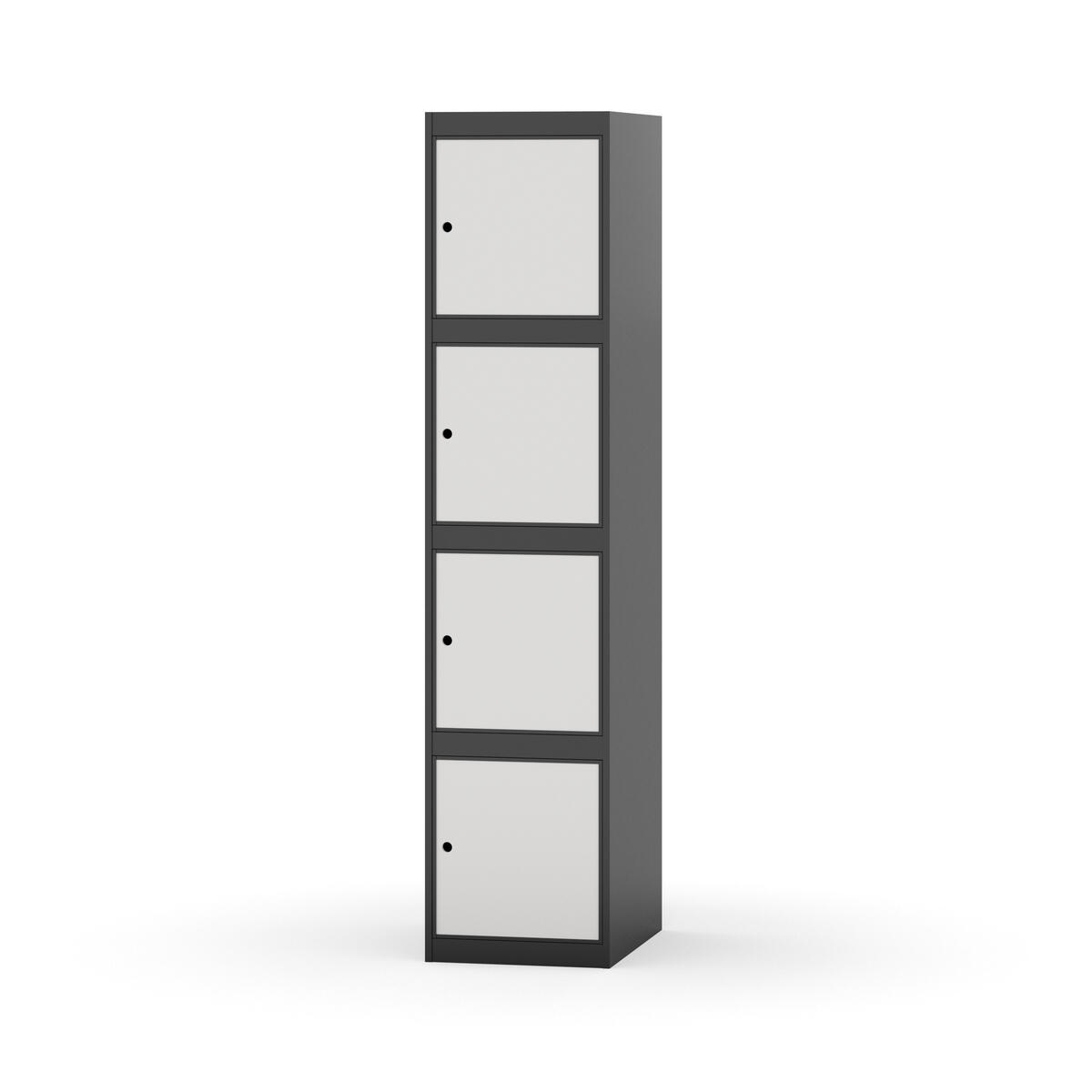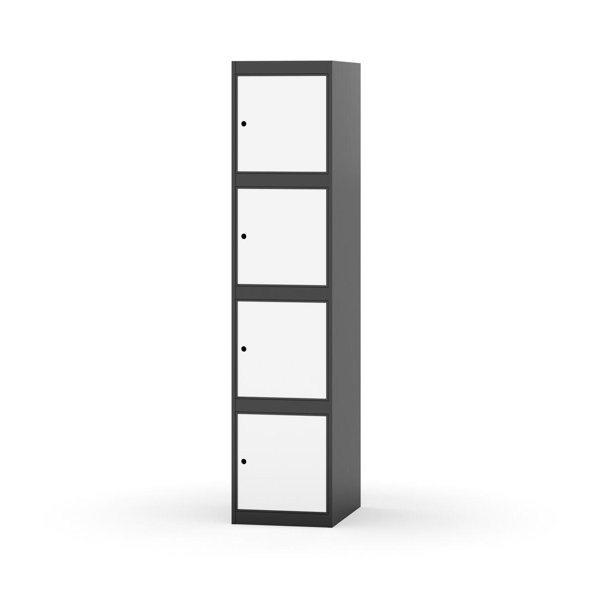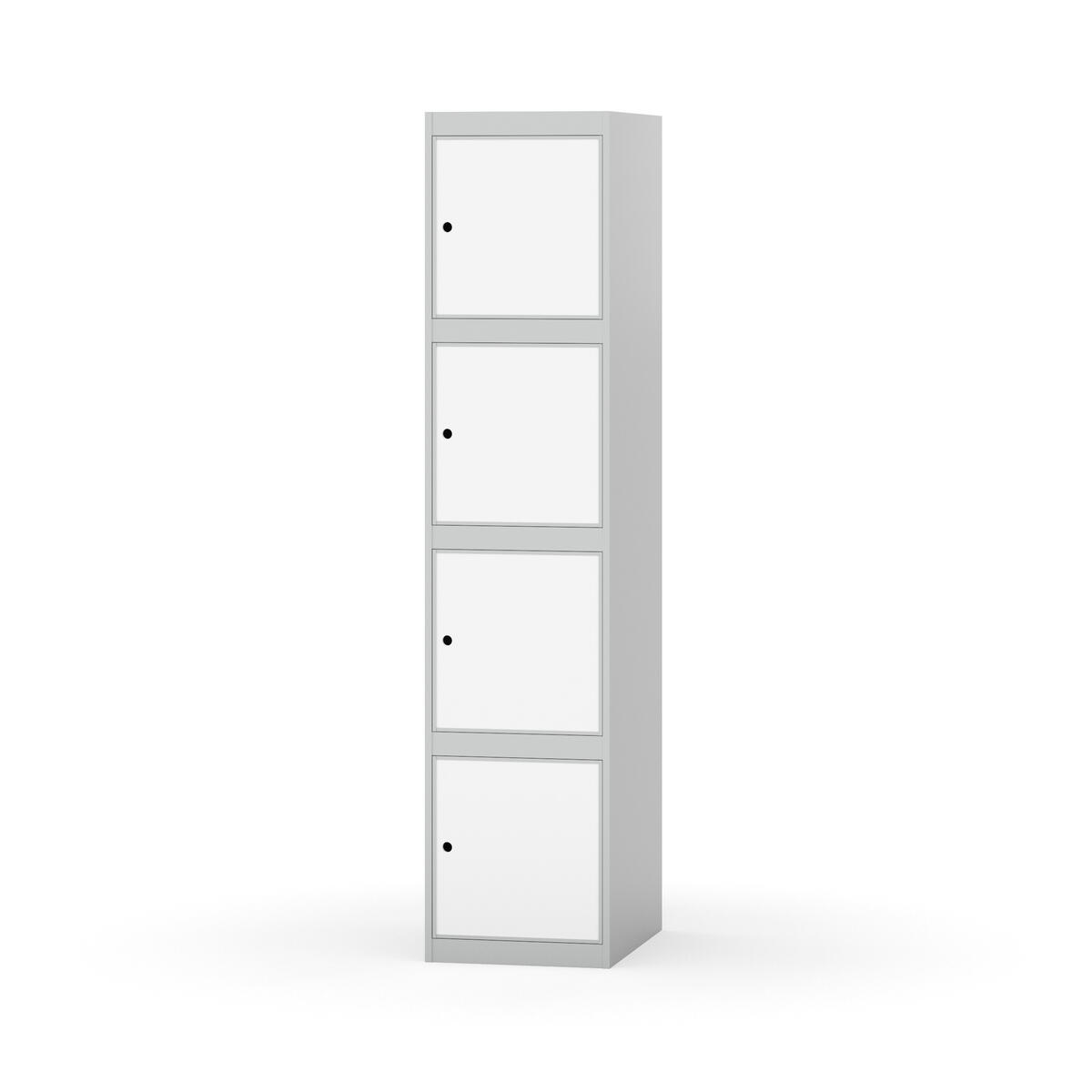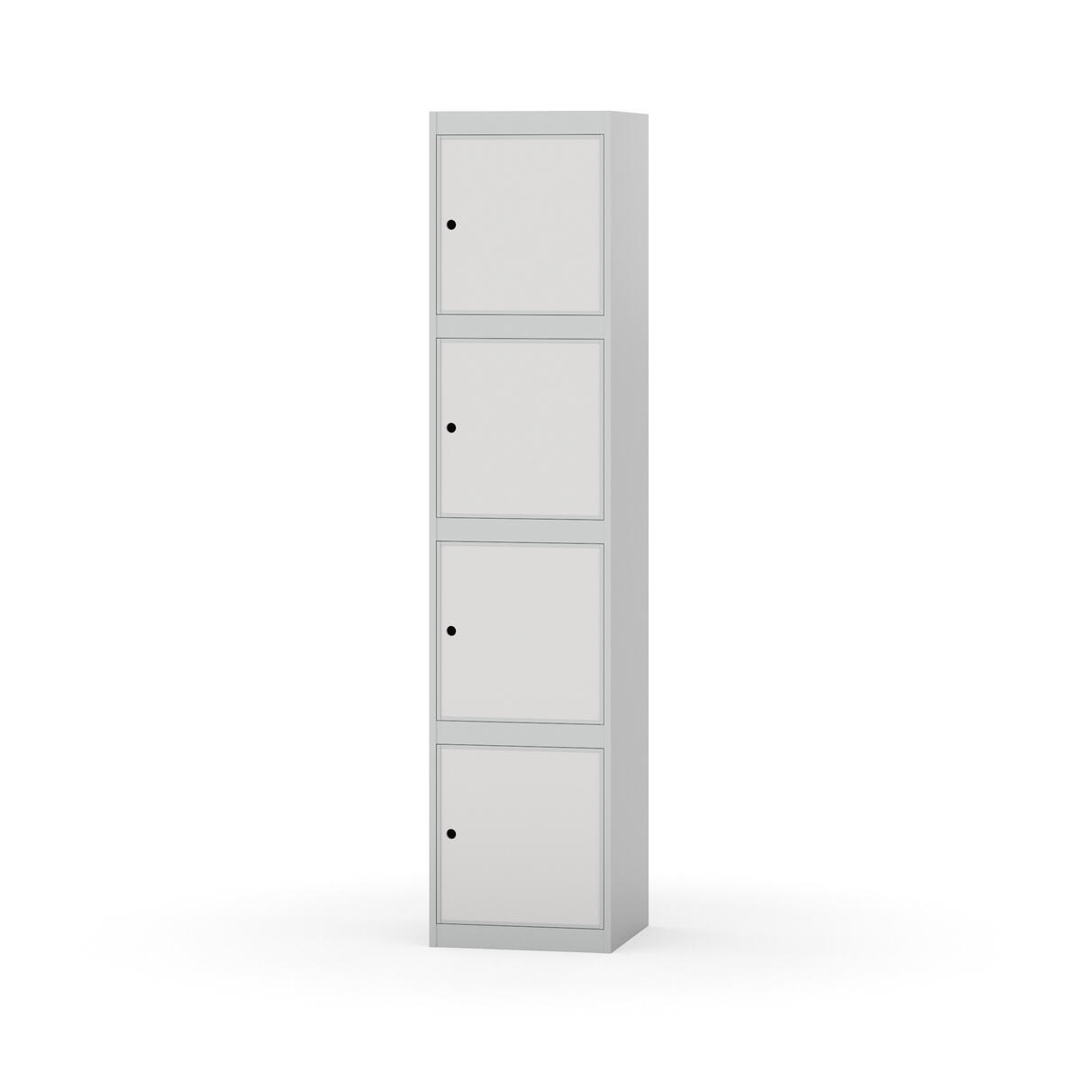 Täysin hitsattu runko. Valittavana pelti- tai korkeapainelaminaattipintainen ovi. Peltiovessa on pysäytin sekä teräsvahvike lukkoreiän ympärillä. Laminaattiovessa on teräskehys ja teräksinen pysäytin. Ovet aukeavat 90°. Sisällä ei ole hyllyjä tai vaatetankoa/-koukkuja. Kaapissa on tasainen pohja ilman kynnystä. Ilmastointireiät pohjassa ja katossa. Lukot ja sokkeli/jalusta tilataan erikseen omilla tuotenumeroillaan. Lukot tulevat asennettuna, sokkeli/jalusta asennetaan toimituksen yhteydessä.