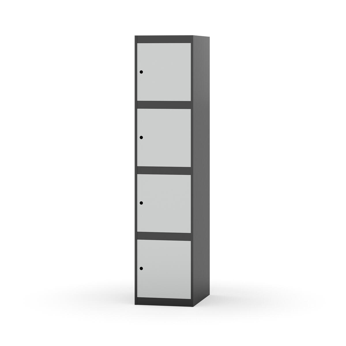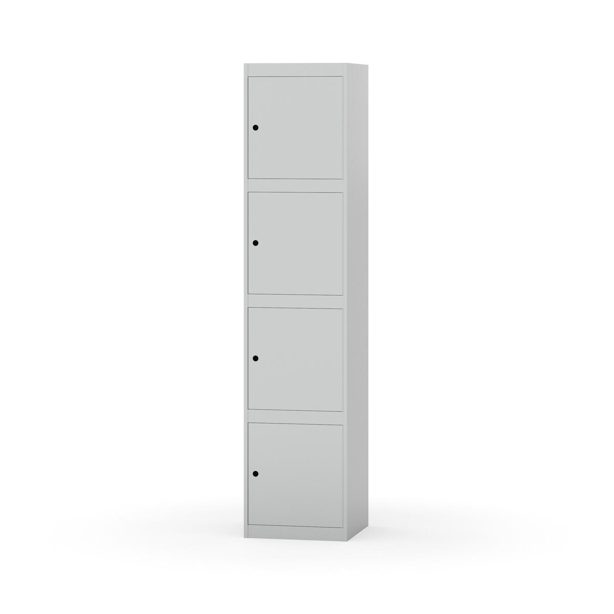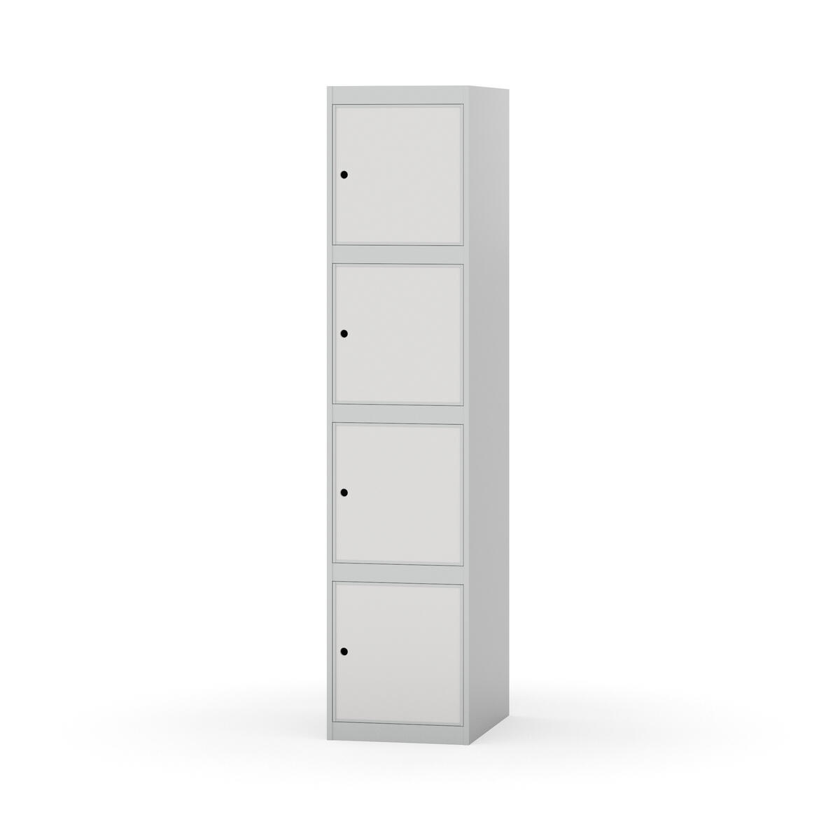 Kaappi, joka kestää vaativat kouluolosuhteet. Täysin hitsattu runko vahvistetulla reunaprofiililla. Valittavana pelti- tai korkeapainelaminaattipintainen ovi. Peltiovessa on pysäytin sekä kaksinkertainen teräsvahvike lukkoreiän ympärillä. Laminaattiovessa on teräskehys ja teräksinen pysäytin. Ovet aukeavat 90°. Sisällä ei ole hyllyjä tai vaatetankoa/-koukkuja. Kaapissa on tasainen pohja ilman kynnystä. Ilmastointireiät pohjassa ja katossa. Lukot ja sokkeli/jalusta tilataan erikseen omilla tuotenumeroillaan. Lukot tulevat asennettuna, sokkeli/jalusta asennetaan toimituksen yhteydessä.