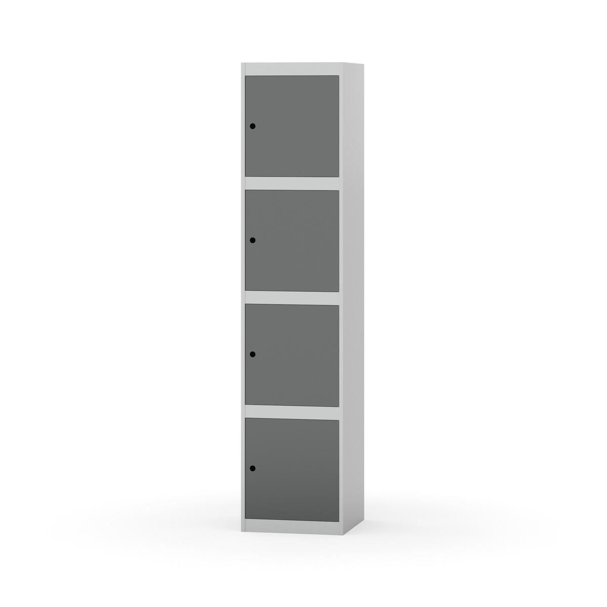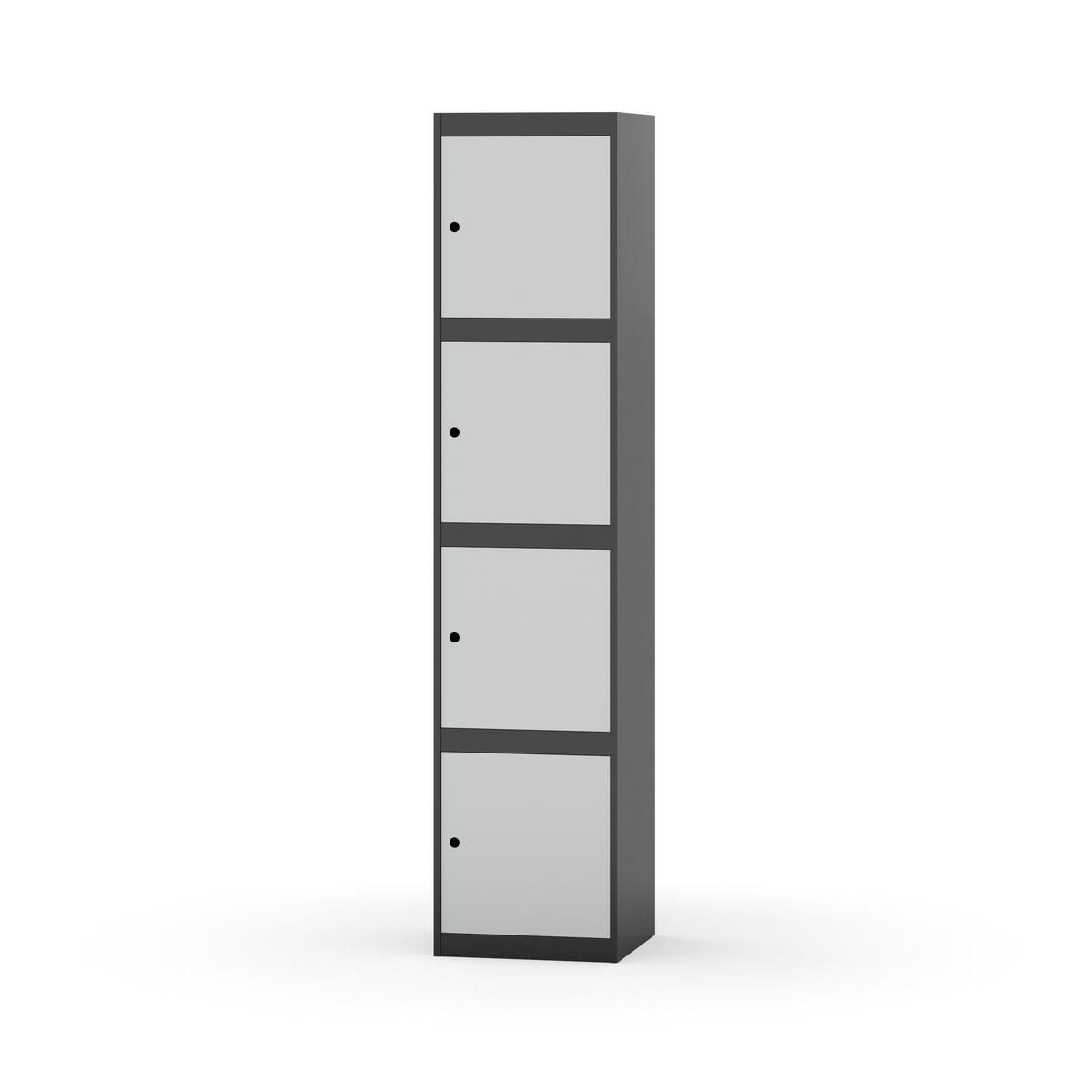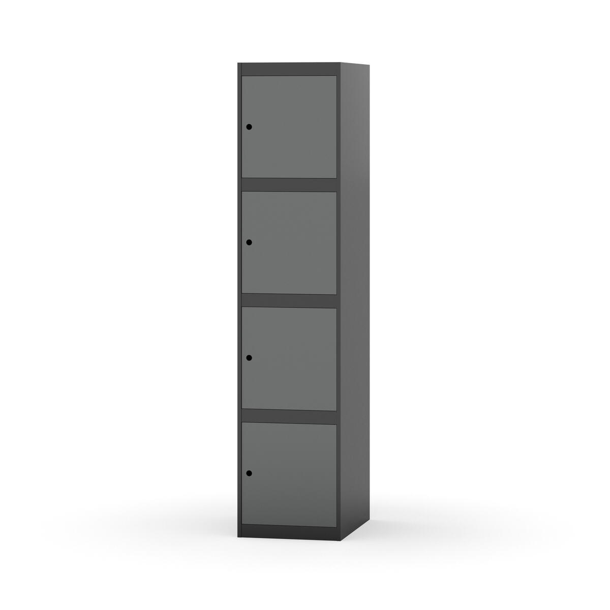 Kaappi, joka kestää vaativat kouluolosuhteet. Täysin hitsattu runko vahvistetulla reunaprofiililla. Valittavana pelti- tai korkeapainelaminaattipintainen ovi. Peltiovessa on pysäytin sekä kaksinkertainen teräsvahvike lukkoreiän ympärillä. Laminaattiovessa on teräskehys ja teräksinen pysäytin. Ovet aukeavat 90°. Sisällä ei ole hyllyjä tai vaatetankoa/-koukkuja. Kaapissa on tasainen pohja ilman kynnystä. Ilmastointireiät pohjassa ja katossa. Lukot ja sokkeli/jalusta tilataan erikseen omilla tuotenumeroillaan. Lukot tulevat asennettuna, sokkeli/jalusta asennetaan toimituksen yhteydessä.