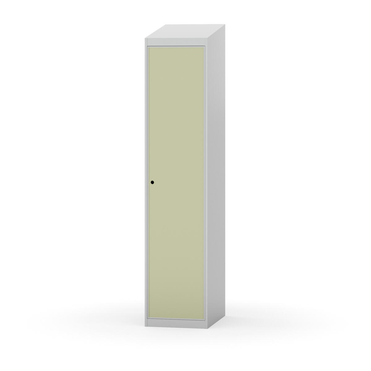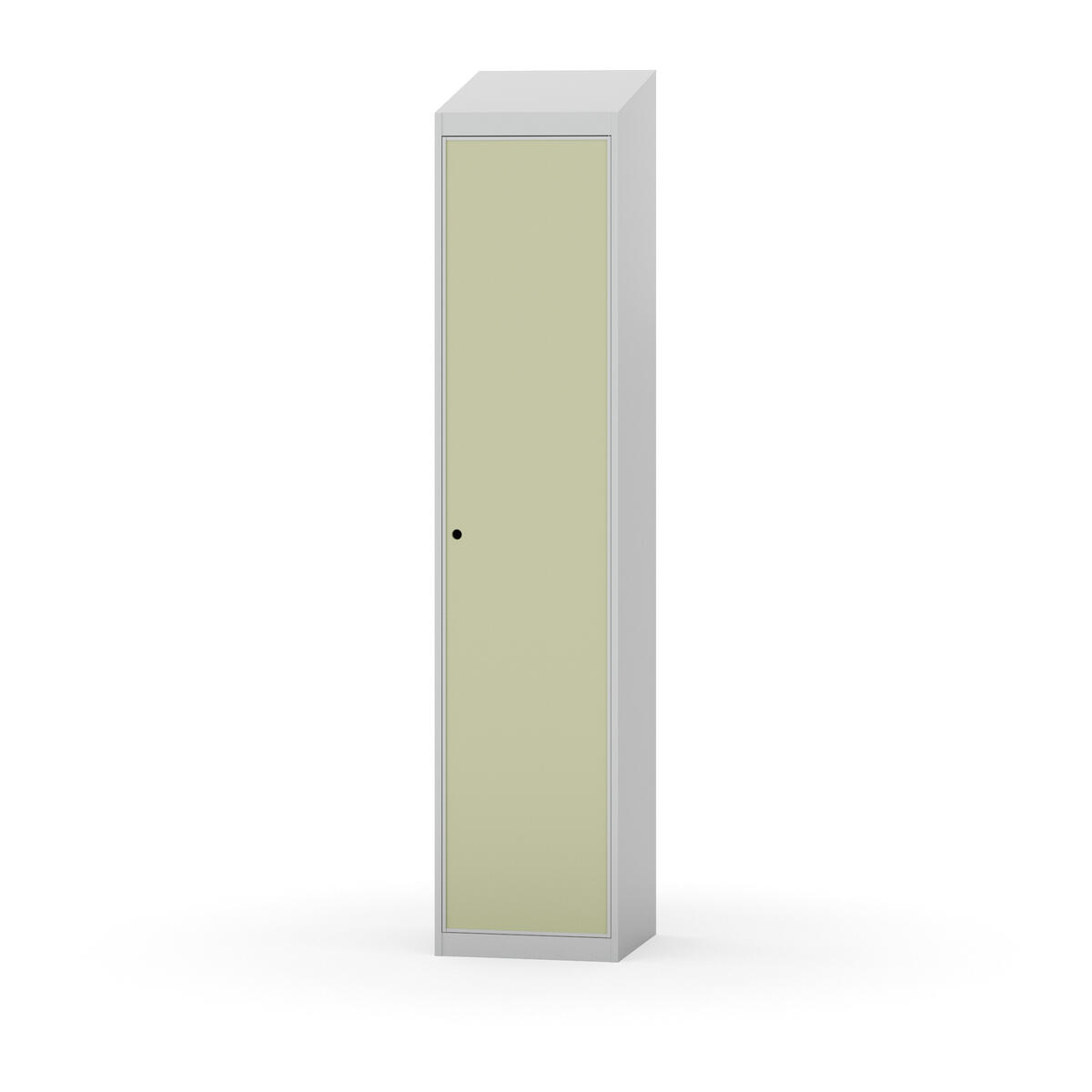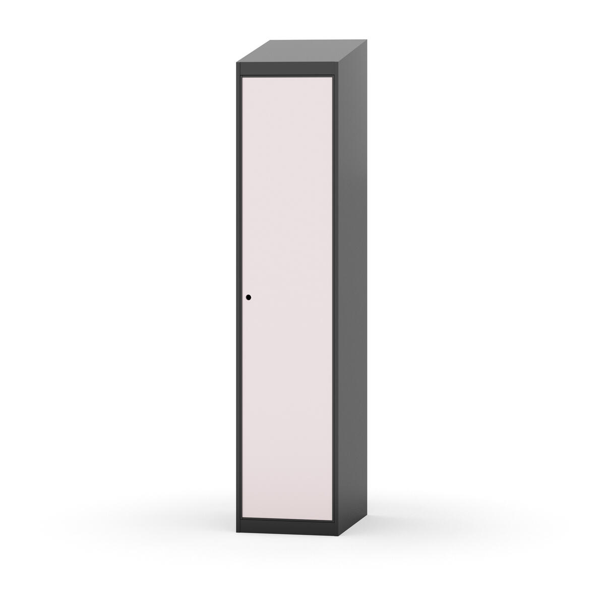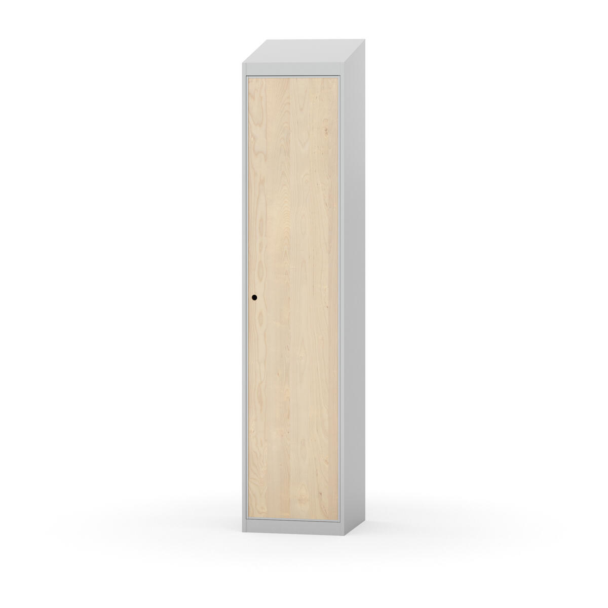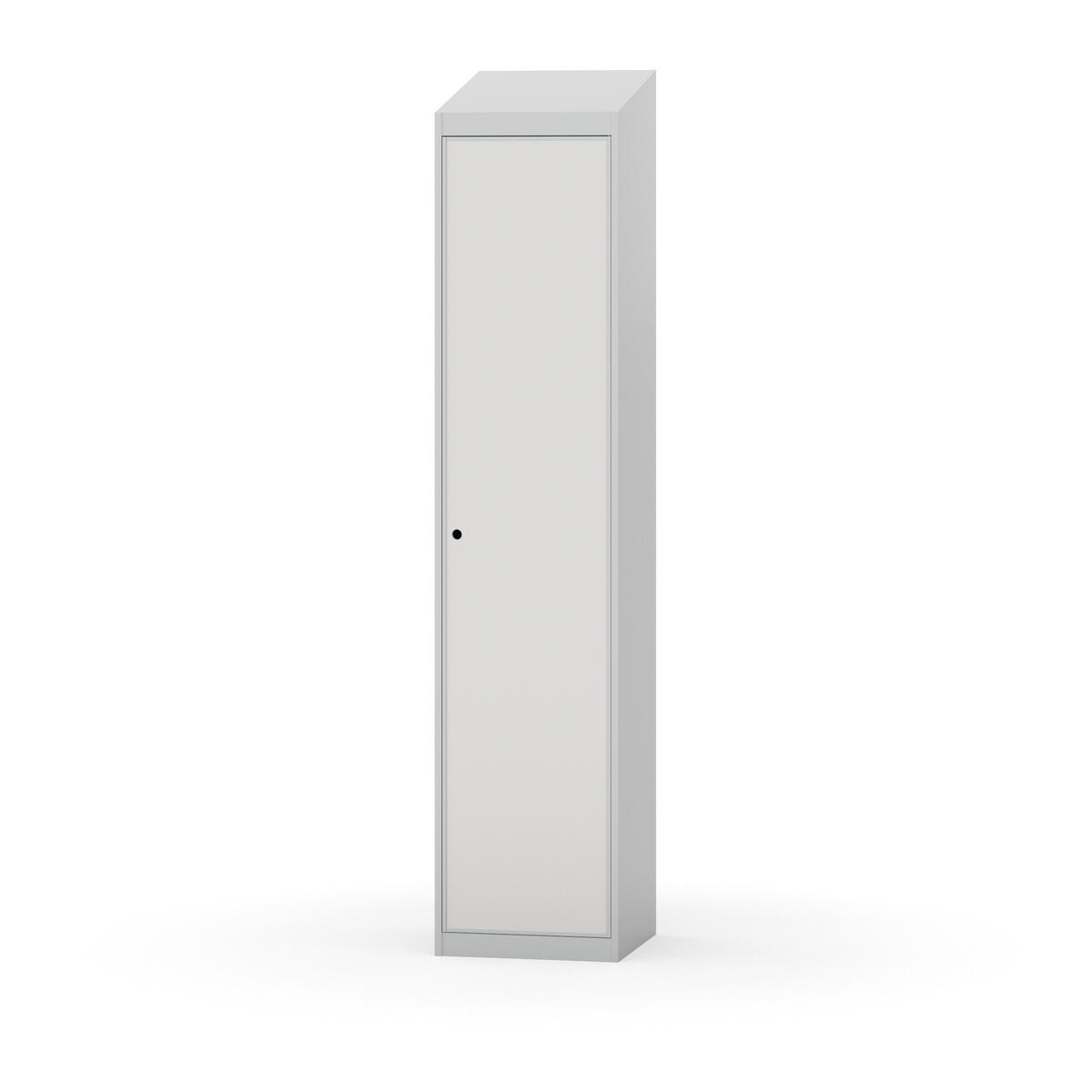 Täysin hitsattu runko. Valittavana pelti- tai korkeapainelaminaattipintainen ovi. Peltiovessa on pysäytin sekä teräsvahvike lukkoreiän ympärillä. Laminaattiovessa on teräskehys ja teräksinen pysäytin. Ovet aukeavat 90°. Sisällä on hylly ja vaatetanko kahdella kaksoiskoukulla. Kaapissa on tasainen pohja ilman kynnystä. Ilmastointireiät pohjassa ja katossa. Lukot ja sokkeli/jalusta tilataan erikseen omilla tuotenumeroillaan. Lukot tulevat asennettuna, sokkeli/jalusta asennetaan toimituksen yhteydessä.