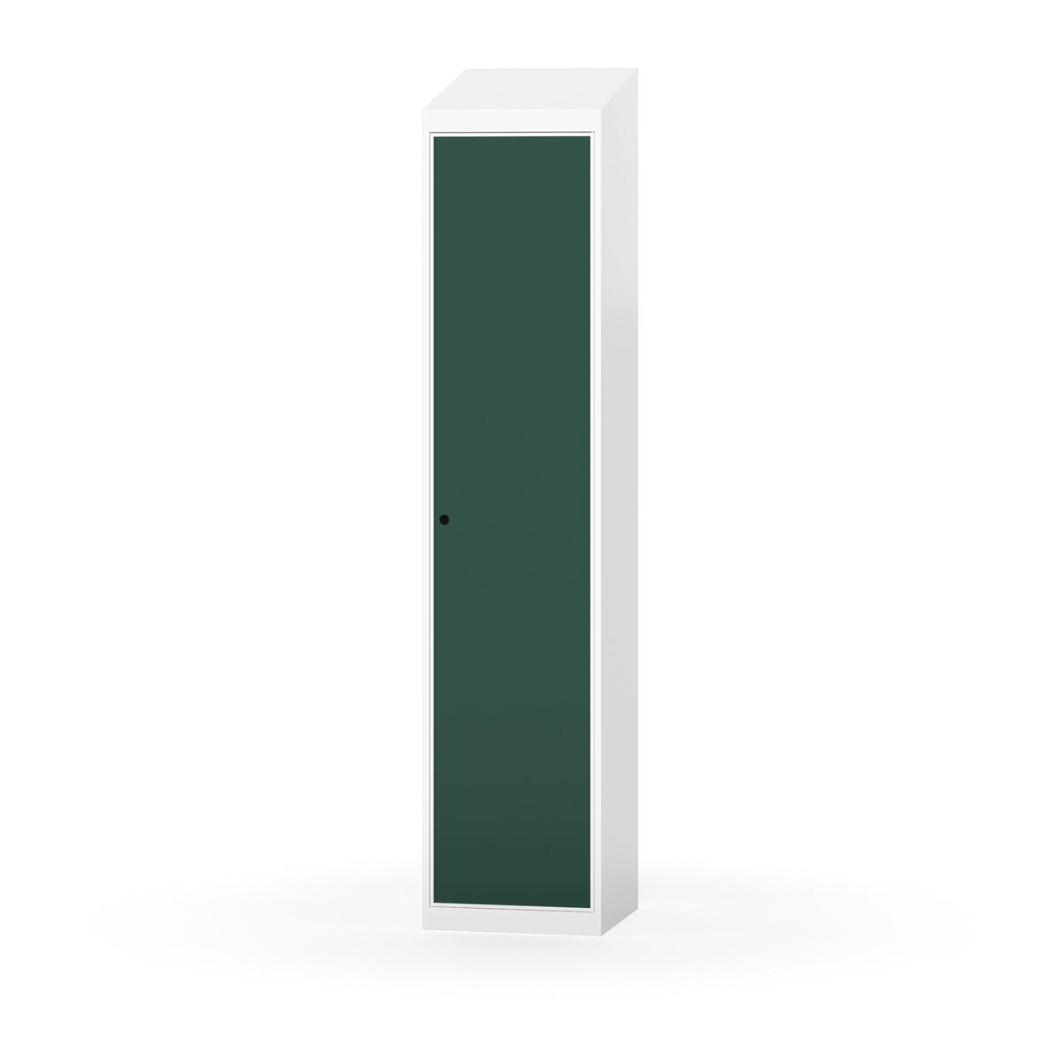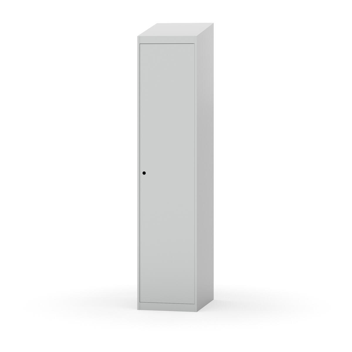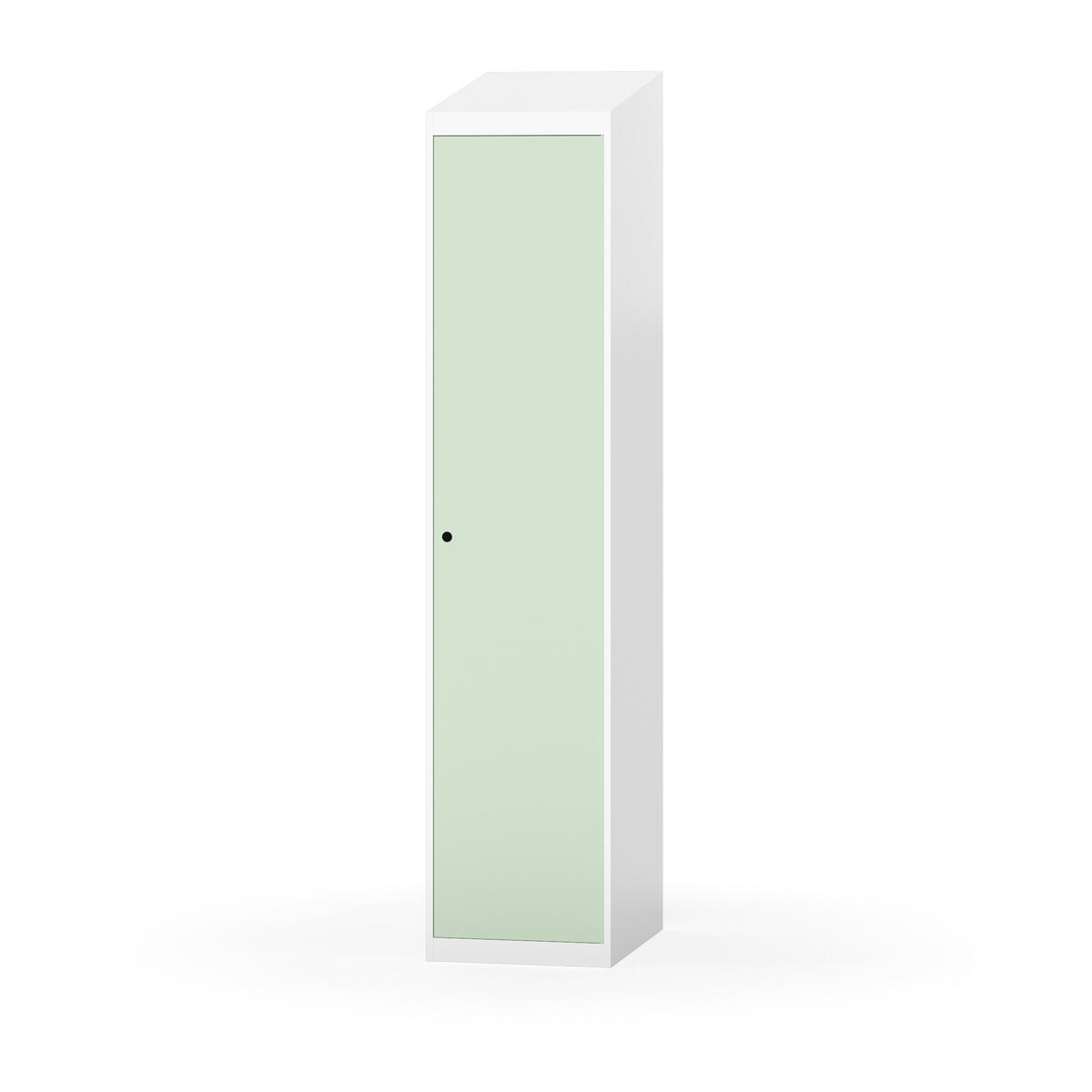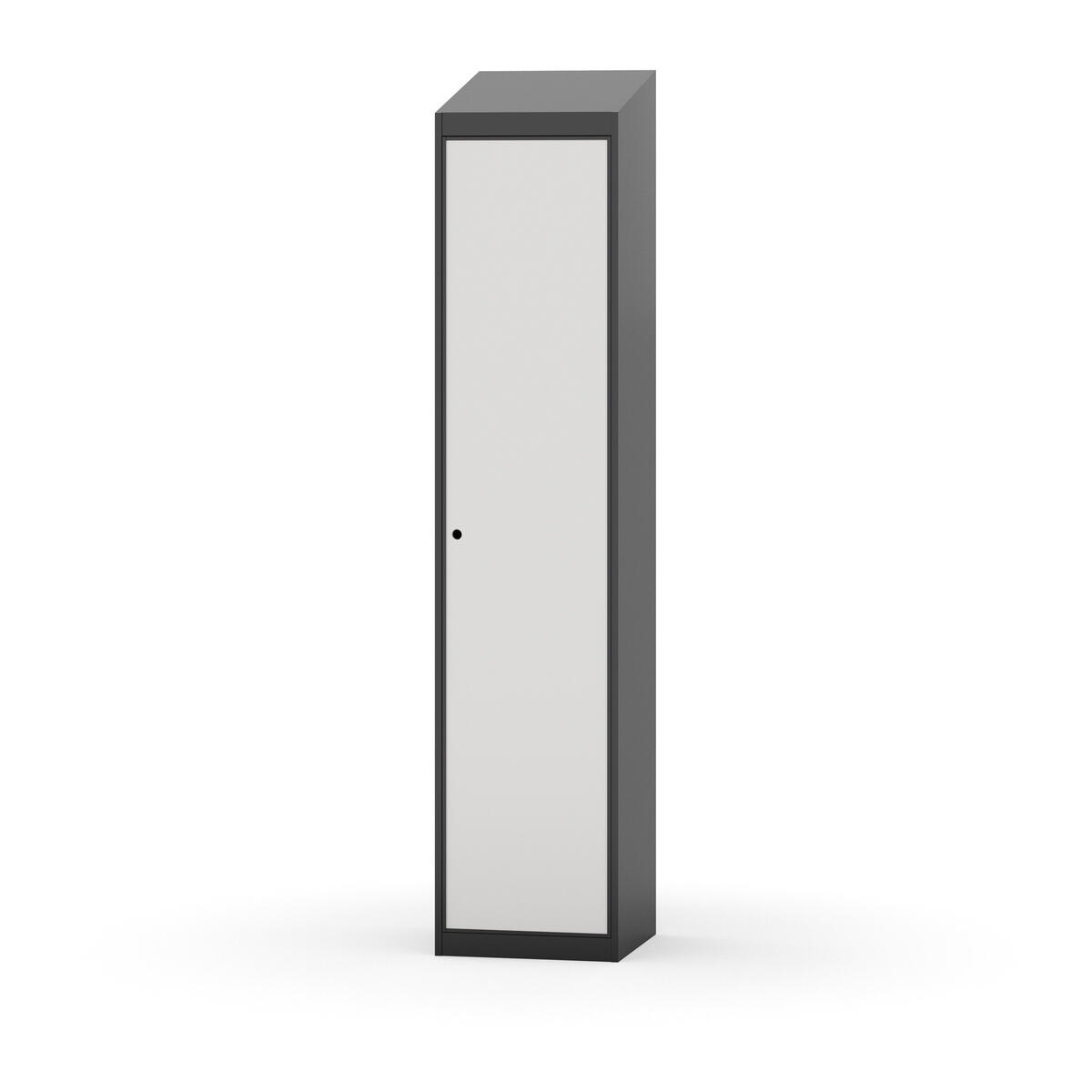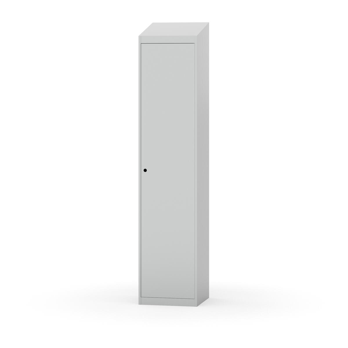 Täysin hitsattu runko. Valittavana pelti- tai korkeapainelaminaattipintainen ovi. Peltiovessa on pysäytin sekä teräsvahvike lukkoreiän ympärillä. Laminaattiovessa on teräskehys ja teräksinen pysäytin. Ovet aukeavat 90°. Sisällä on hylly ja vaatetanko kahdella kaksoiskoukulla. Kaapissa on tasainen pohja ilman kynnystä. Ilmastointireiät pohjassa ja katossa. Lukot ja sokkeli/jalusta tilataan erikseen omilla tuotenumeroillaan. Lukot tulevat asennettuna, sokkeli/jalusta asennetaan toimituksen yhteydessä.
