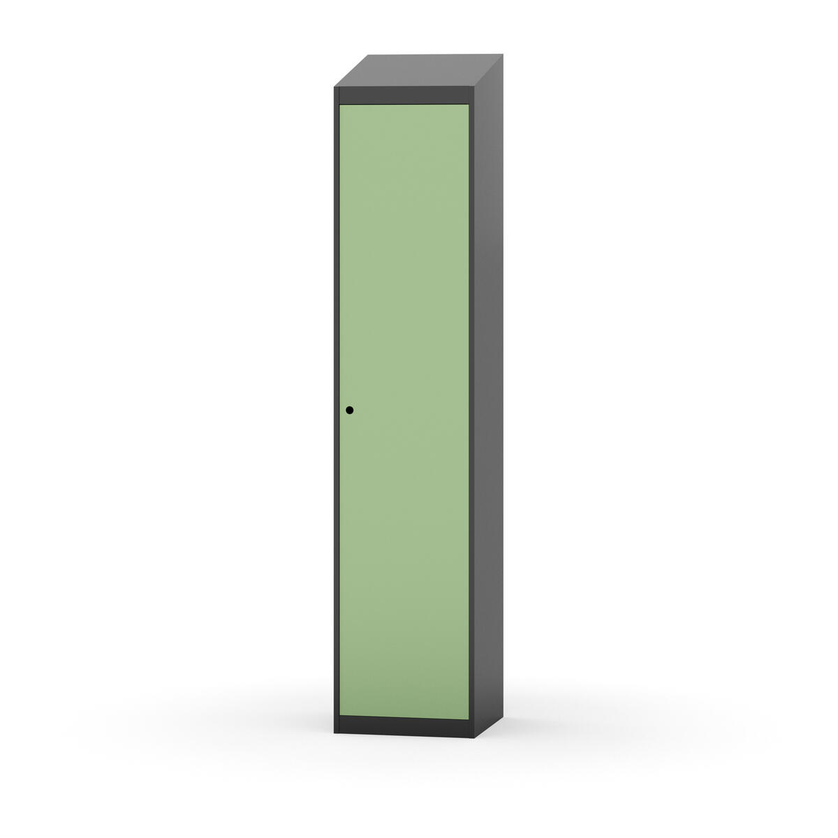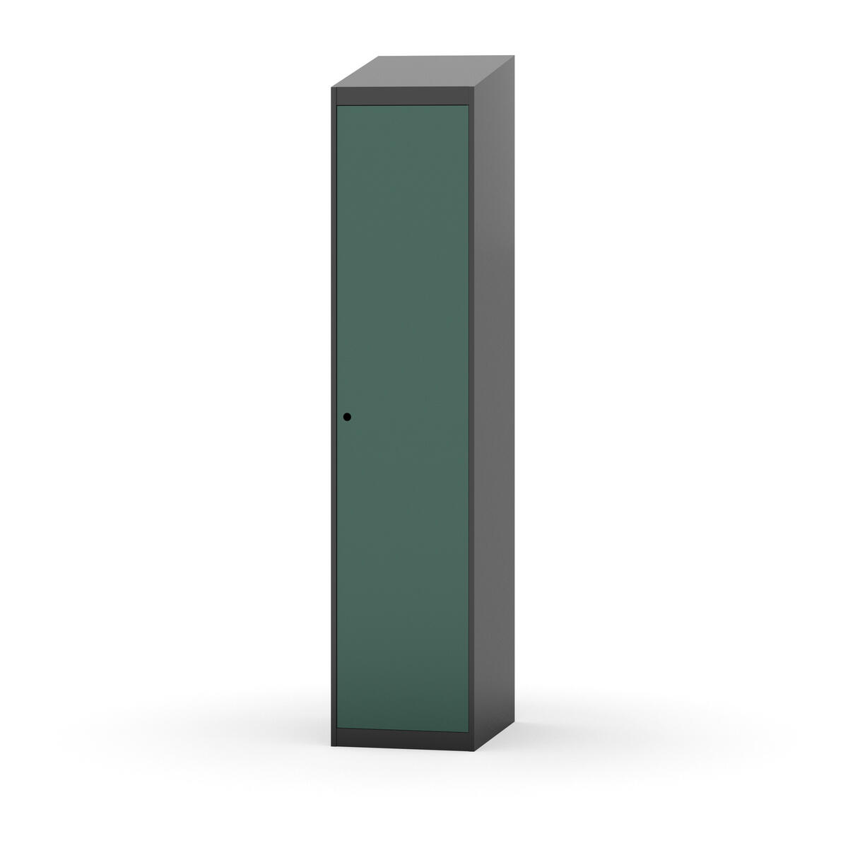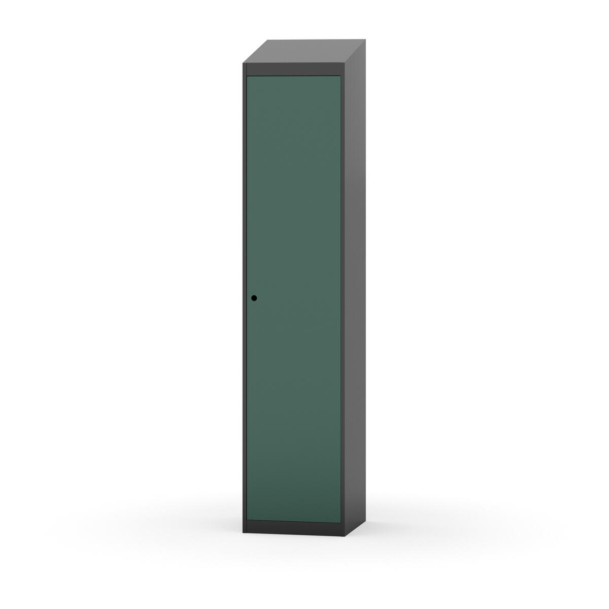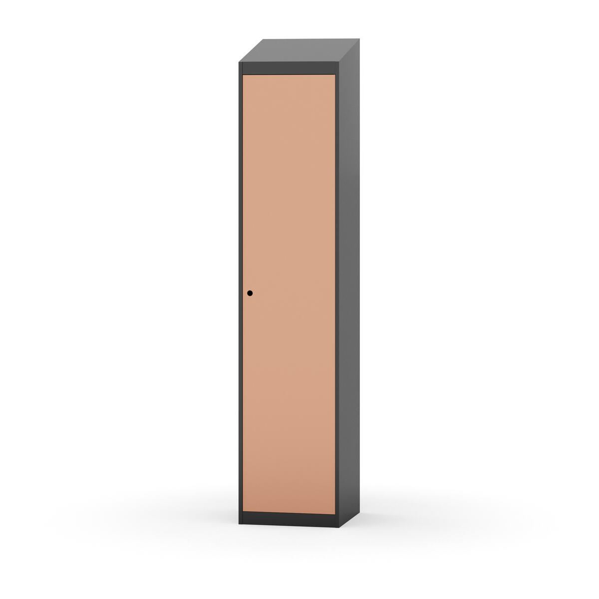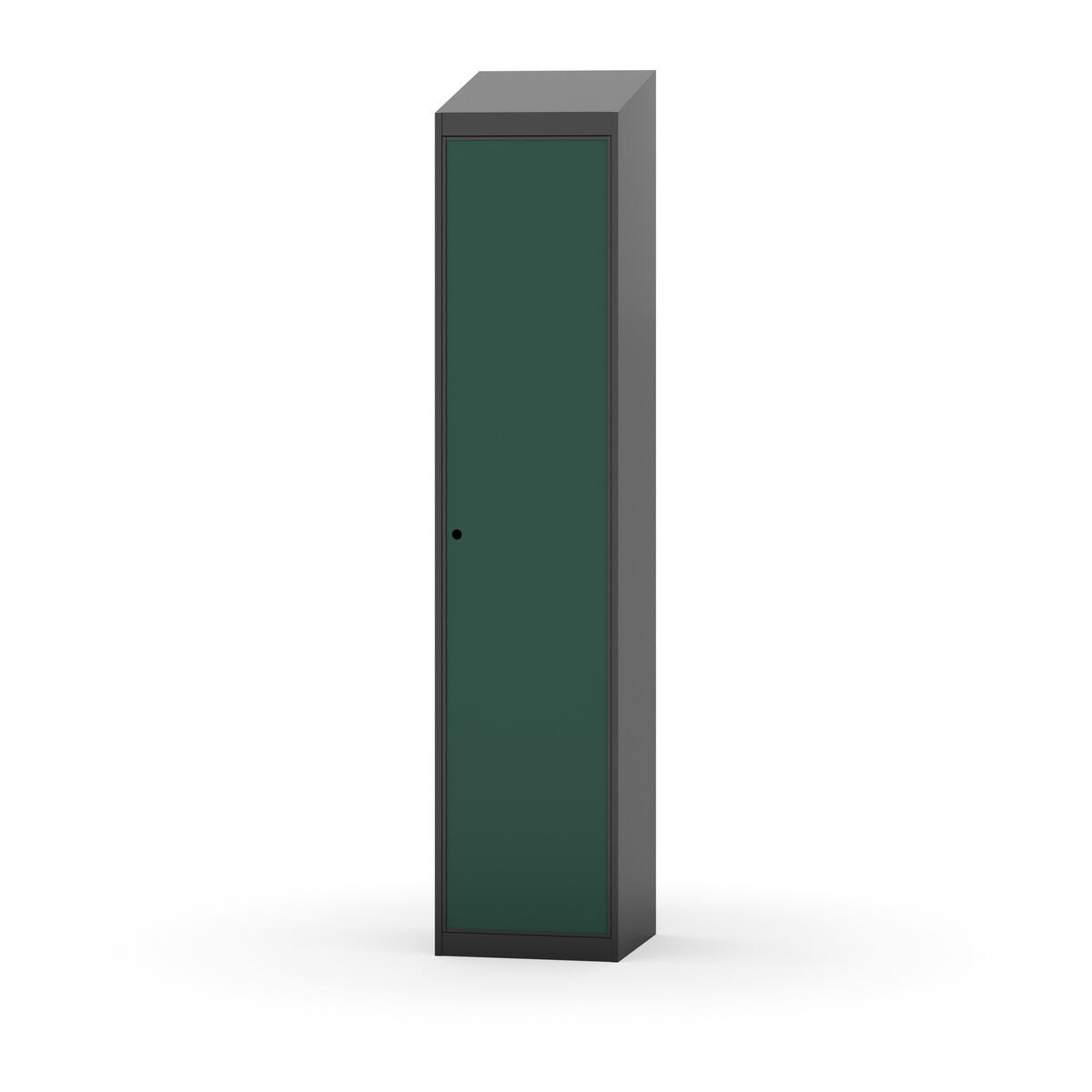 Täysin hitsattu runko. Valittavana pelti- tai korkeapainelaminaattipintainen ovi. Peltiovessa on pysäytin sekä teräsvahvike lukkoreiän ympärillä. Laminaattiovessa on teräskehys ja teräksinen pysäytin. Ovet aukeavat 90°. Sisällä on hylly ja vaatetanko kahdella kaksoiskoukulla. Kaapissa on tasainen pohja ilman kynnystä. Ilmastointireiät pohjassa ja katossa. Lukot ja sokkeli/jalusta tilataan erikseen omilla tuotenumeroillaan. Lukot tulevat asennettuna, sokkeli/jalusta asennetaan toimituksen yhteydessä.