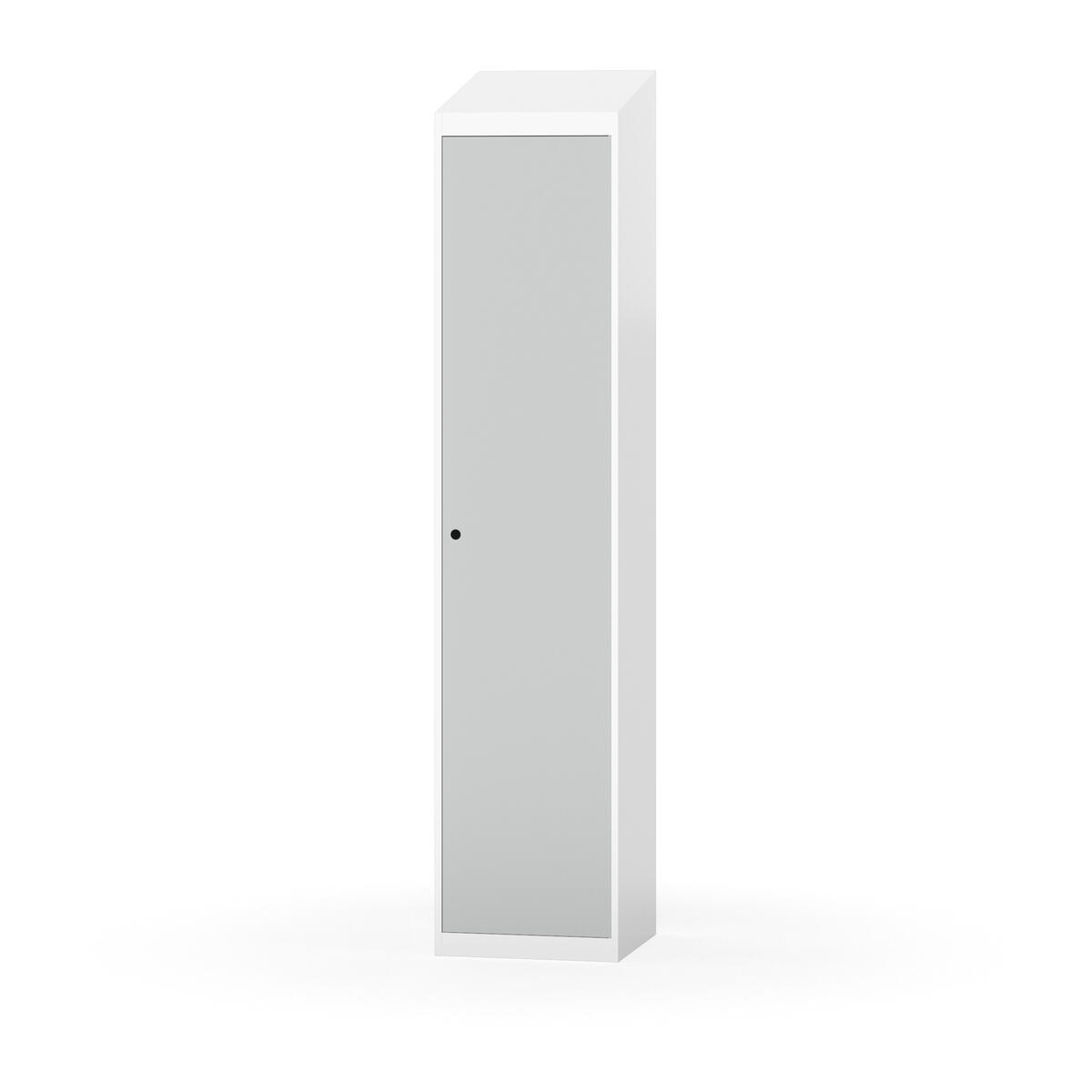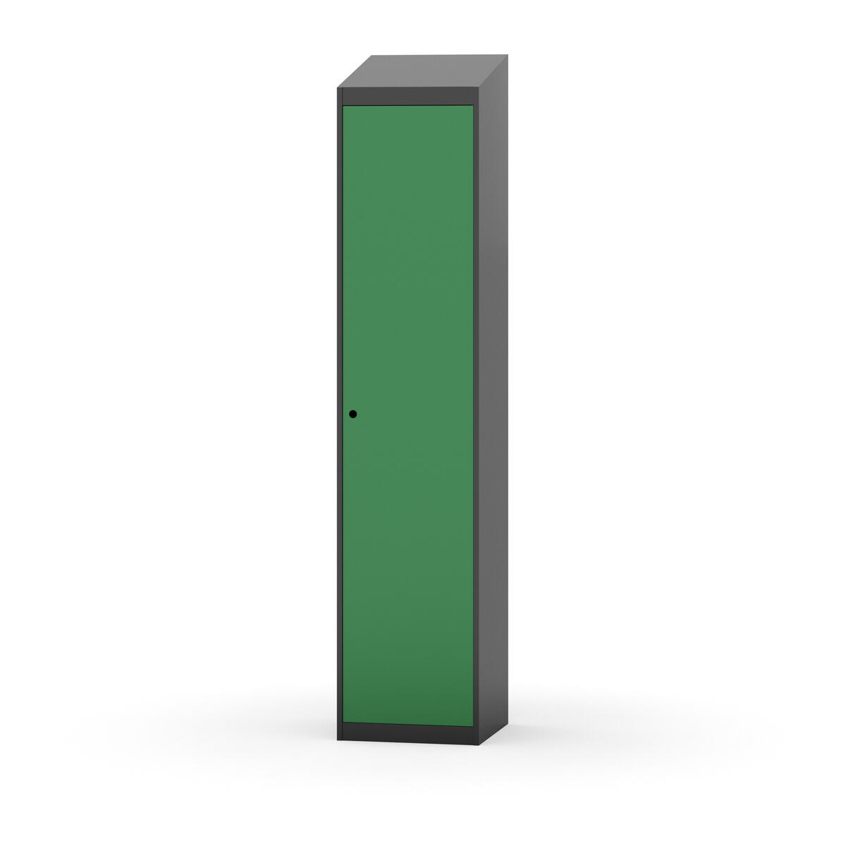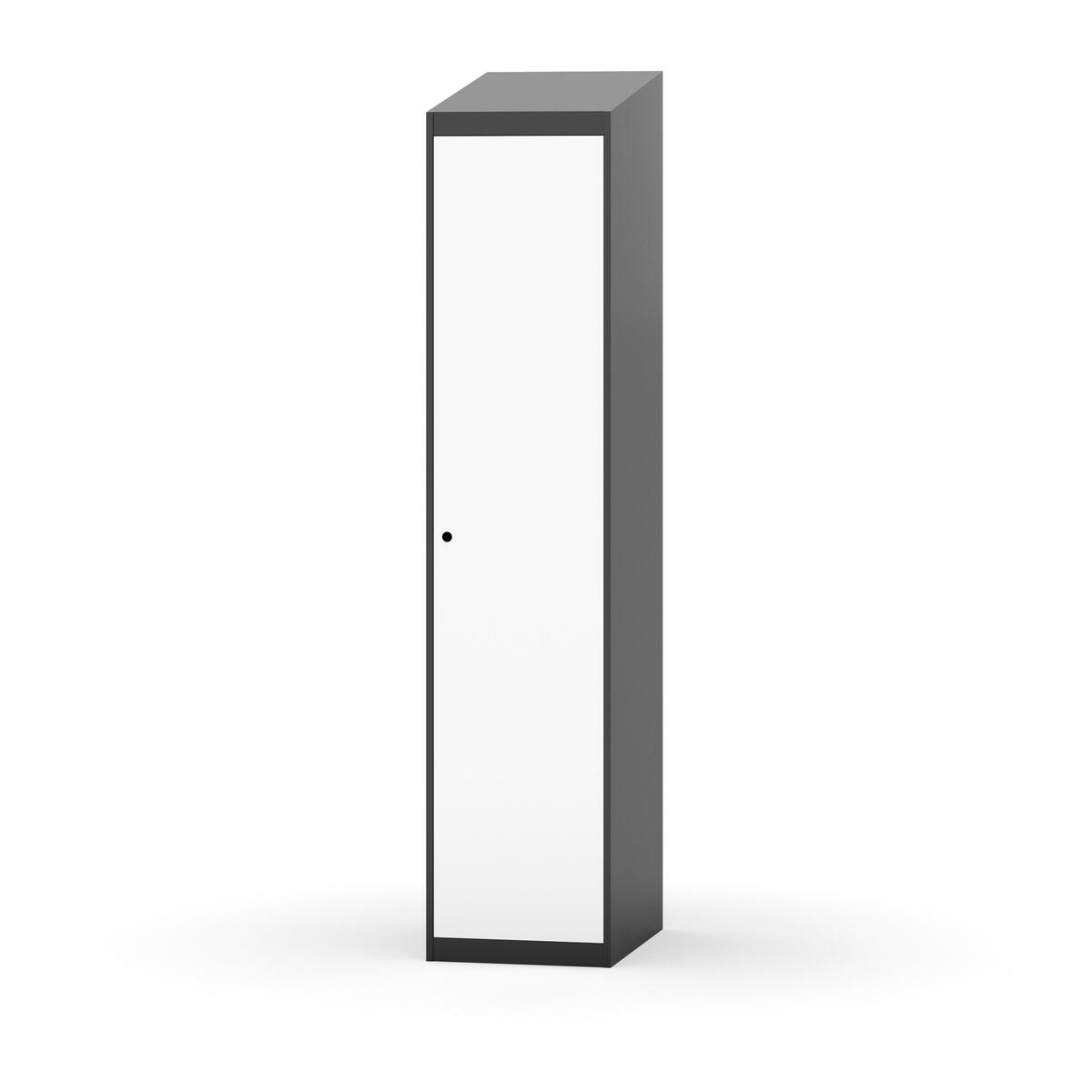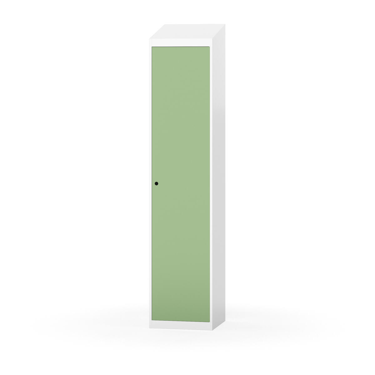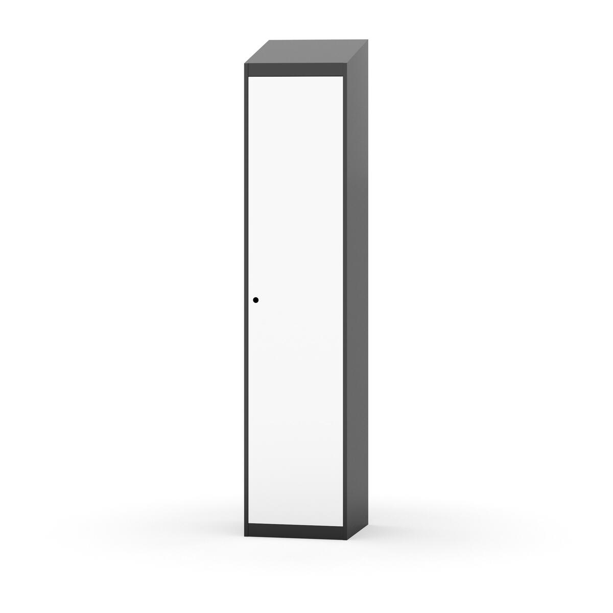 Täysin hitsattu runko. Valittavana pelti- tai korkeapainelaminaattipintainen ovi. Peltiovessa on pysäytin sekä teräsvahvike lukkoreiän ympärillä. Laminaattiovessa on teräskehys ja teräksinen pysäytin. Ovet aukeavat 90°. Sisällä on hylly ja vaatetanko kahdella kaksoiskoukulla. Kaapissa on tasainen pohja ilman kynnystä. Ilmastointireiät pohjassa ja katossa. Lukot ja sokkeli/jalusta tilataan erikseen omilla tuotenumeroillaan. Lukot tulevat asennettuna, sokkeli/jalusta asennetaan toimituksen yhteydessä.