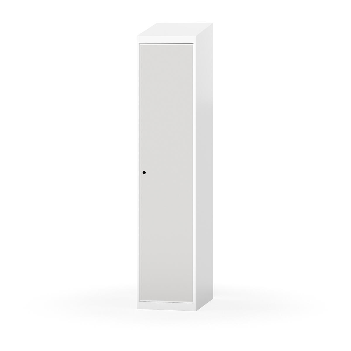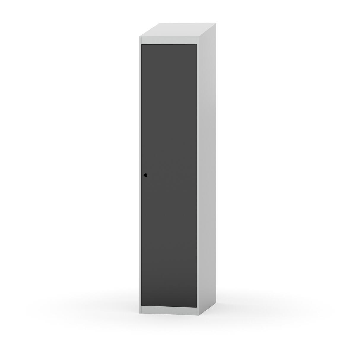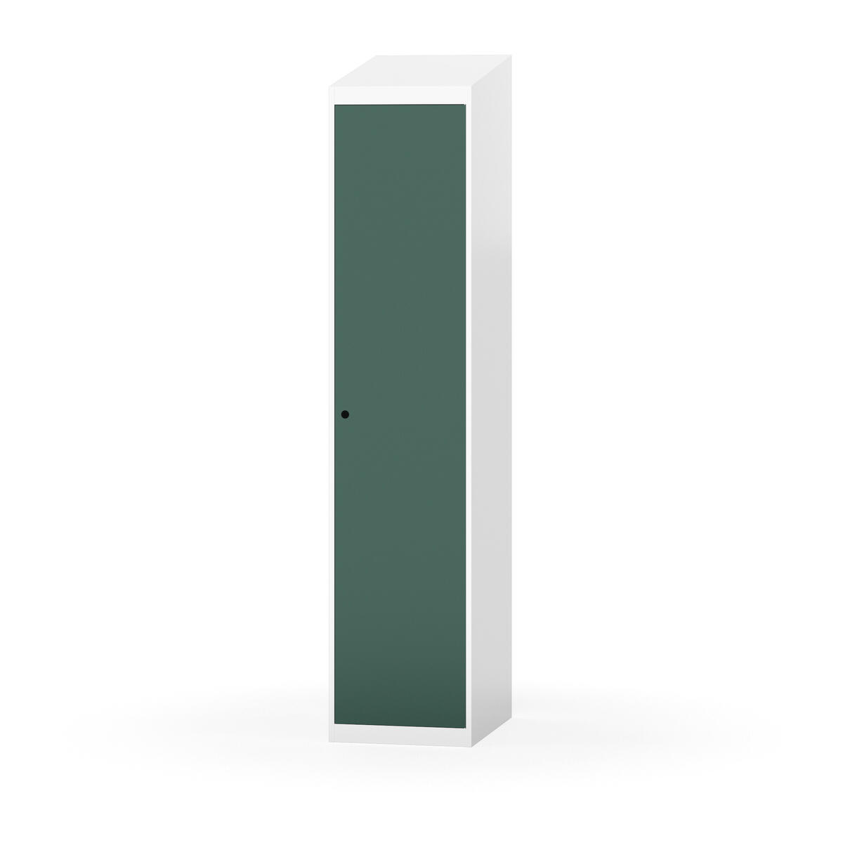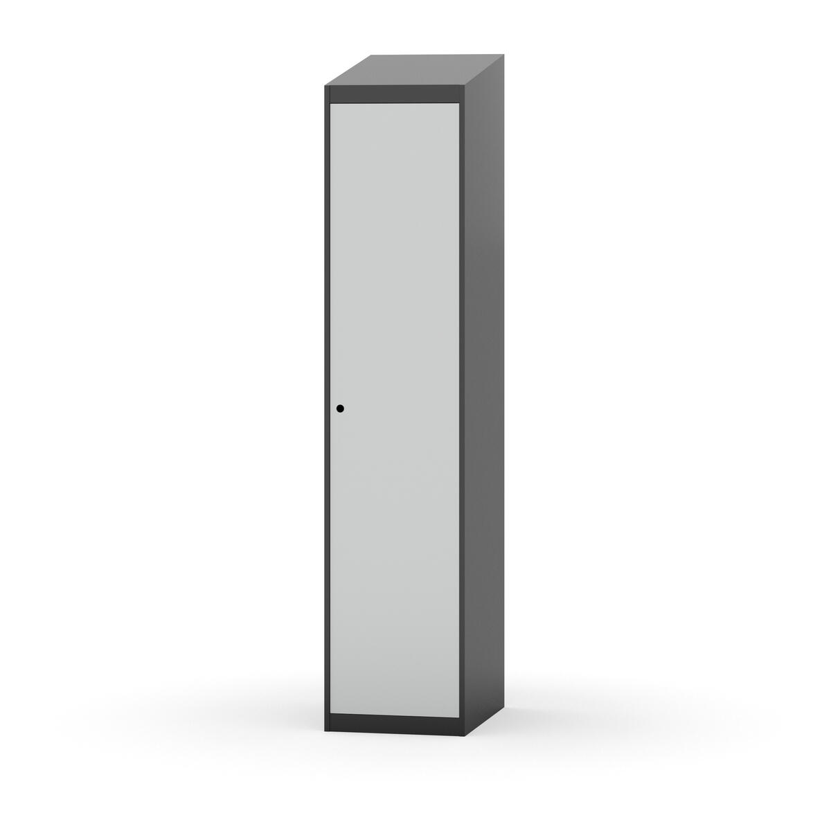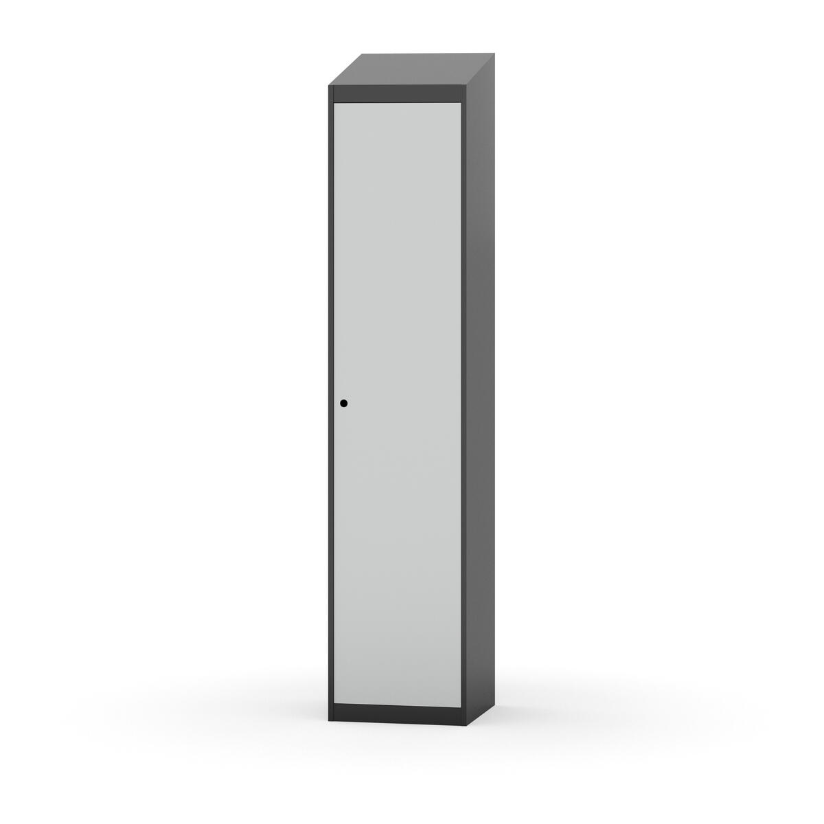 Täysin hitsattu runko. Valittavana pelti- tai korkeapainelaminaattipintainen ovi. Peltiovessa on pysäytin sekä teräsvahvike lukkoreiän ympärillä. Laminaattiovessa on teräskehys ja teräksinen pysäytin. Ovet aukeavat 90°. Sisällä on hylly ja vaatetanko kahdella kaksoiskoukulla. Kaapissa on tasainen pohja ilman kynnystä. Ilmastointireiät pohjassa ja katossa. Lukot ja sokkeli/jalusta tilataan erikseen omilla tuotenumeroillaan. Lukot tulevat asennettuna, sokkeli/jalusta asennetaan toimituksen yhteydessä.