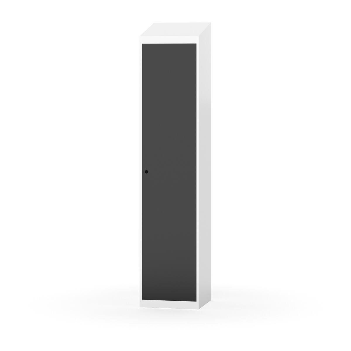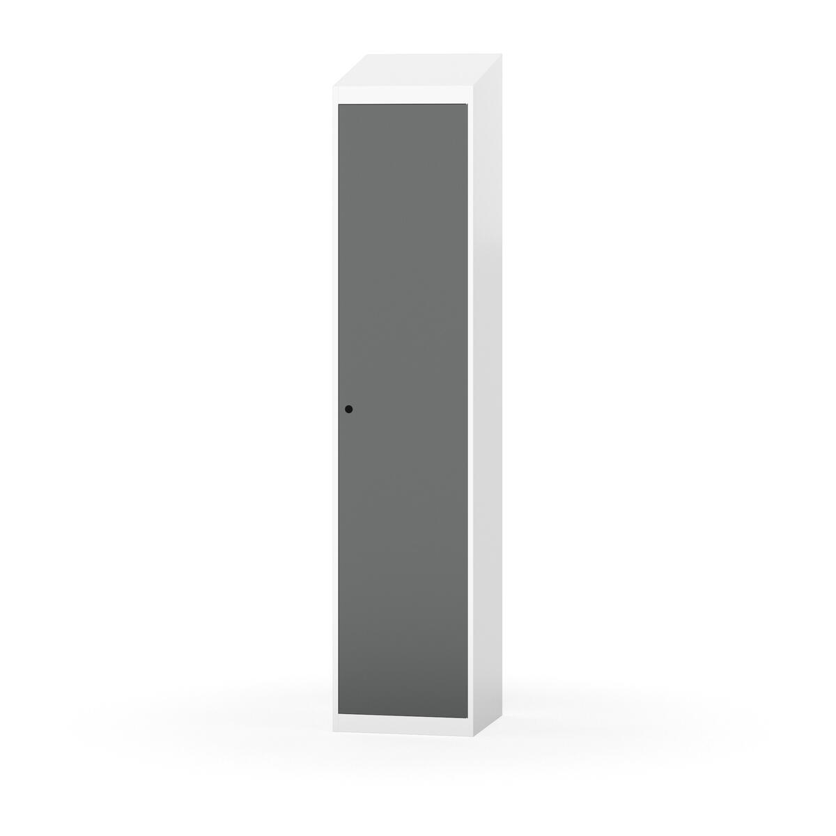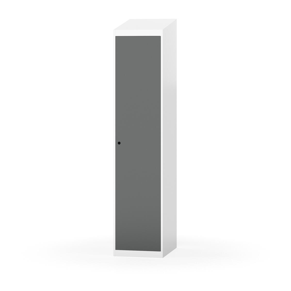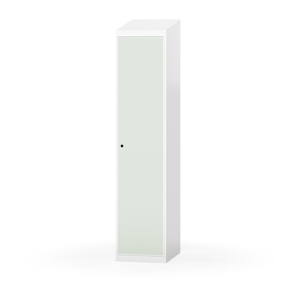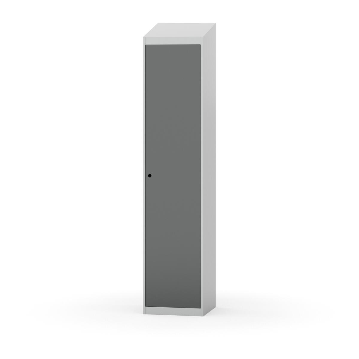 Täysin hitsattu runko. Valittavana pelti- tai korkeapainelaminaattipintainen ovi. Peltiovessa on pysäytin sekä teräsvahvike lukkoreiän ympärillä. Laminaattiovessa on teräskehys ja teräksinen pysäytin. Ovet aukeavat 90°. Sisällä on hylly ja vaatetanko kahdella kaksoiskoukulla. Kaapissa on tasainen pohja ilman kynnystä. Ilmastointireiät pohjassa ja katossa. Lukot ja sokkeli/jalusta tilataan erikseen omilla tuotenumeroillaan. Lukot tulevat asennettuna, sokkeli/jalusta asennetaan toimituksen yhteydessä.