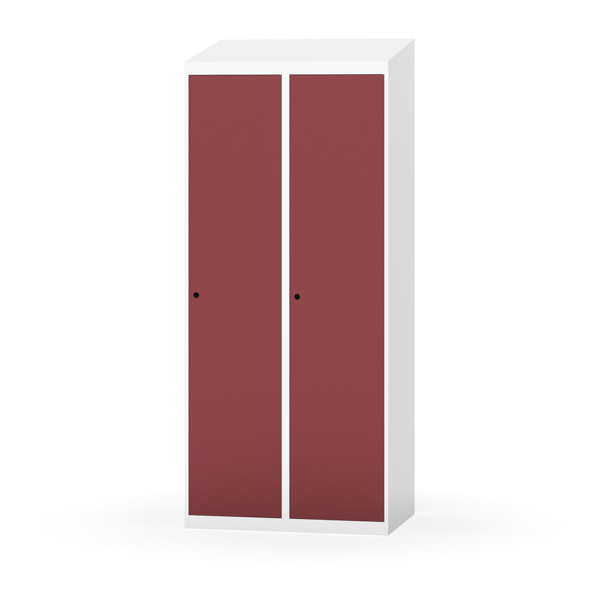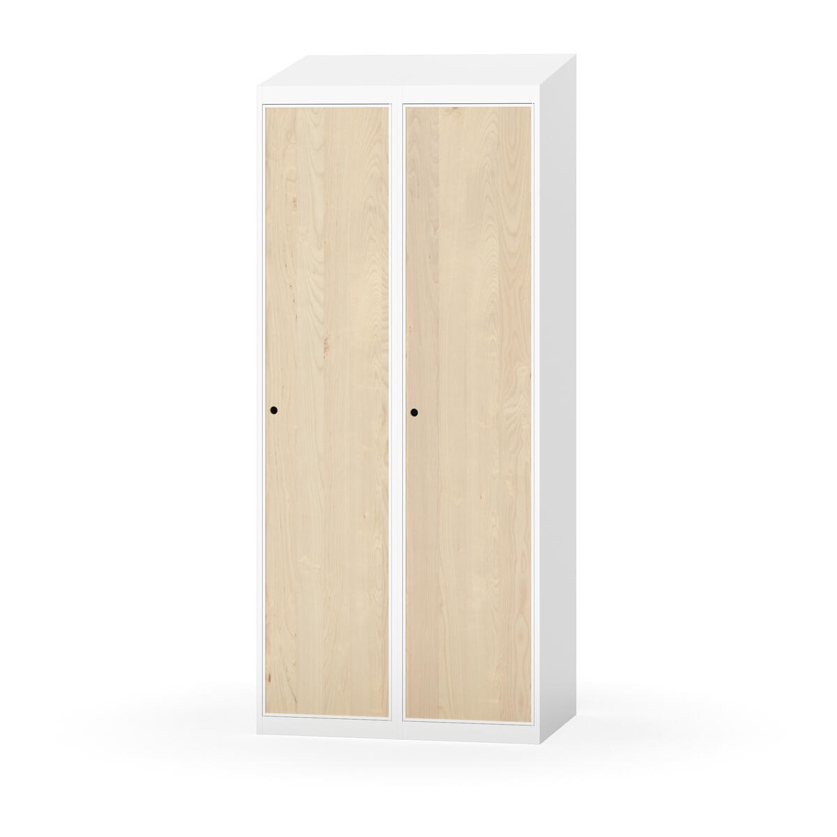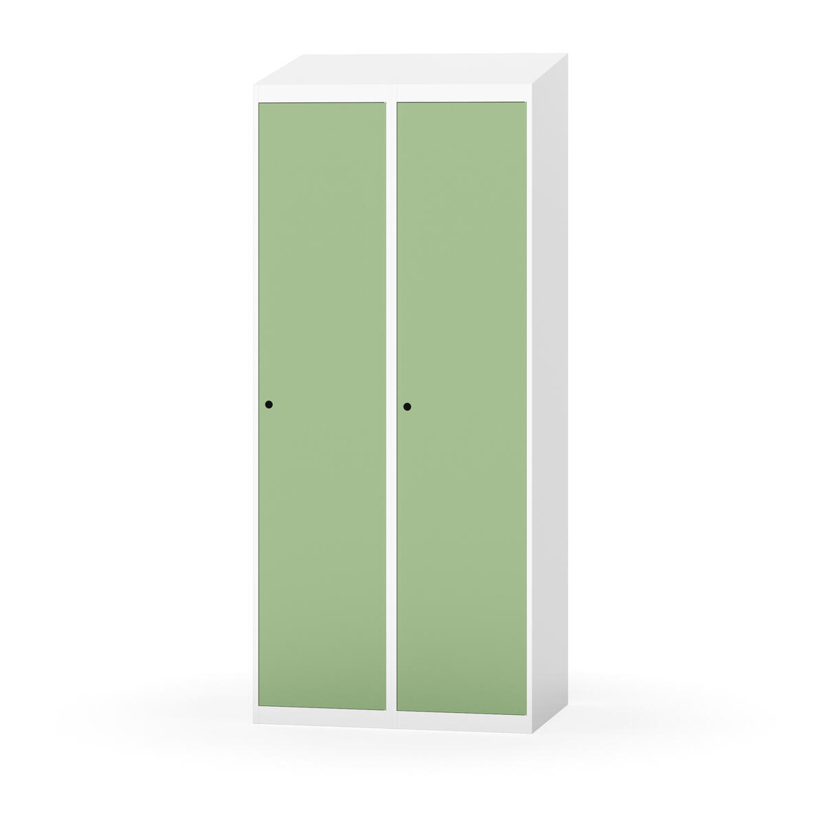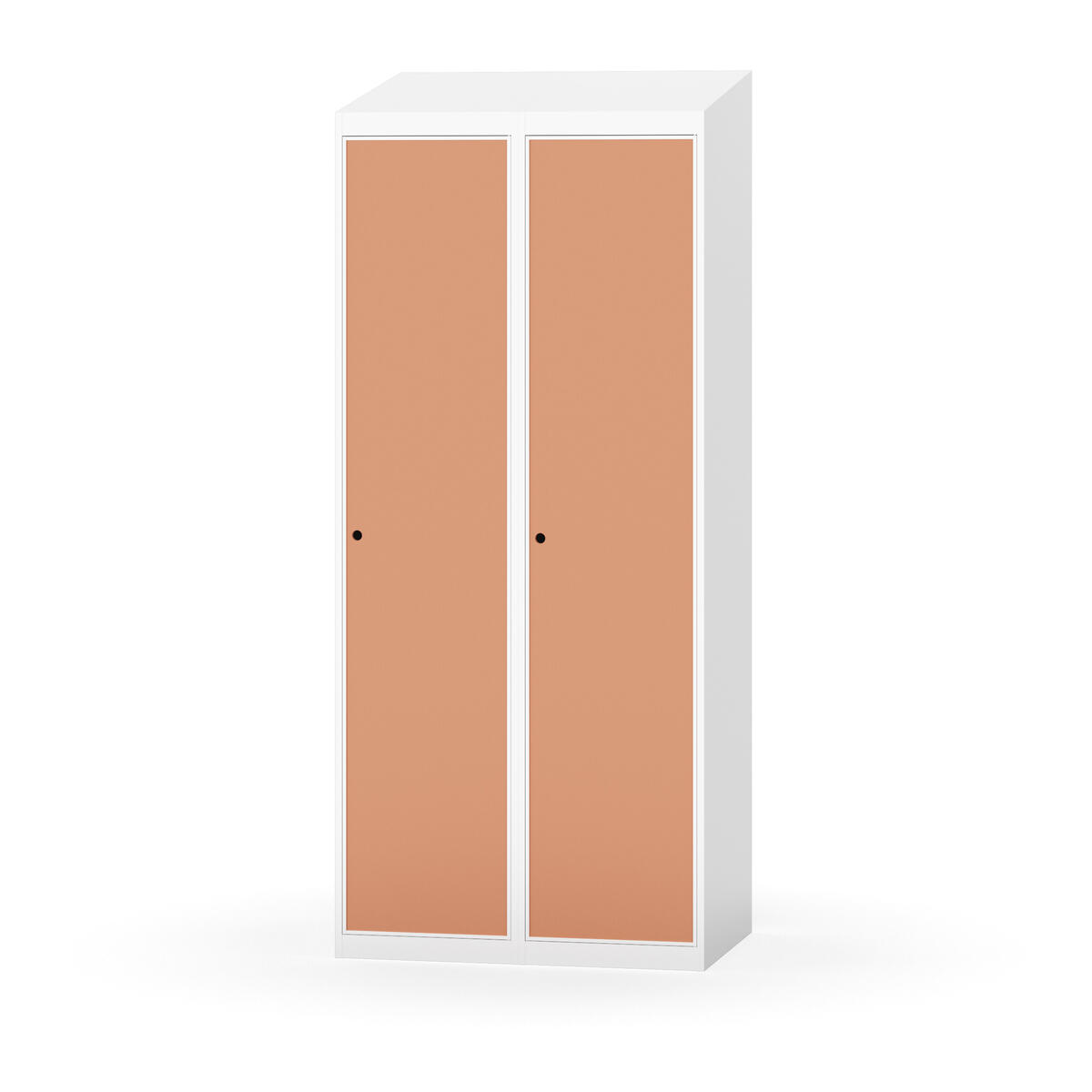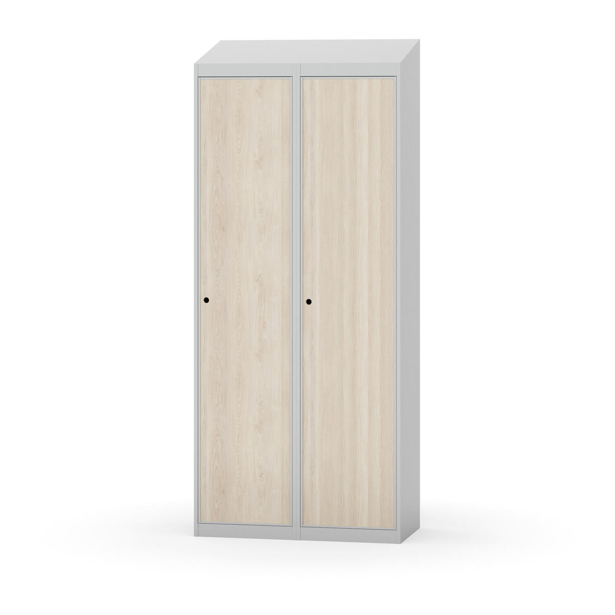 Täysin hitsattu runko. Valittavana pelti- tai korkeapainelaminaattipintainen ovi. Peltiovessa on pysäytin sekä teräsvahvike lukkoreiän ympärillä. Laminaattiovessa on teräskehys ja teräksinen pysäytin. Ovet aukeavat 90°. Sisällä on hylly ja vaatetanko kahdella kaksoiskoukulla. Kaapissa on tasainen pohja ilman kynnystä. Ilmastointireiät pohjassa ja katossa. Lukot ja sokkeli/jalusta tilataan erikseen omilla tuotenumeroillaan. Lukot tulevat asennettuna, sokkeli/jalusta asennetaan toimituksen yhteydessä.