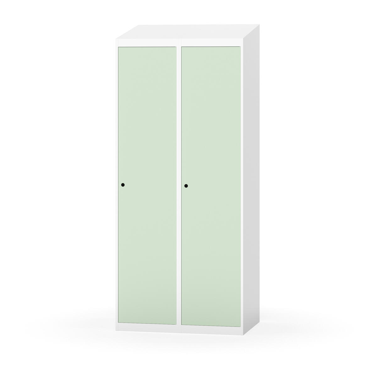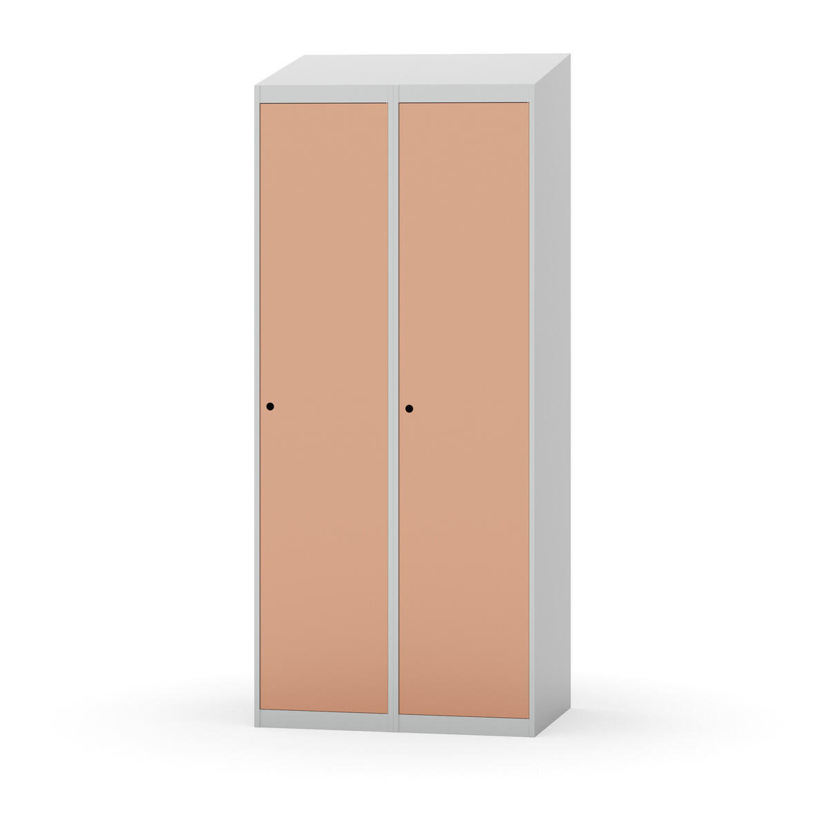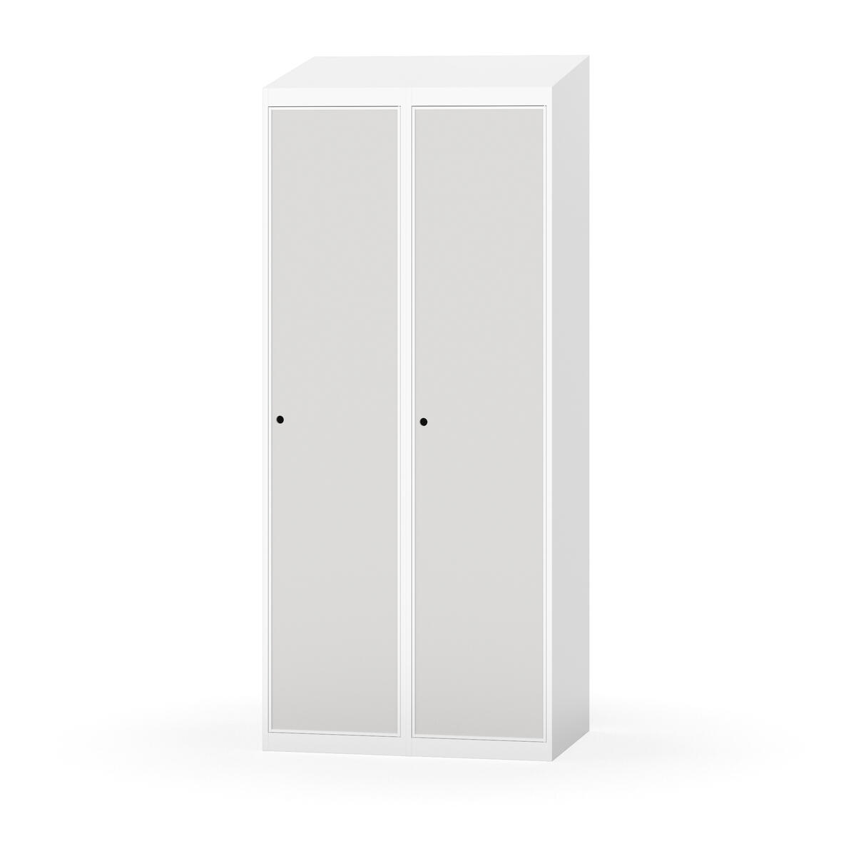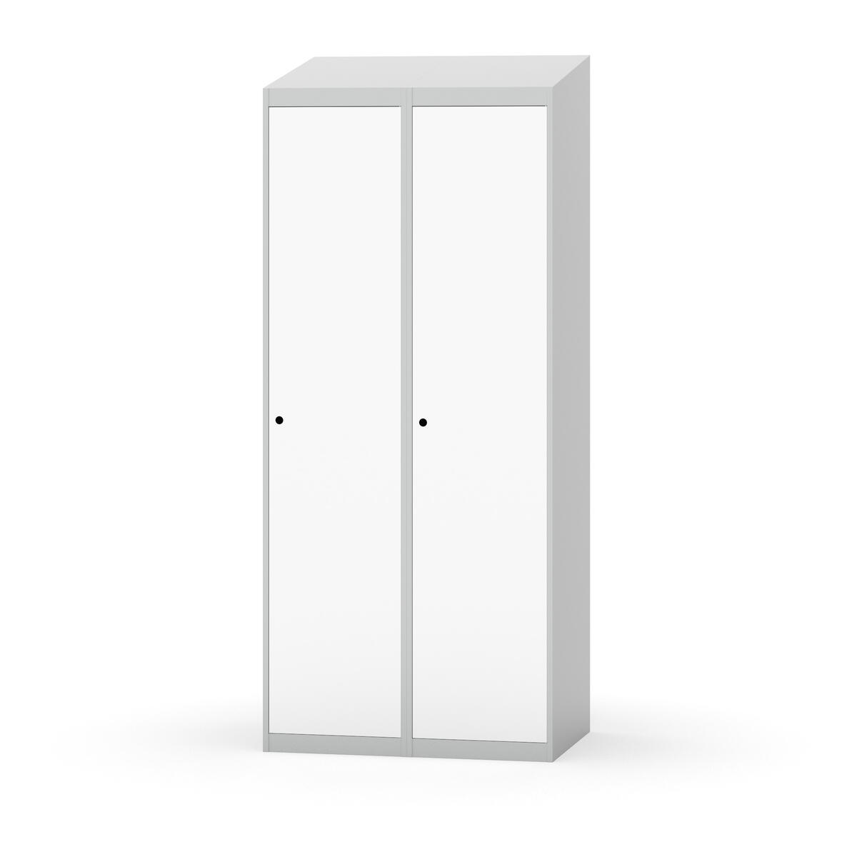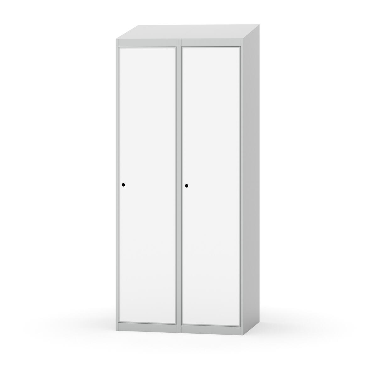 Täysin hitsattu runko. Valittavana pelti- tai korkeapainelaminaattipintainen ovi. Peltiovessa on pysäytin sekä teräsvahvike lukkoreiän ympärillä. Laminaattiovessa on teräskehys ja teräksinen pysäytin. Ovet aukeavat 90°. Sisällä on hylly ja vaatetanko kahdella kaksoiskoukulla. Kaapissa on tasainen pohja ilman kynnystä. Ilmastointireiät pohjassa ja katossa. Lukot ja sokkeli/jalusta tilataan erikseen omilla tuotenumeroillaan. Lukot tulevat asennettuna, sokkeli/jalusta asennetaan toimituksen yhteydessä.