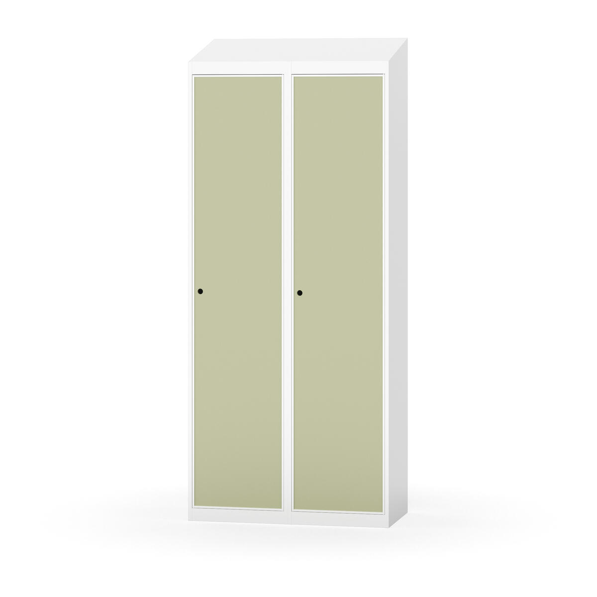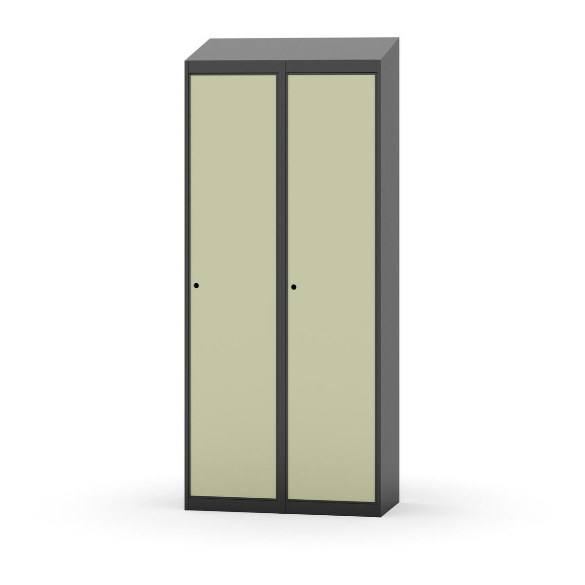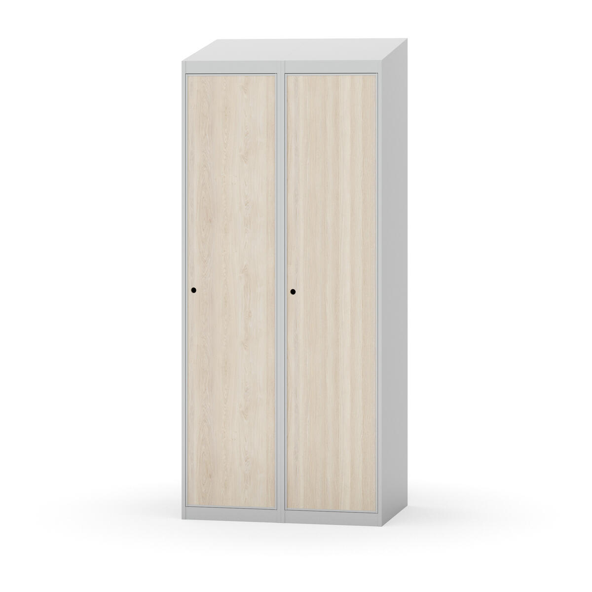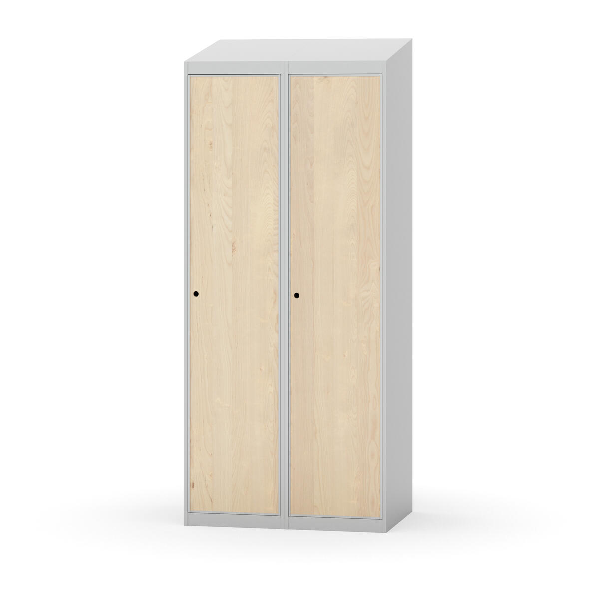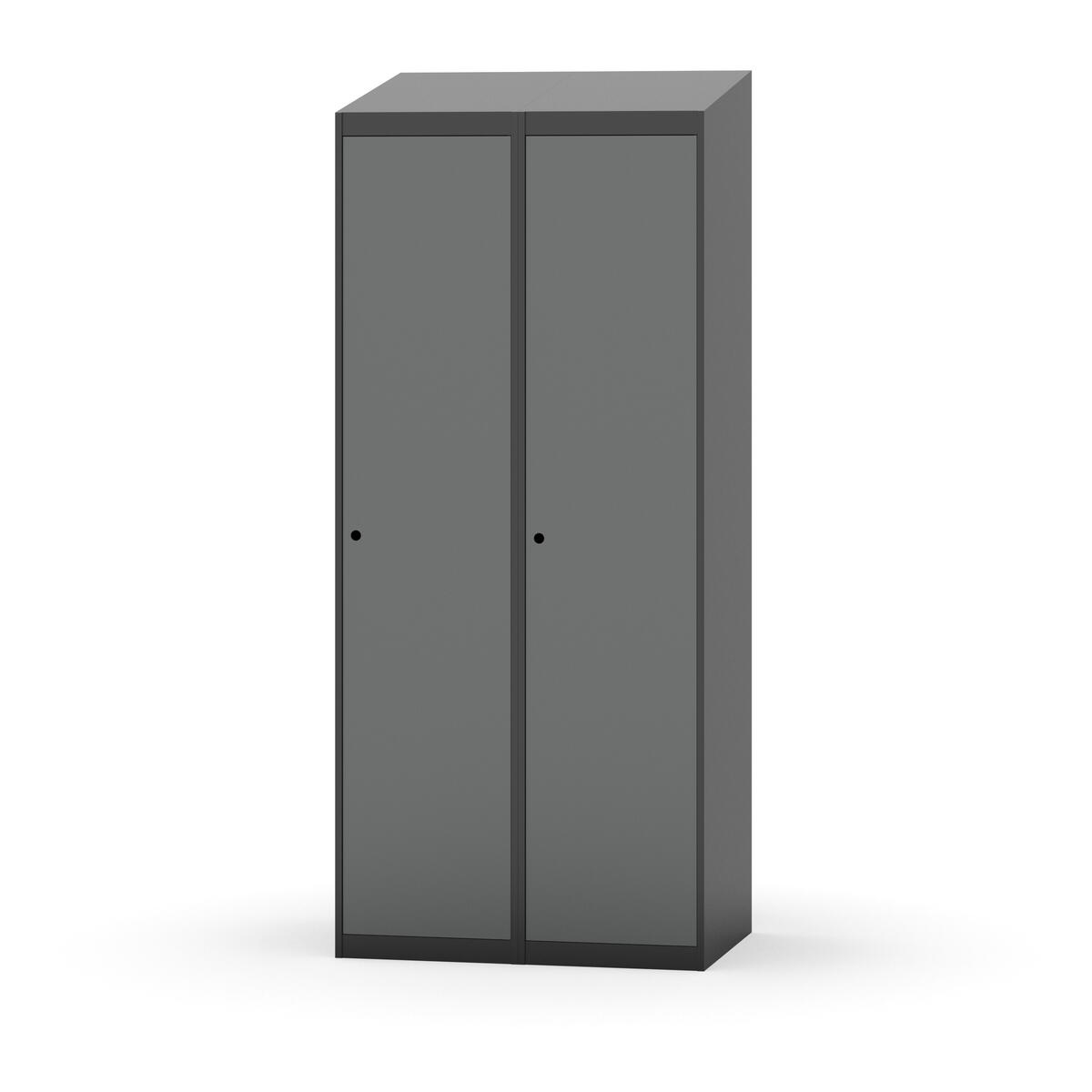 Täysin hitsattu runko. Valittavana pelti- tai korkeapainelaminaattipintainen ovi. Peltiovessa on pysäytin sekä teräsvahvike lukkoreiän ympärillä. Laminaattiovessa on teräskehys ja teräksinen pysäytin. Ovet aukeavat 90°. Sisällä on hylly ja vaatetanko kahdella kaksoiskoukulla. Kaapissa on tasainen pohja ilman kynnystä. Ilmastointireiät pohjassa ja katossa. Lukot ja sokkeli/jalusta tilataan erikseen omilla tuotenumeroillaan. Lukot tulevat asennettuna, sokkeli/jalusta asennetaan toimituksen yhteydessä.