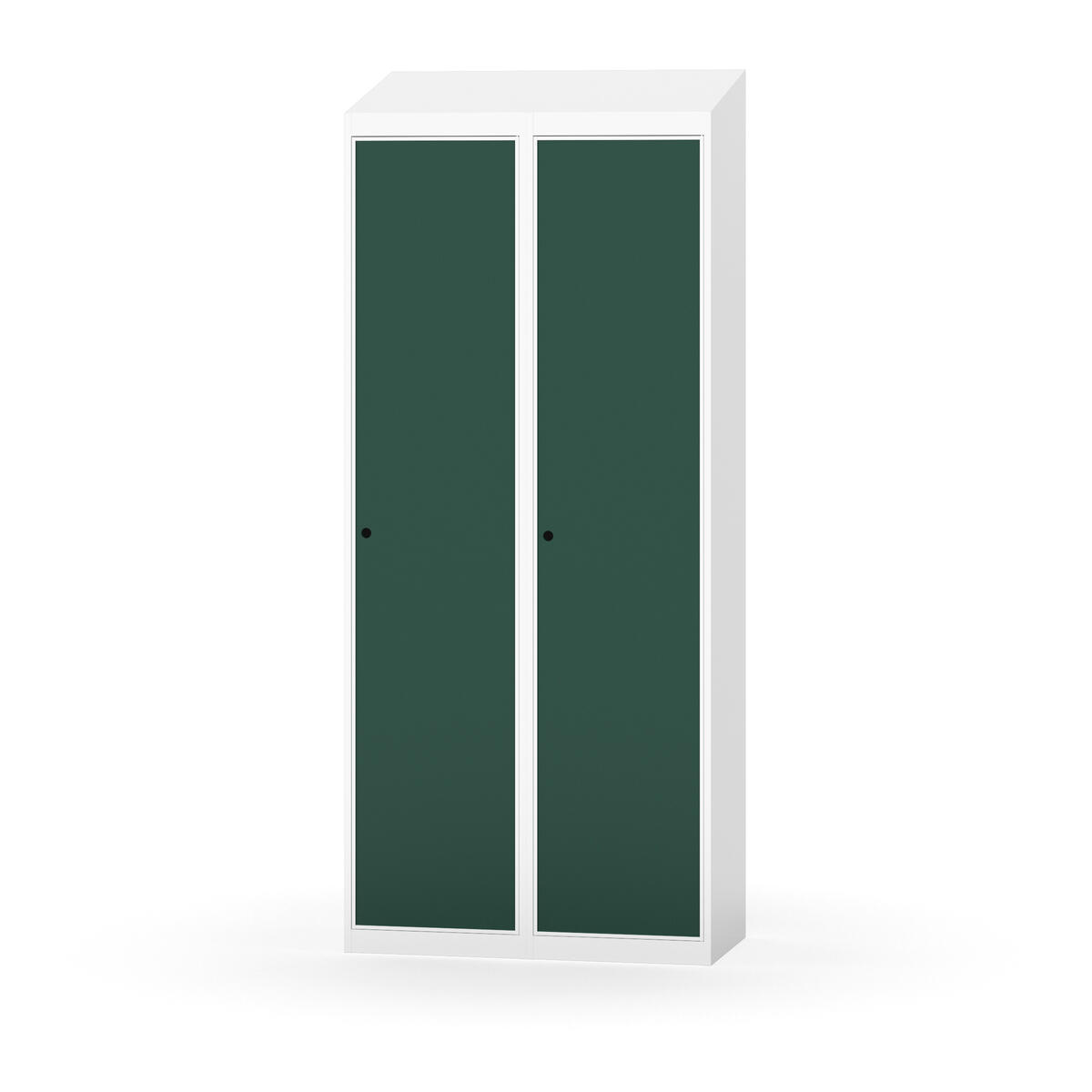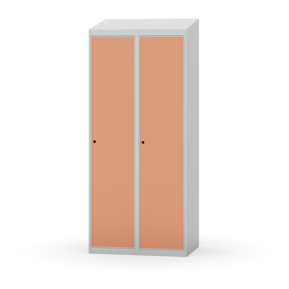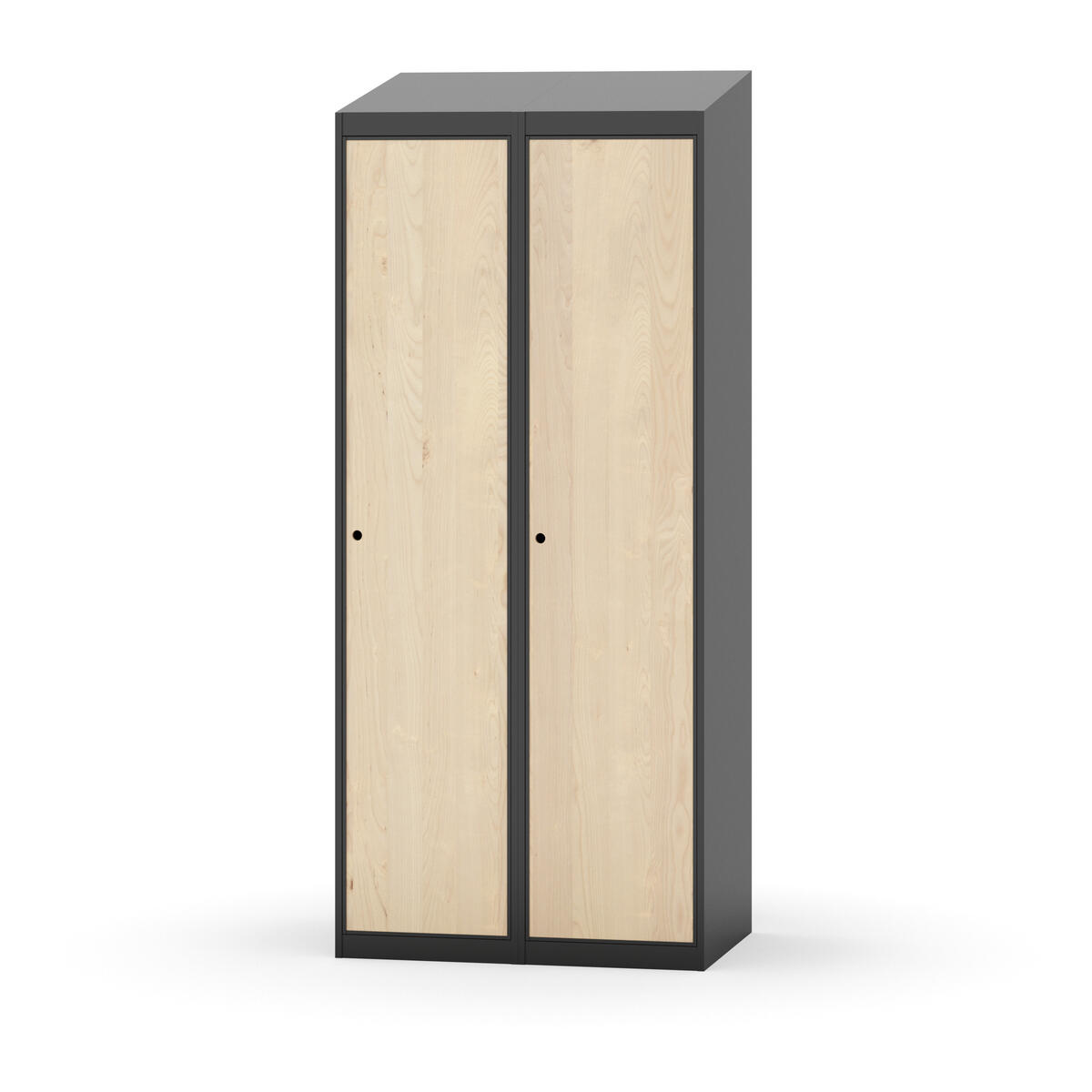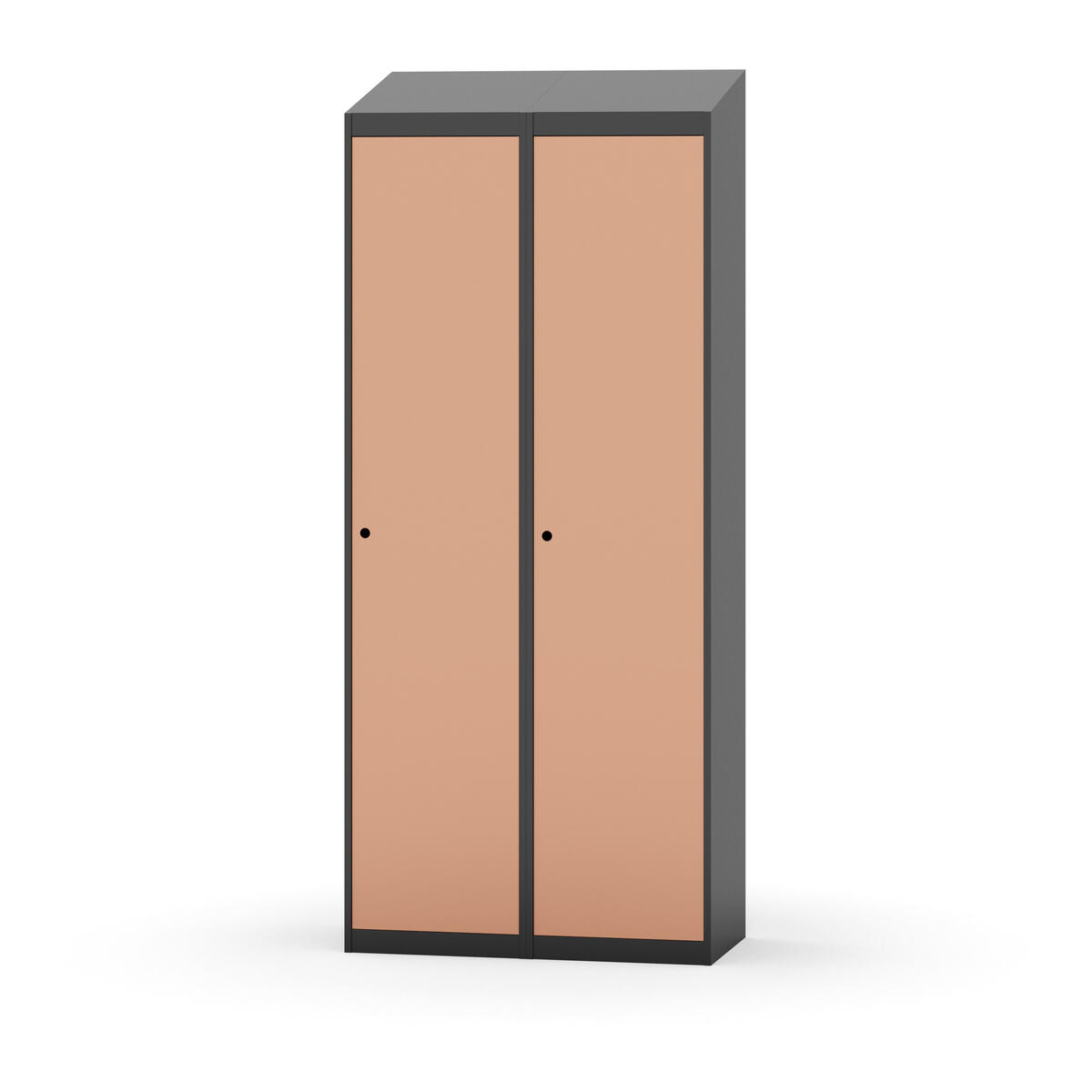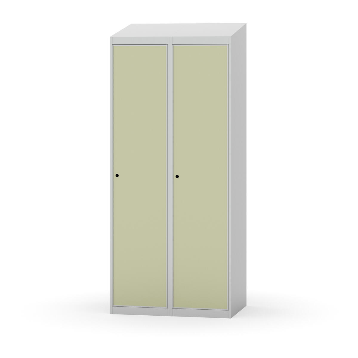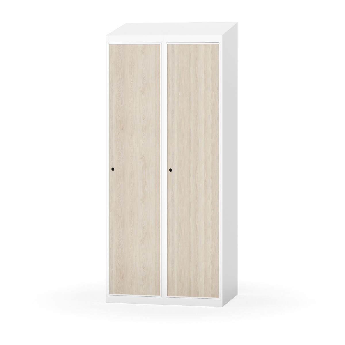 Täysin hitsattu runko. Valittavana pelti- tai korkeapainelaminaattipintainen ovi. Peltiovessa on pysäytin sekä teräsvahvike lukkoreiän ympärillä. Laminaattiovessa on teräskehys ja teräksinen pysäytin. Ovet aukeavat 90°. Sisällä on hylly ja vaatetanko kahdella kaksoiskoukulla. Kaapissa on tasainen pohja ilman kynnystä. Ilmastointireiät pohjassa ja katossa. Lukot ja sokkeli/jalusta tilataan erikseen omilla tuotenumeroillaan. Lukot tulevat asennettuna, sokkeli/jalusta asennetaan toimituksen yhteydessä.