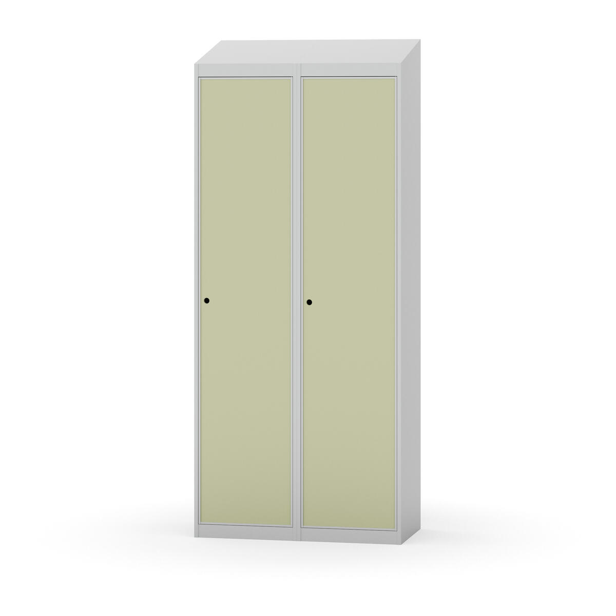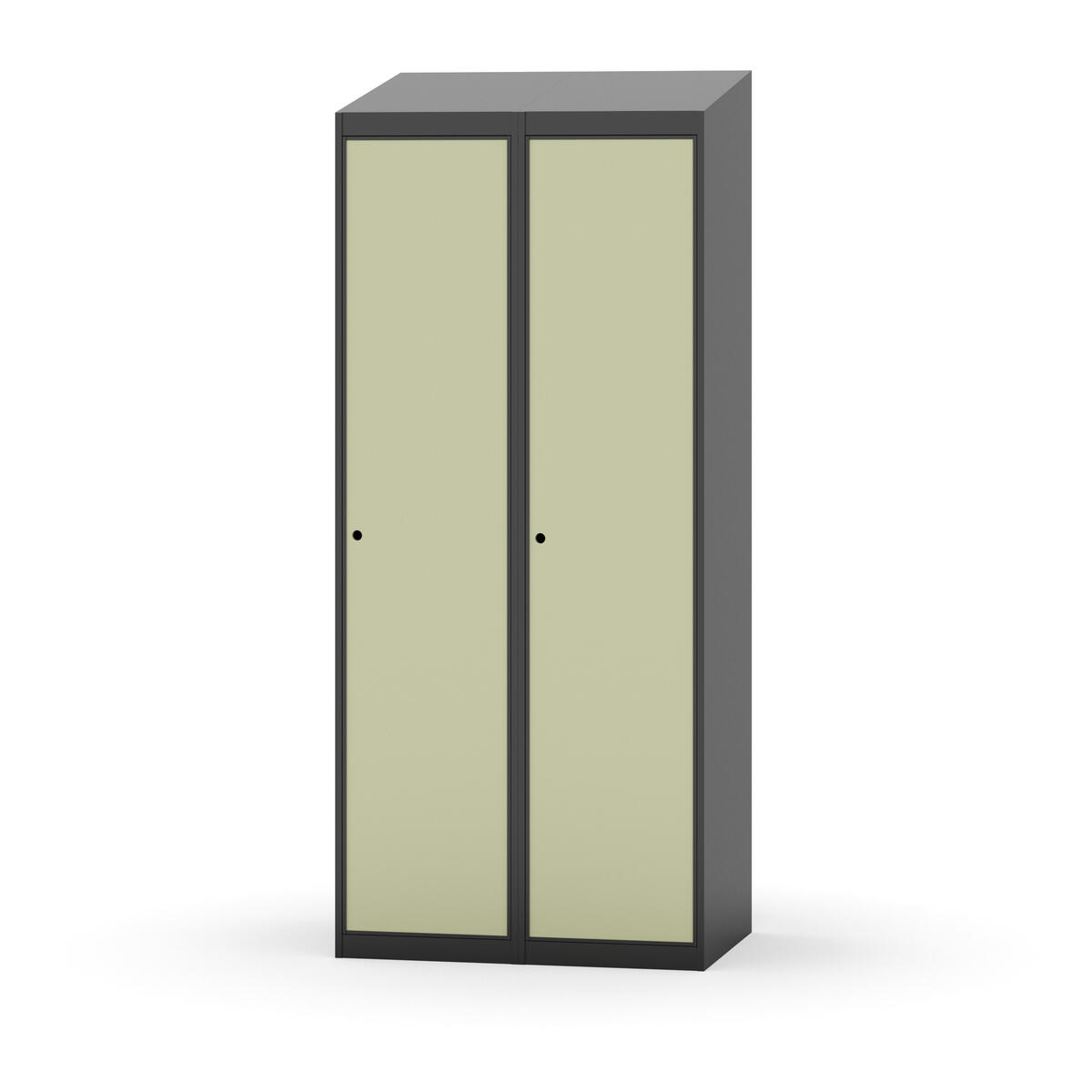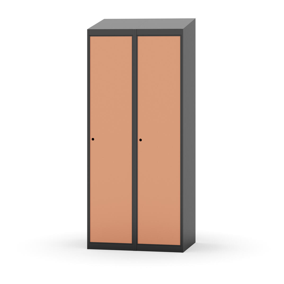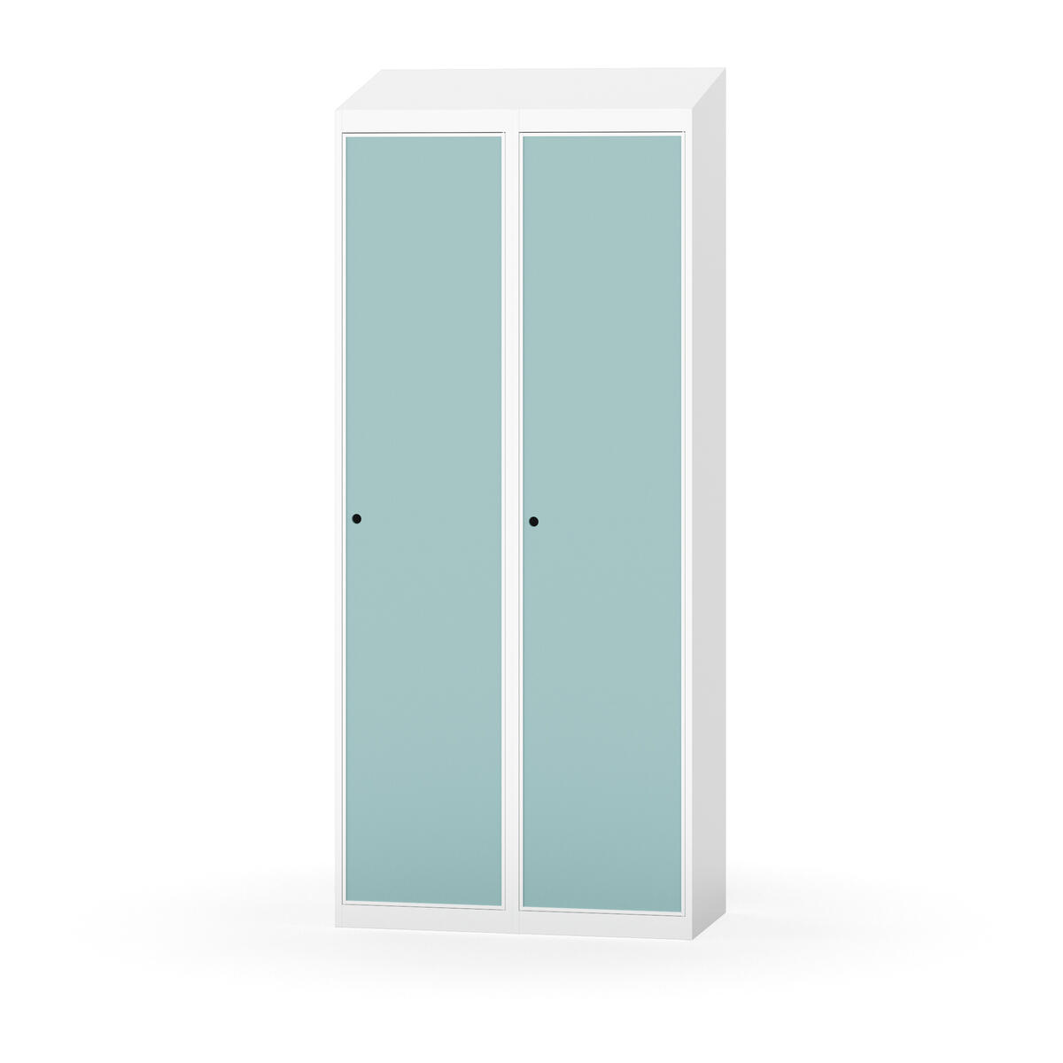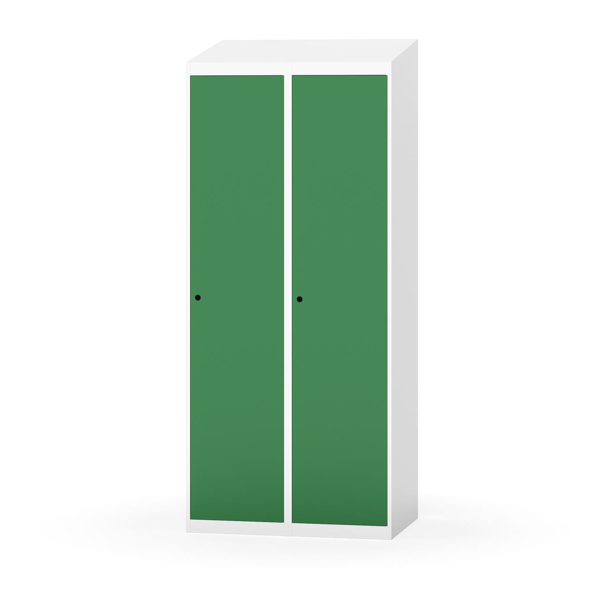Täysin hitsattu runko. Valittavana pelti- tai korkeapainelaminaattipintainen ovi. Peltiovessa on pysäytin sekä teräsvahvike lukkoreiän ympärillä. Laminaattiovessa on teräskehys ja teräksinen pysäytin. Ovet aukeavat 90°. Sisällä on hylly ja vaatetanko kahdella kaksoiskoukulla. Kaapissa on tasainen pohja ilman kynnystä. Ilmastointireiät pohjassa ja katossa. Lukot ja sokkeli/jalusta tilataan erikseen omilla tuotenumeroillaan. Lukot tulevat asennettuna, sokkeli/jalusta asennetaan toimituksen yhteydessä.