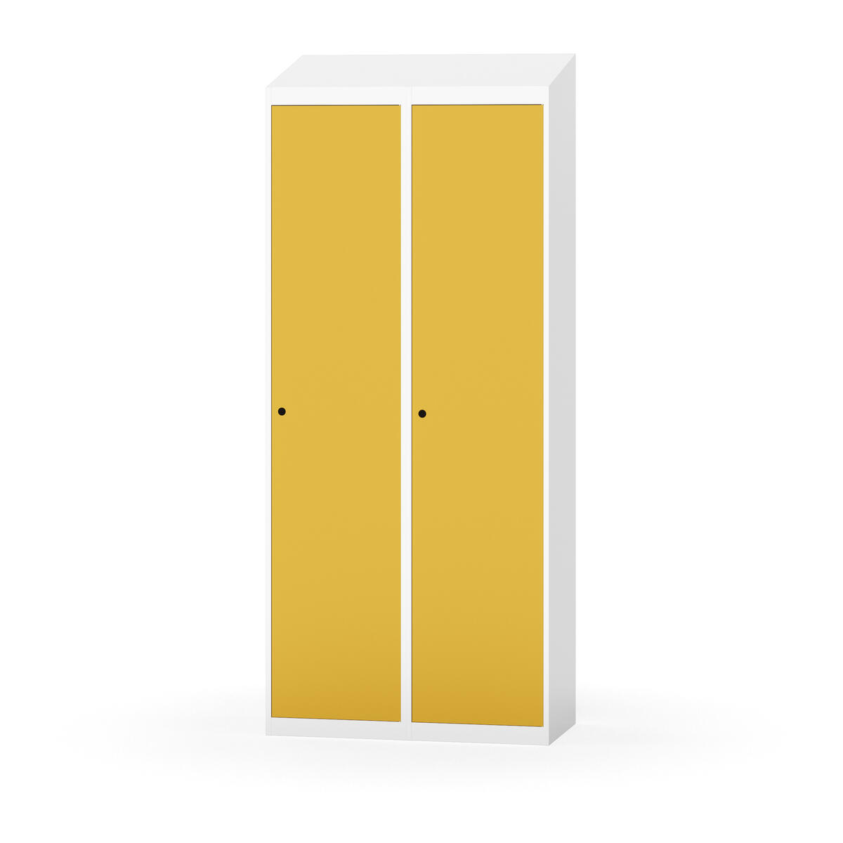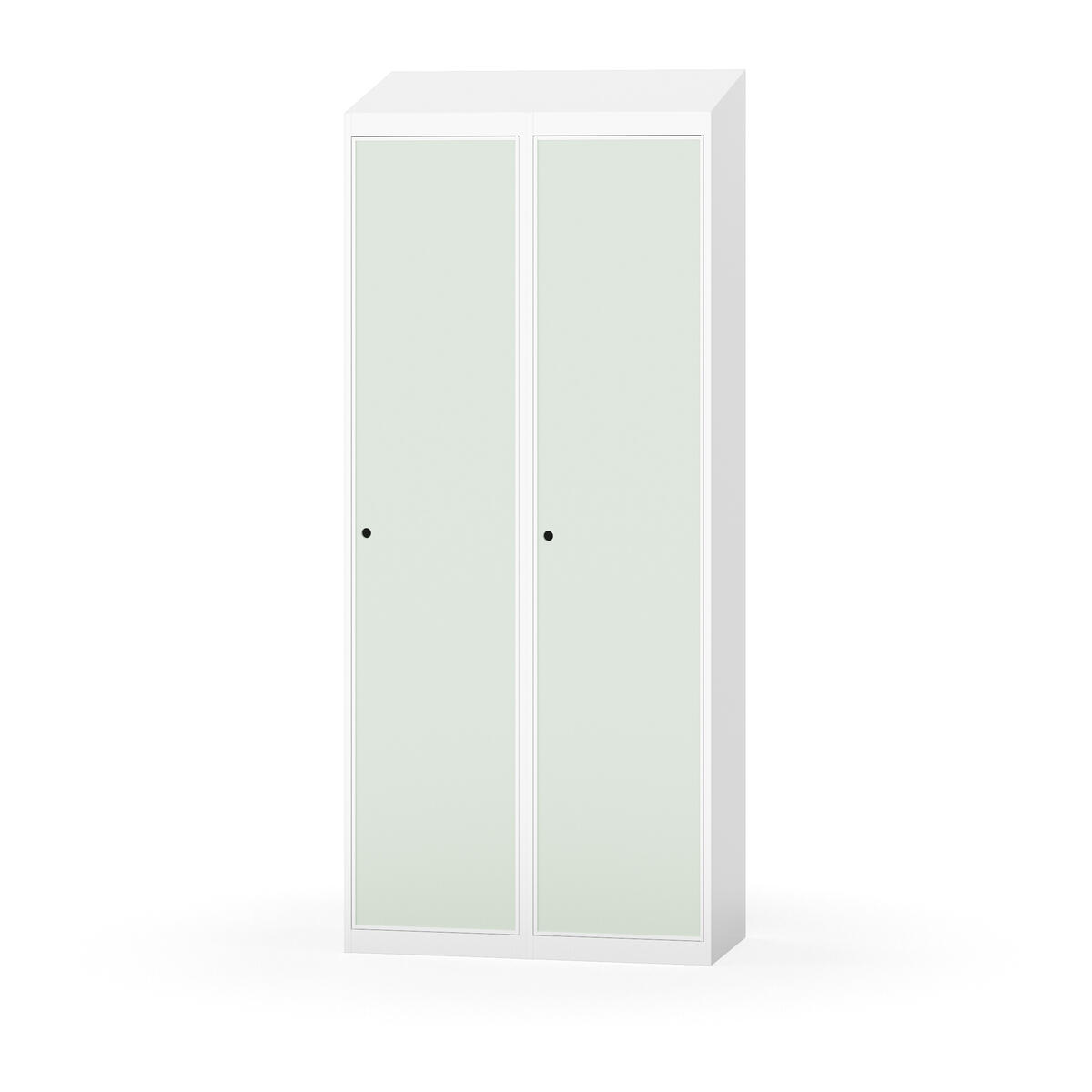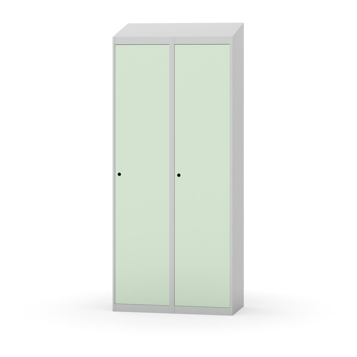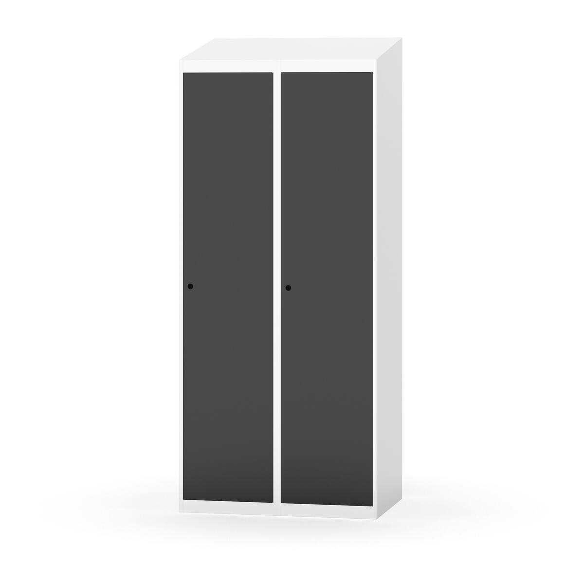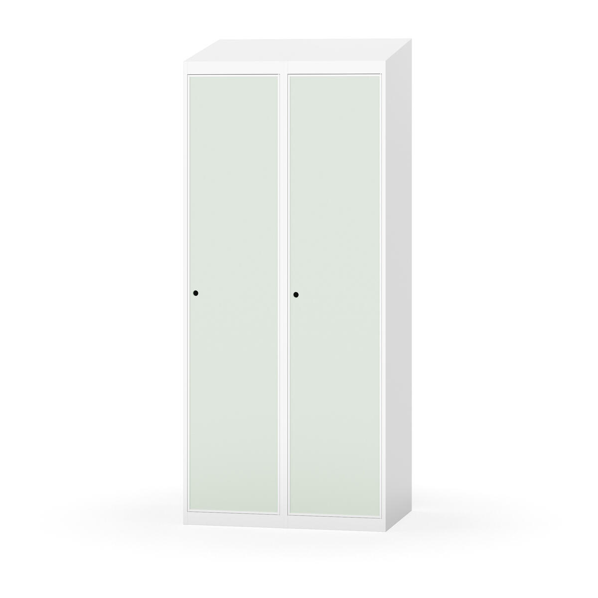 Täysin hitsattu runko. Valittavana pelti- tai korkeapainelaminaattipintainen ovi. Peltiovessa on pysäytin sekä teräsvahvike lukkoreiän ympärillä. Laminaattiovessa on teräskehys ja teräksinen pysäytin. Ovet aukeavat 90°. Sisällä on hylly ja vaatetanko kahdella kaksoiskoukulla. Kaapissa on tasainen pohja ilman kynnystä. Ilmastointireiät pohjassa ja katossa. Lukot ja sokkeli/jalusta tilataan erikseen omilla tuotenumeroillaan. Lukot tulevat asennettuna, sokkeli/jalusta asennetaan toimituksen yhteydessä.