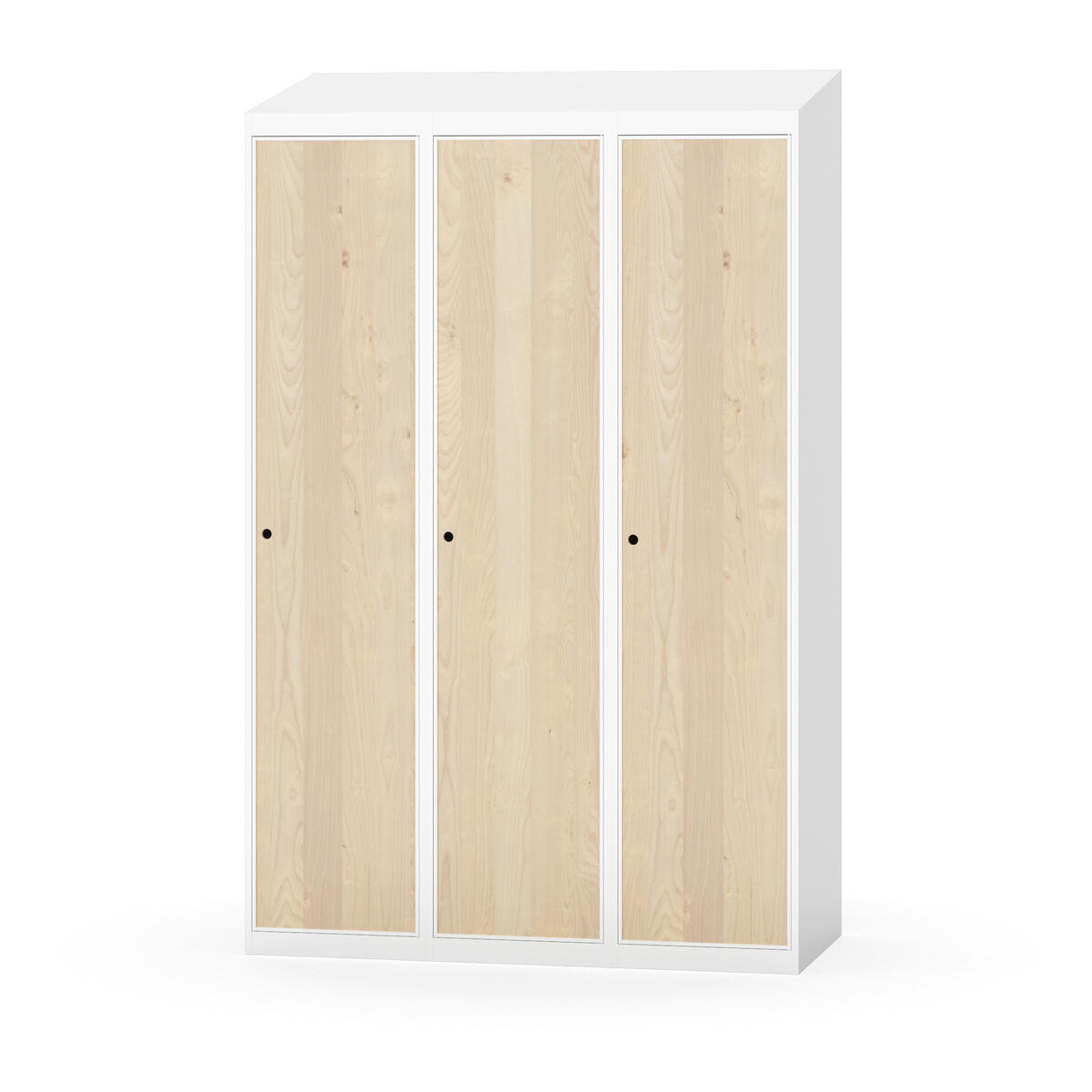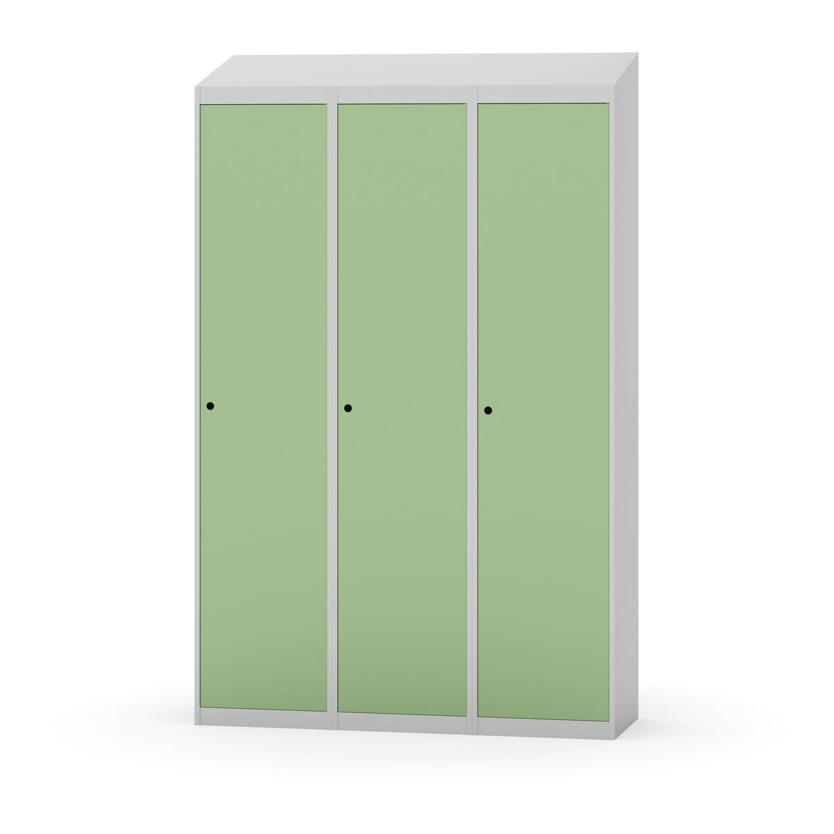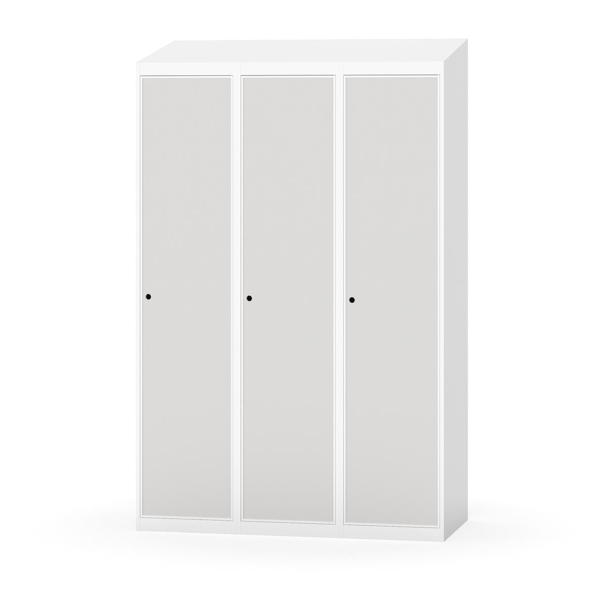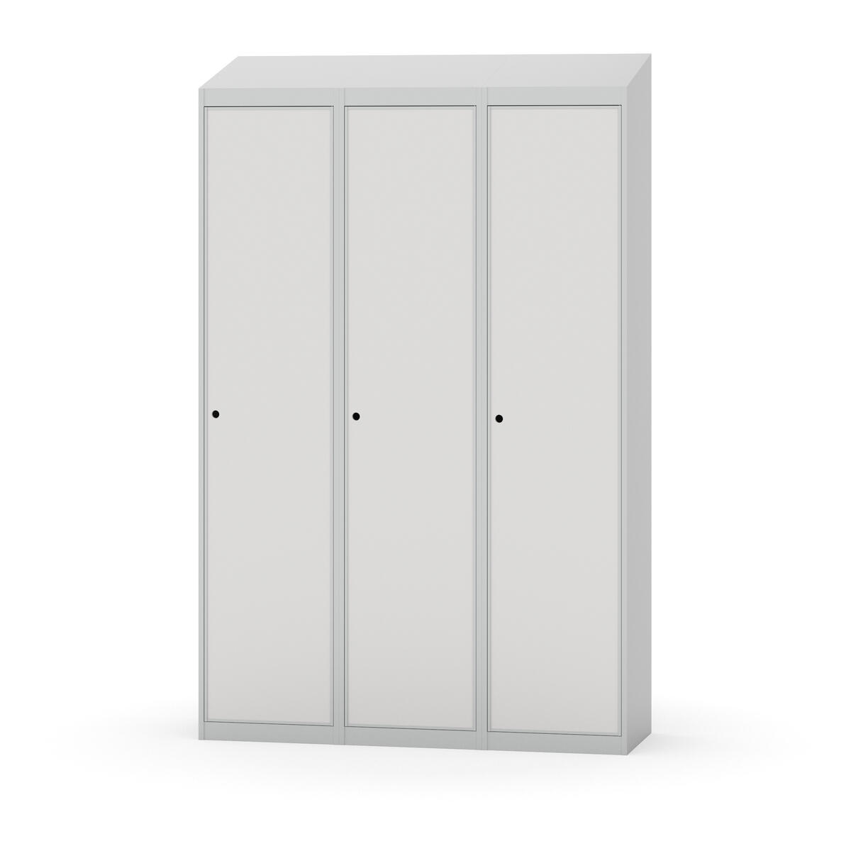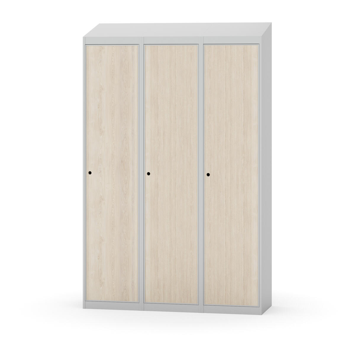Täysin hitsattu runko. Valittavana pelti- tai korkeapainelaminaattipintainen ovi. Peltiovessa on pysäytin sekä teräsvahvike lukkoreiän ympärillä. Laminaattiovessa on teräskehys ja teräksinen pysäytin. Ovet aukeavat 90°. Sisällä on hylly ja vaatetanko kahdella kaksoiskoukulla. Kaapissa on tasainen pohja ilman kynnystä. Ilmastointireiät pohjassa ja katossa. Lukot ja sokkeli/jalusta tilataan erikseen omilla tuotenumeroillaan. Lukot tulevat asennettuna, sokkeli/jalusta asennetaan toimituksen yhteydessä.