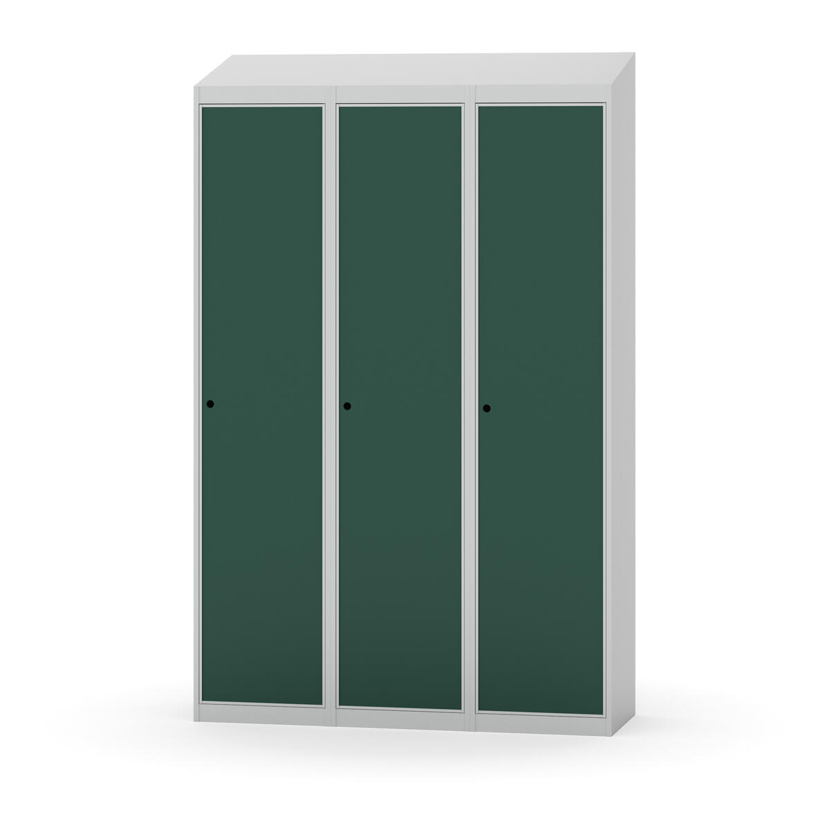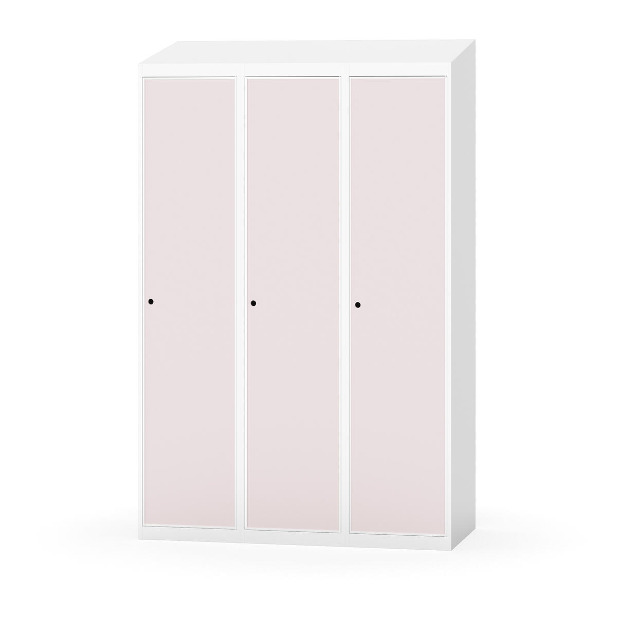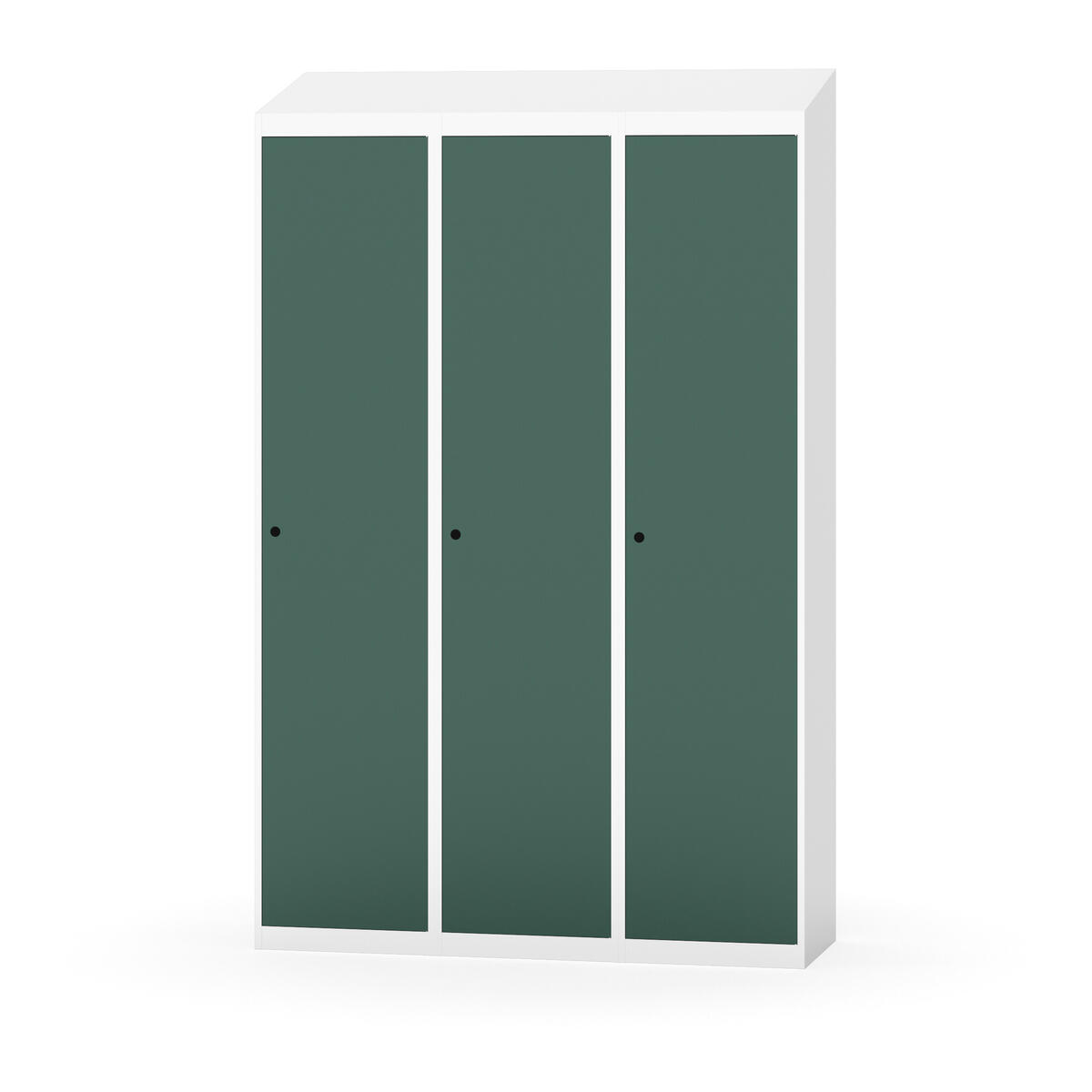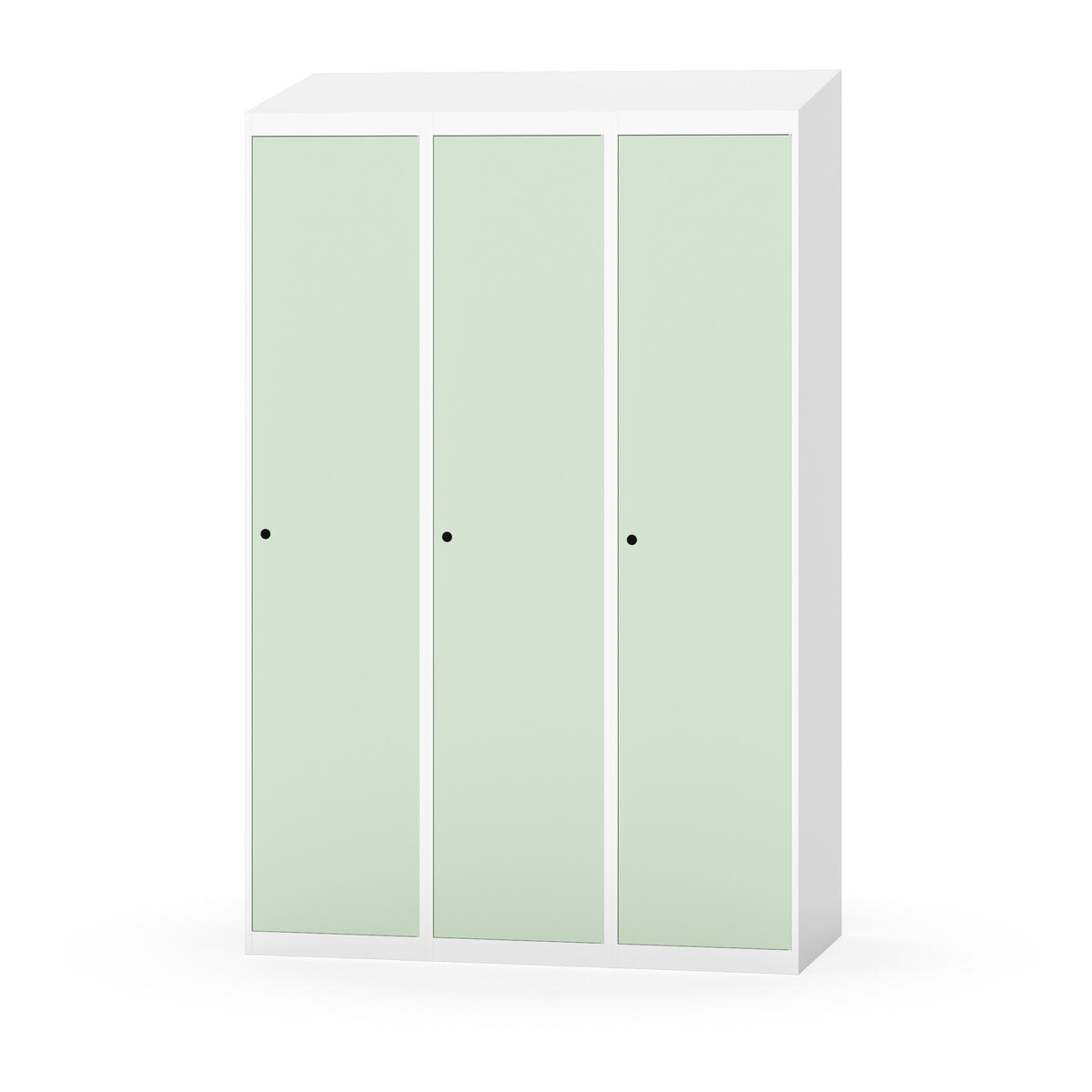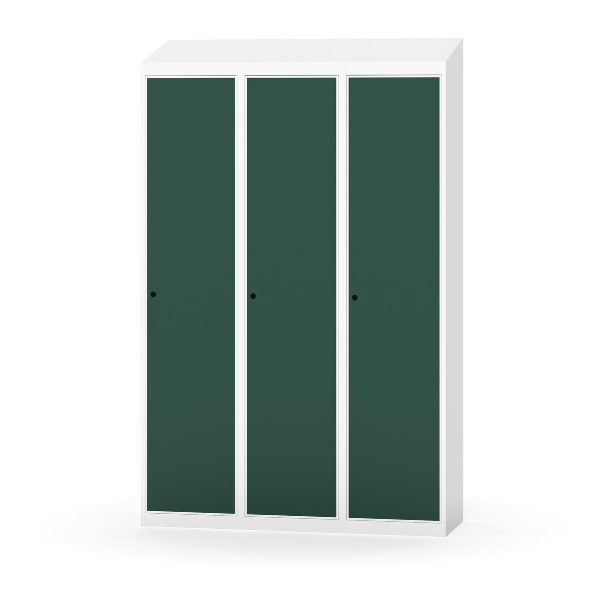 Täysin hitsattu runko. Valittavana pelti- tai korkeapainelaminaattipintainen ovi. Peltiovessa on pysäytin sekä teräsvahvike lukkoreiän ympärillä. Laminaattiovessa on teräskehys ja teräksinen pysäytin. Ovet aukeavat 90°. Sisällä on hylly ja vaatetanko kahdella kaksoiskoukulla. Kaapissa on tasainen pohja ilman kynnystä. Ilmastointireiät pohjassa ja katossa. Lukot ja sokkeli/jalusta tilataan erikseen omilla tuotenumeroillaan. Lukot tulevat asennettuna, sokkeli/jalusta asennetaan toimituksen yhteydessä.