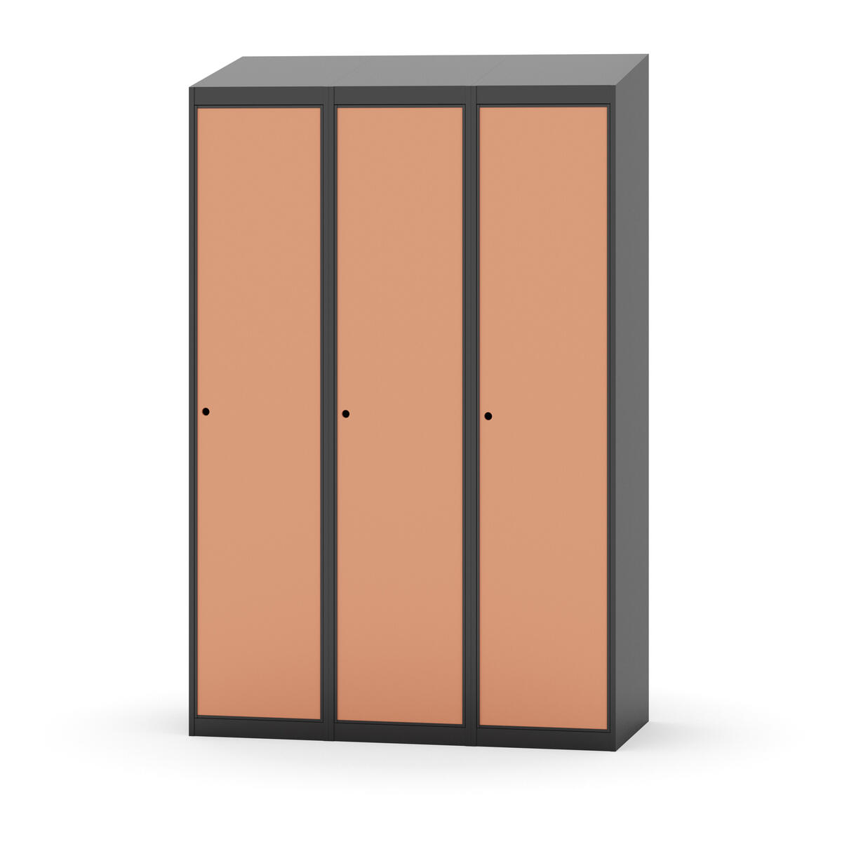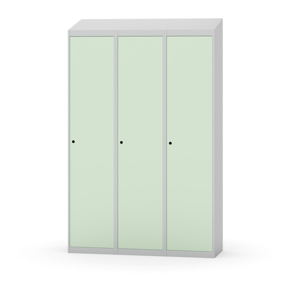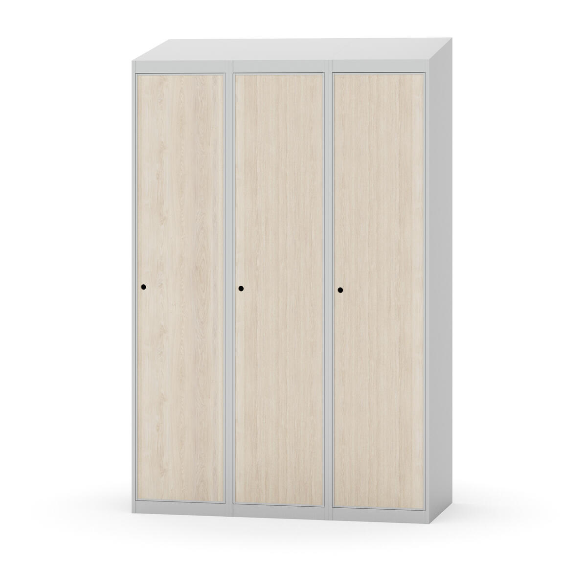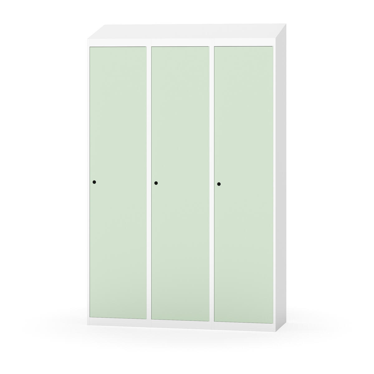 Täysin hitsattu runko. Valittavana pelti- tai korkeapainelaminaattipintainen ovi. Peltiovessa on pysäytin sekä teräsvahvike lukkoreiän ympärillä. Laminaattiovessa on teräskehys ja teräksinen pysäytin. Ovet aukeavat 90°. Sisällä on hylly ja vaatetanko kahdella kaksoiskoukulla. Kaapissa on tasainen pohja ilman kynnystä. Ilmastointireiät pohjassa ja katossa. Lukot ja sokkeli/jalusta tilataan erikseen omilla tuotenumeroillaan. Lukot tulevat asennettuna, sokkeli/jalusta asennetaan toimituksen yhteydessä.