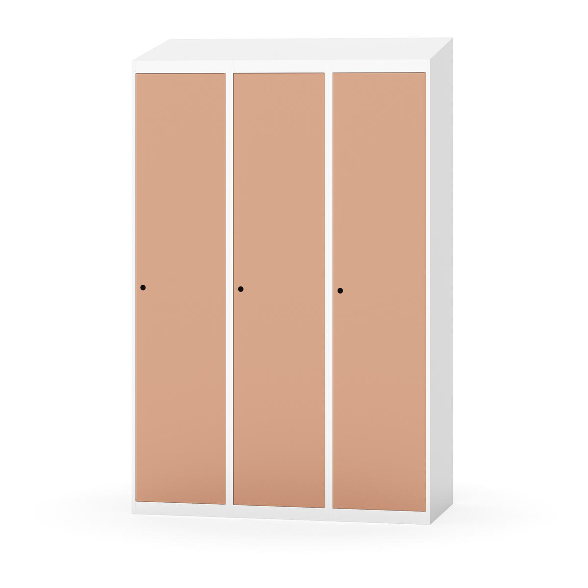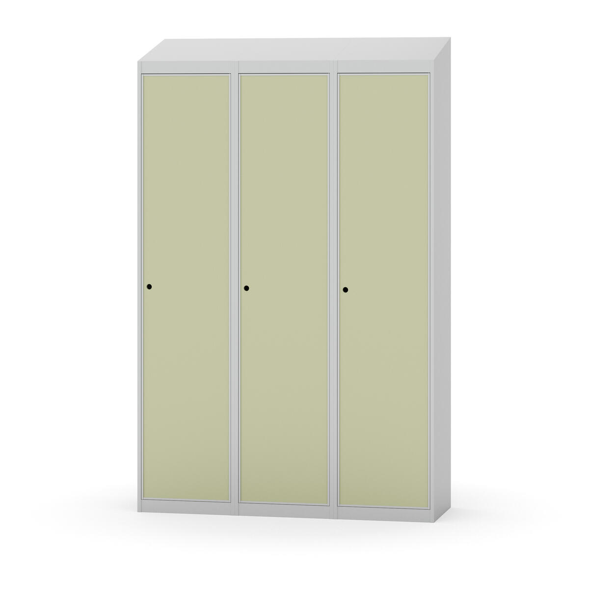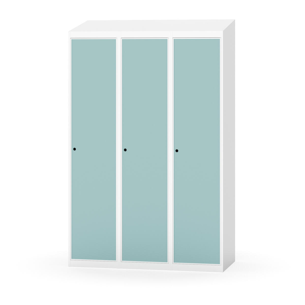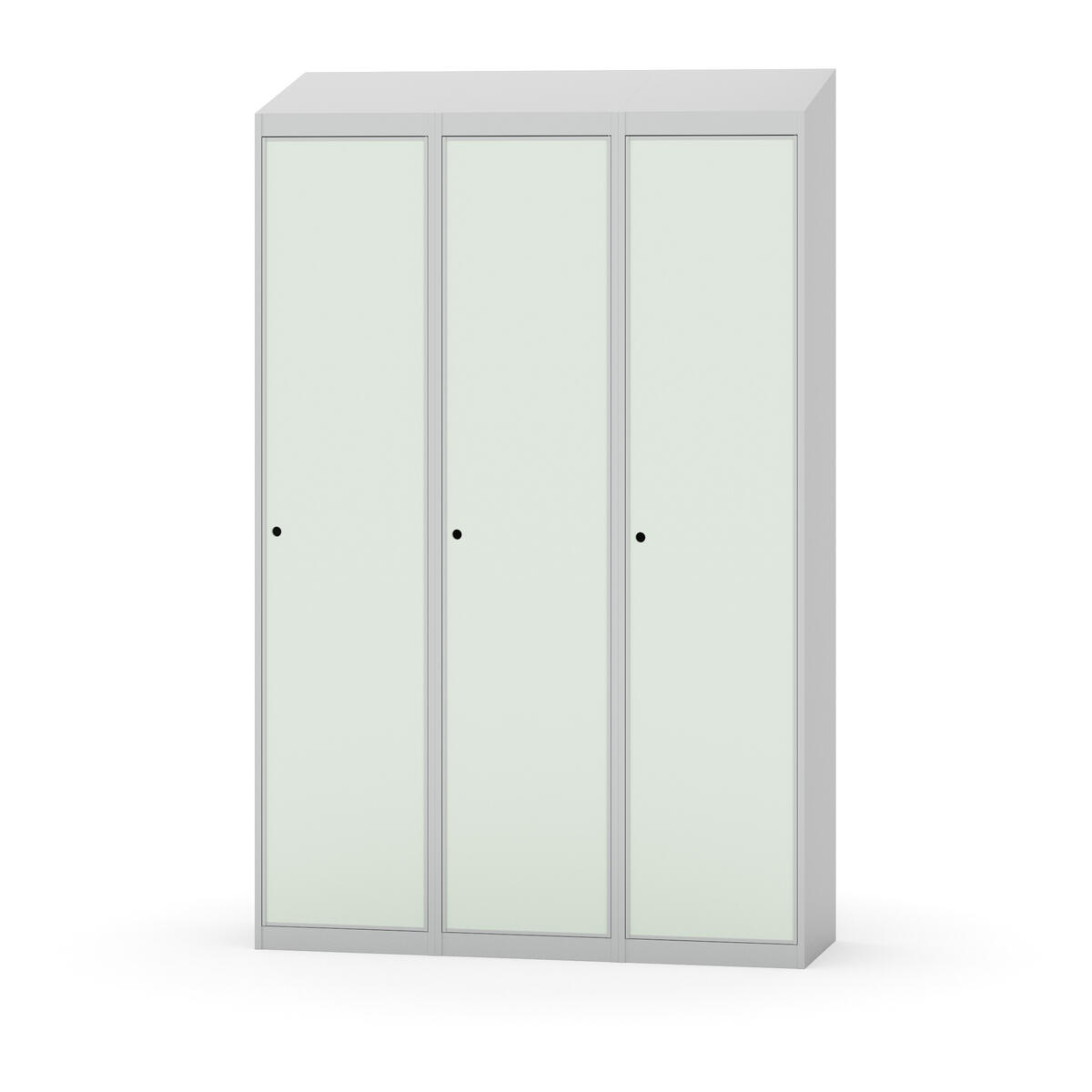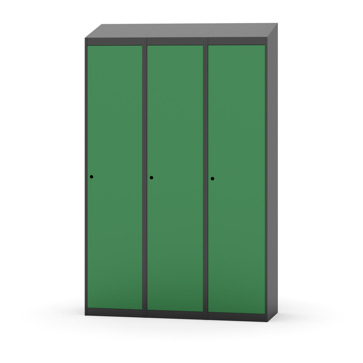 Täysin hitsattu runko. Valittavana pelti- tai korkeapainelaminaattipintainen ovi. Peltiovessa on pysäytin sekä teräsvahvike lukkoreiän ympärillä. Laminaattiovessa on teräskehys ja teräksinen pysäytin. Ovet aukeavat 90°. Sisällä on hylly ja vaatetanko kahdella kaksoiskoukulla. Kaapissa on tasainen pohja ilman kynnystä. Ilmastointireiät pohjassa ja katossa. Lukot ja sokkeli/jalusta tilataan erikseen omilla tuotenumeroillaan. Lukot tulevat asennettuna, sokkeli/jalusta asennetaan toimituksen yhteydessä.