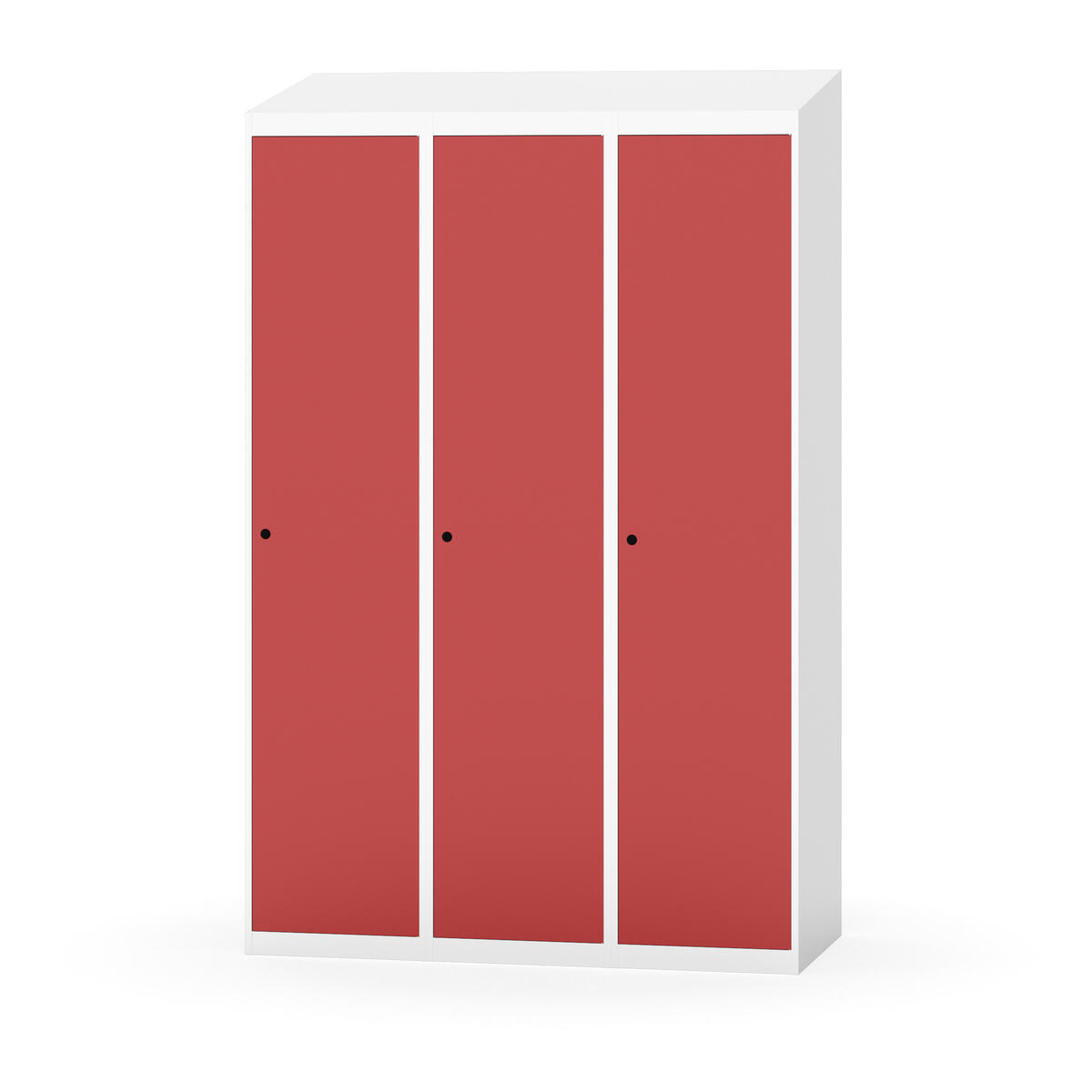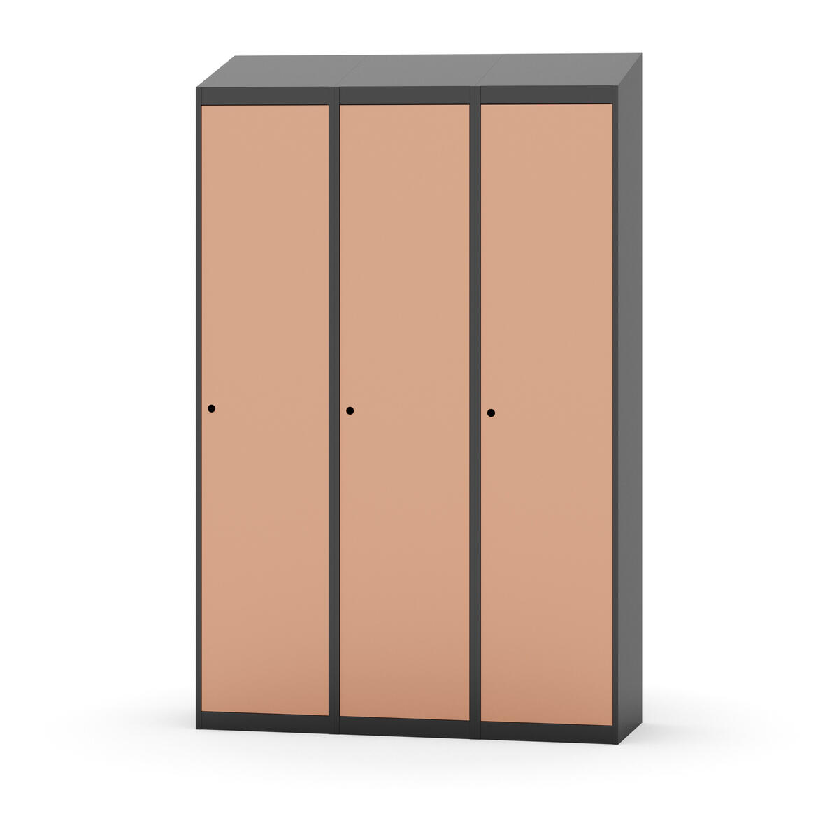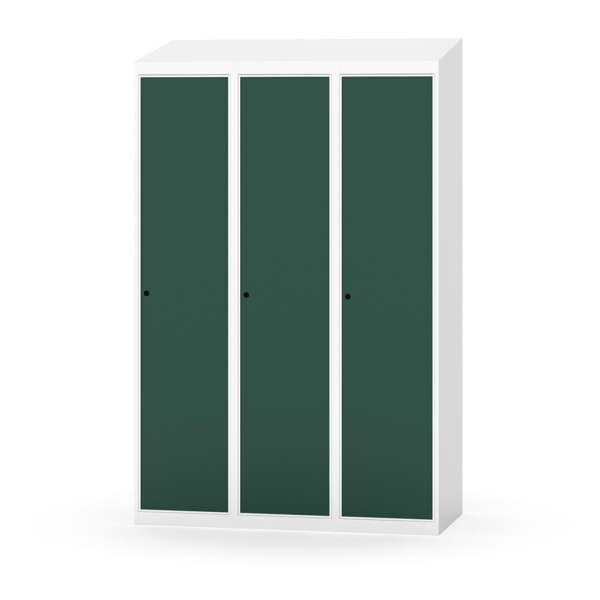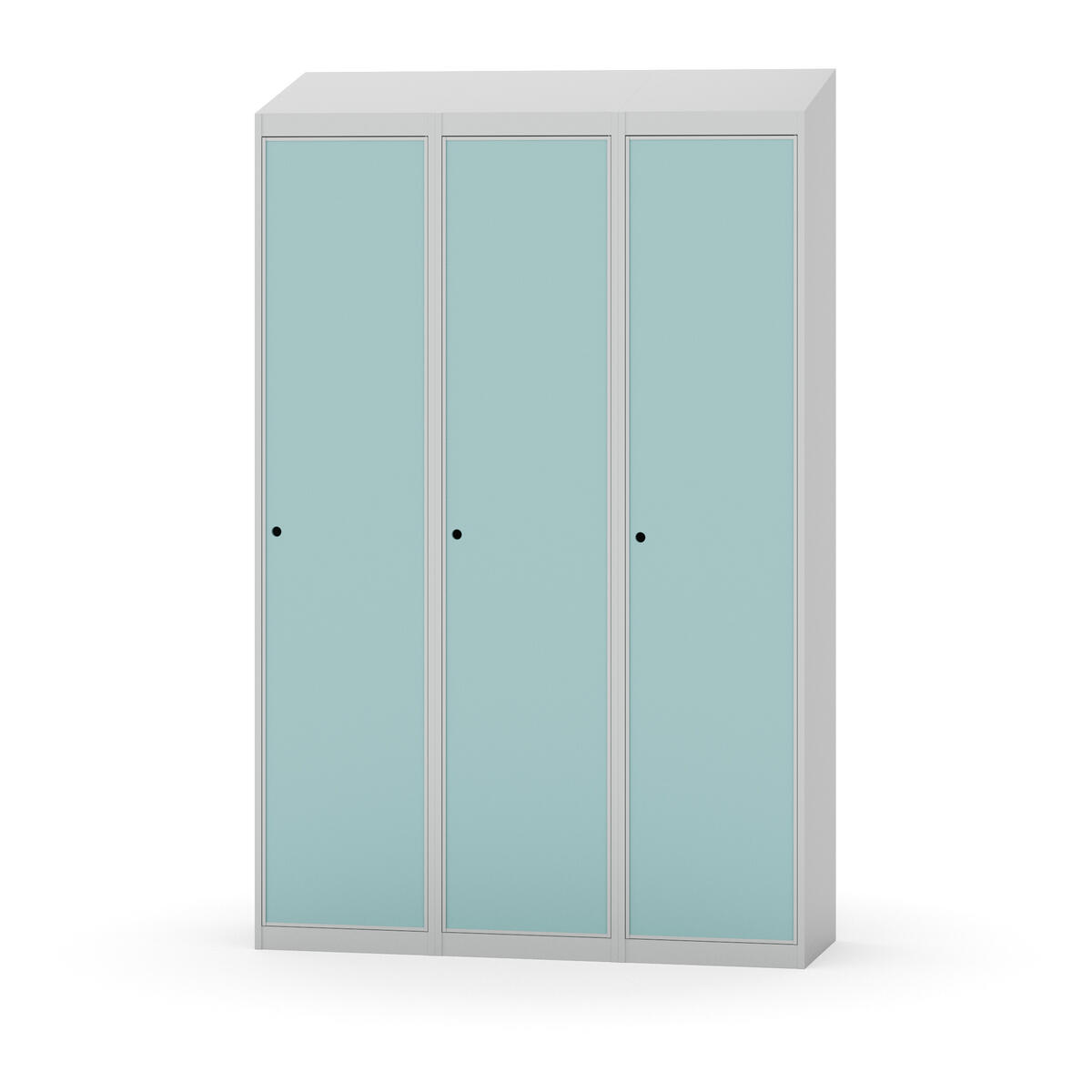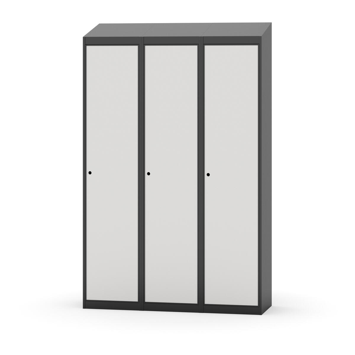 Täysin hitsattu runko. Valittavana pelti- tai korkeapainelaminaattipintainen ovi. Peltiovessa on pysäytin sekä teräsvahvike lukkoreiän ympärillä. Laminaattiovessa on teräskehys ja teräksinen pysäytin. Ovet aukeavat 90°. Sisällä on hylly ja vaatetanko kahdella kaksoiskoukulla. Kaapissa on tasainen pohja ilman kynnystä. Ilmastointireiät pohjassa ja katossa. Lukot ja sokkeli/jalusta tilataan erikseen omilla tuotenumeroillaan. Lukot tulevat asennettuna, sokkeli/jalusta asennetaan toimituksen yhteydessä.