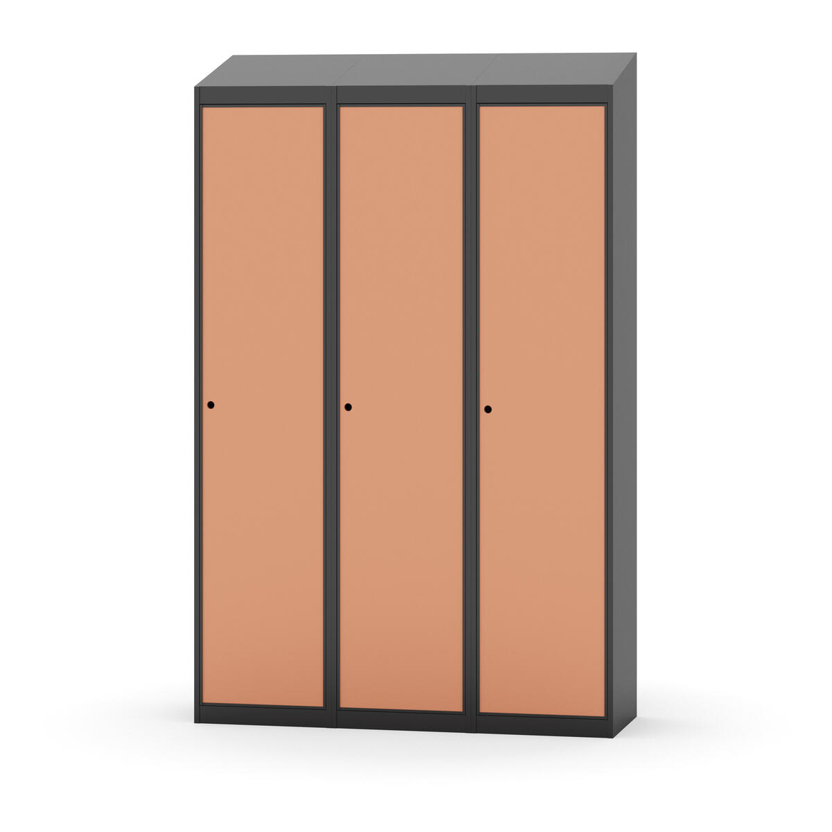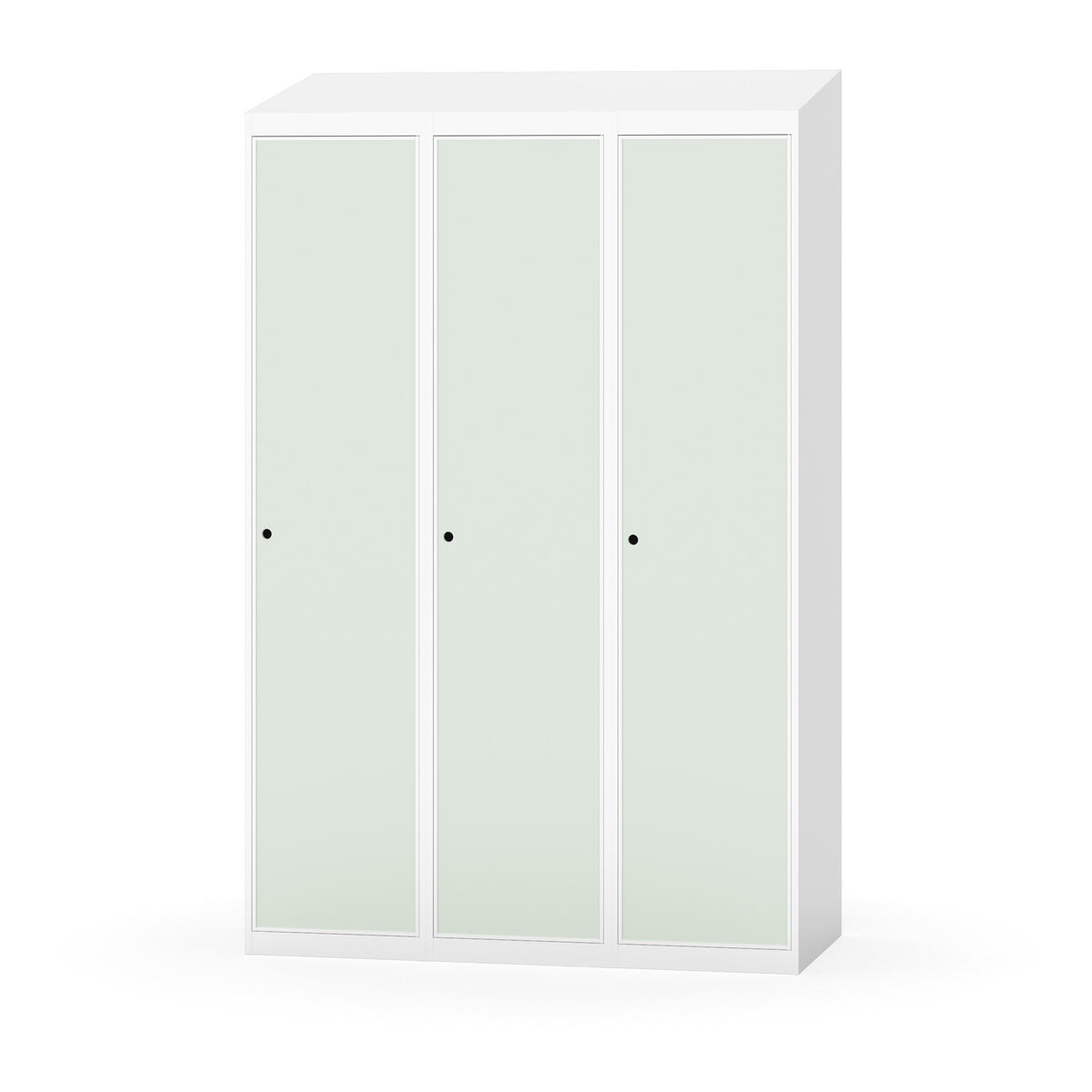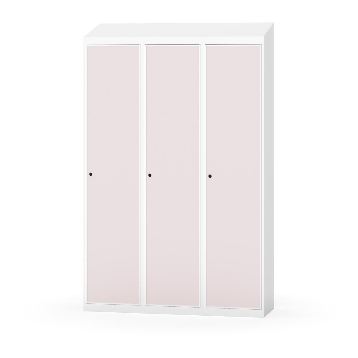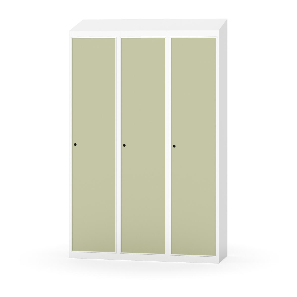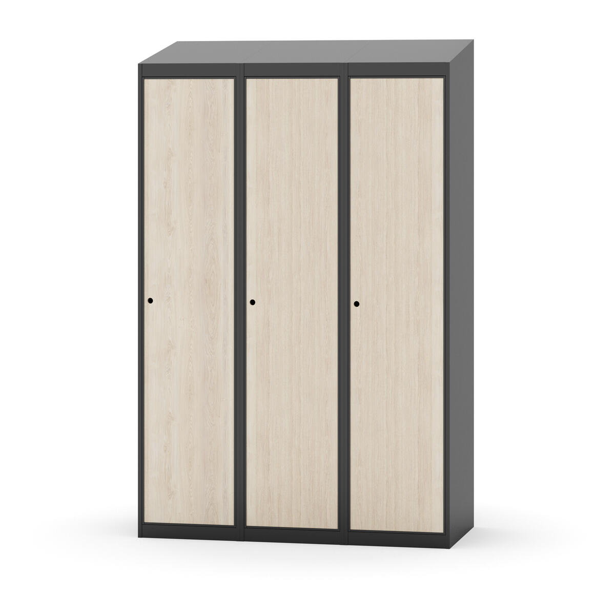 Täysin hitsattu runko. Valittavana pelti- tai korkeapainelaminaattipintainen ovi. Peltiovessa on pysäytin sekä teräsvahvike lukkoreiän ympärillä. Laminaattiovessa on teräskehys ja teräksinen pysäytin. Ovet aukeavat 90°. Sisällä on hylly ja vaatetanko kahdella kaksoiskoukulla. Kaapissa on tasainen pohja ilman kynnystä. Ilmastointireiät pohjassa ja katossa. Lukot ja sokkeli/jalusta tilataan erikseen omilla tuotenumeroillaan. Lukot tulevat asennettuna, sokkeli/jalusta asennetaan toimituksen yhteydessä.