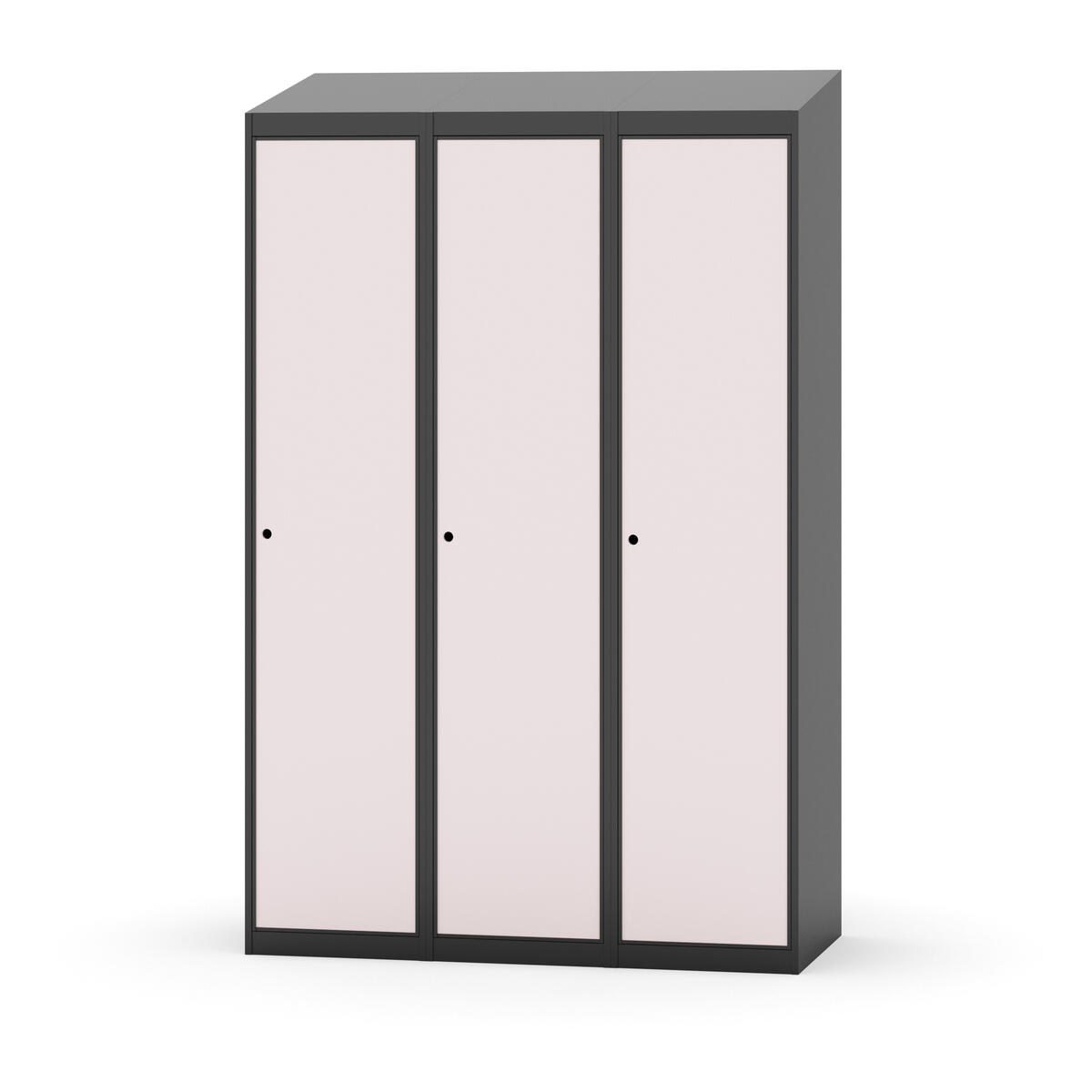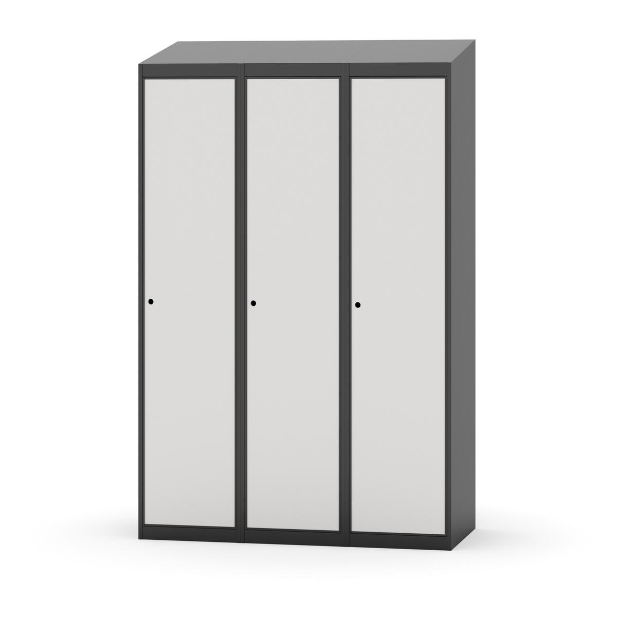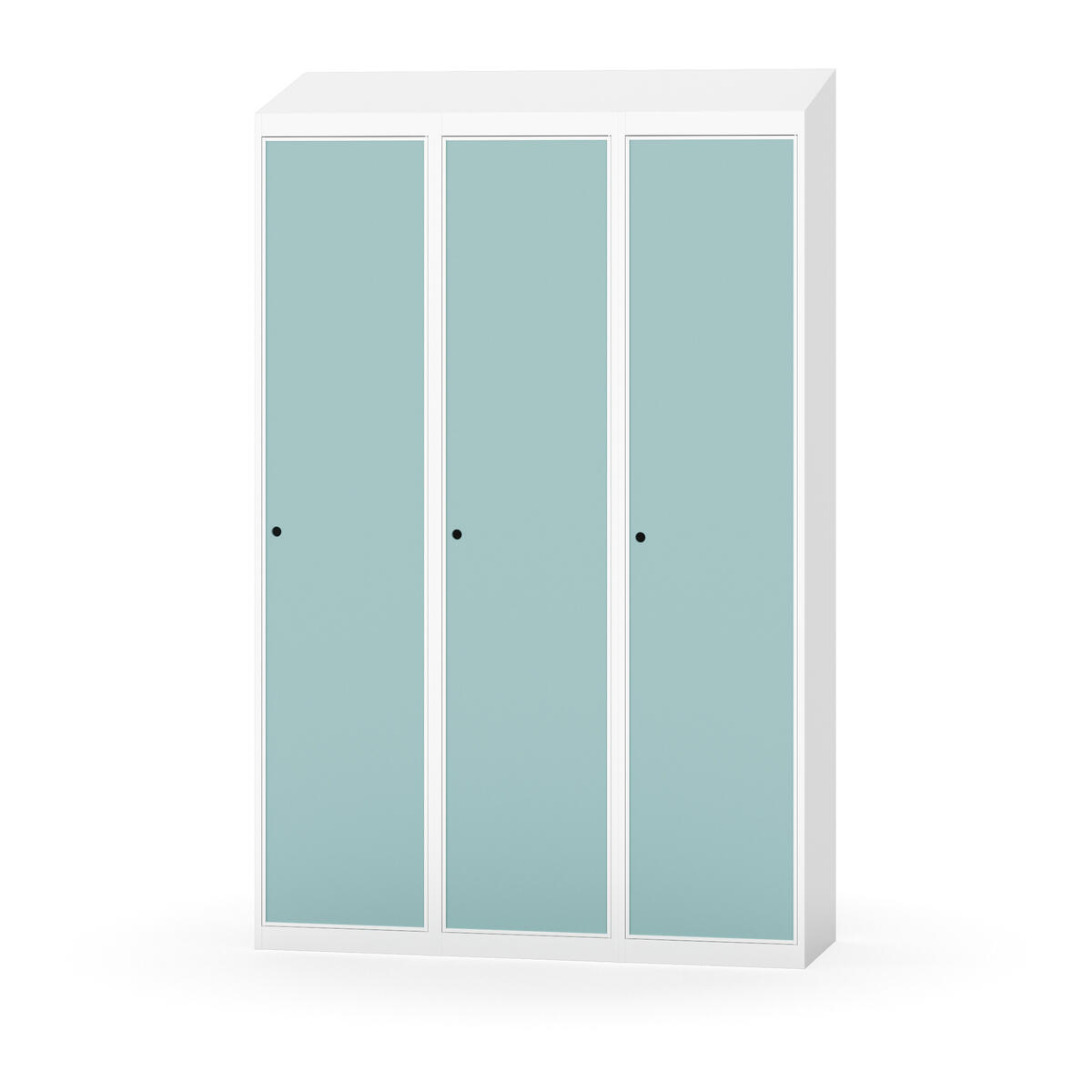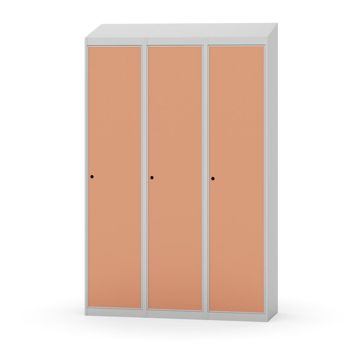 Täysin hitsattu runko. Valittavana pelti- tai korkeapainelaminaattipintainen ovi. Peltiovessa on pysäytin sekä teräsvahvike lukkoreiän ympärillä. Laminaattiovessa on teräskehys ja teräksinen pysäytin. Ovet aukeavat 90°. Sisällä on hylly ja vaatetanko kahdella kaksoiskoukulla. Kaapissa on tasainen pohja ilman kynnystä. Ilmastointireiät pohjassa ja katossa. Lukot ja sokkeli/jalusta tilataan erikseen omilla tuotenumeroillaan. Lukot tulevat asennettuna, sokkeli/jalusta asennetaan toimituksen yhteydessä.