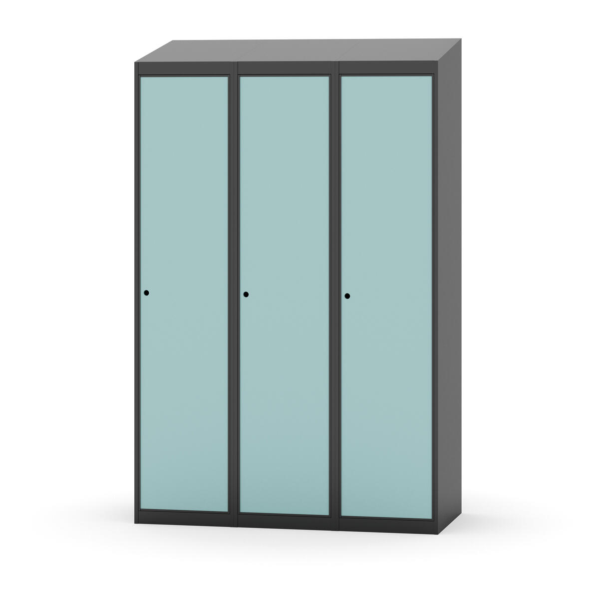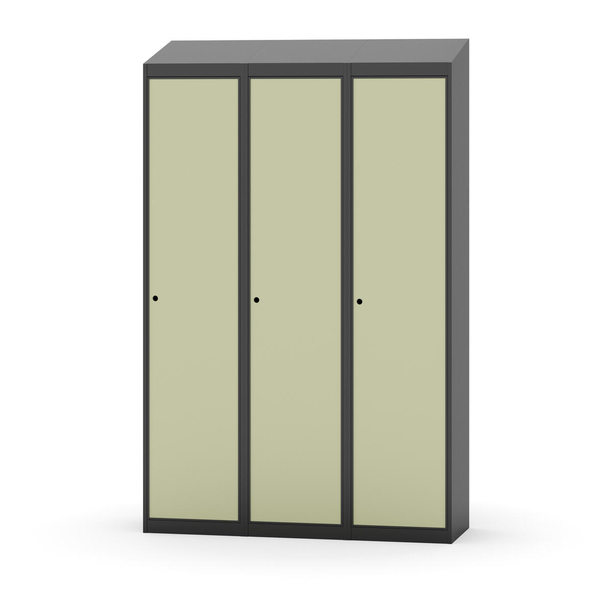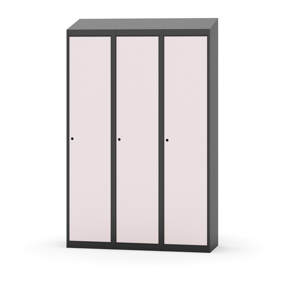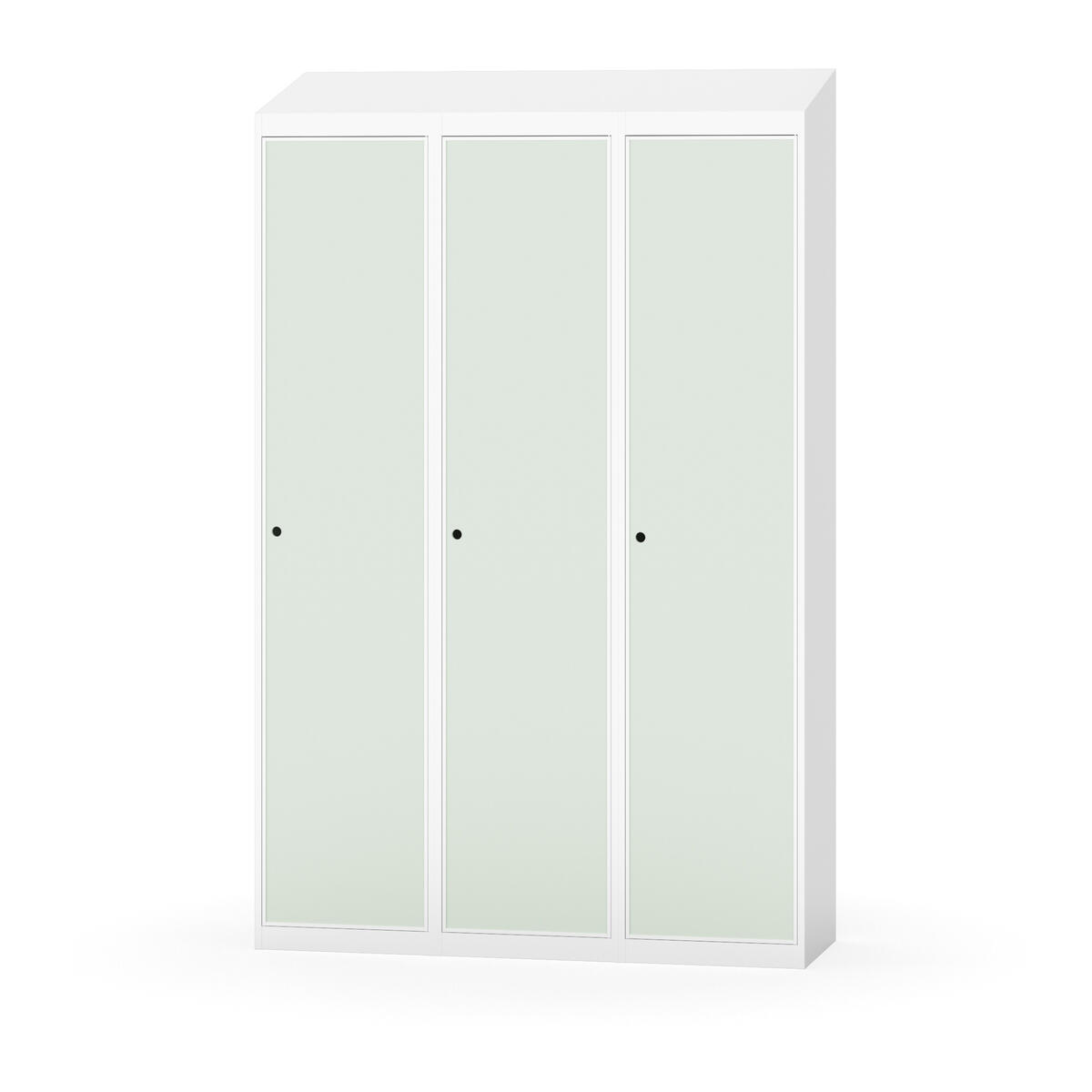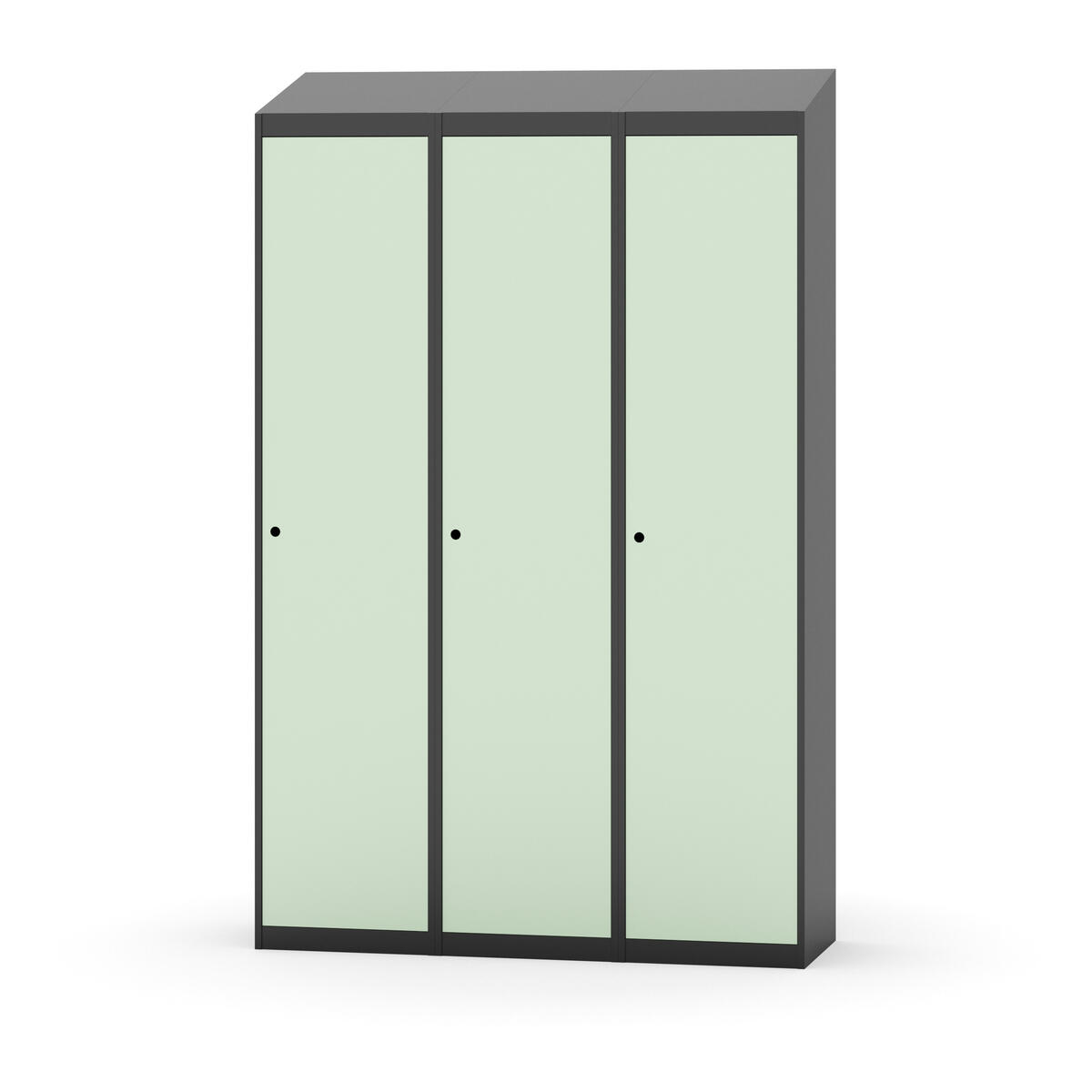 Täysin hitsattu runko. Valittavana pelti- tai korkeapainelaminaattipintainen ovi. Peltiovessa on pysäytin sekä teräsvahvike lukkoreiän ympärillä. Laminaattiovessa on teräskehys ja teräksinen pysäytin. Ovet aukeavat 90°. Sisällä on hylly ja vaatetanko kahdella kaksoiskoukulla. Kaapissa on tasainen pohja ilman kynnystä. Ilmastointireiät pohjassa ja katossa. Lukot ja sokkeli/jalusta tilataan erikseen omilla tuotenumeroillaan. Lukot tulevat asennettuna, sokkeli/jalusta asennetaan toimituksen yhteydessä.