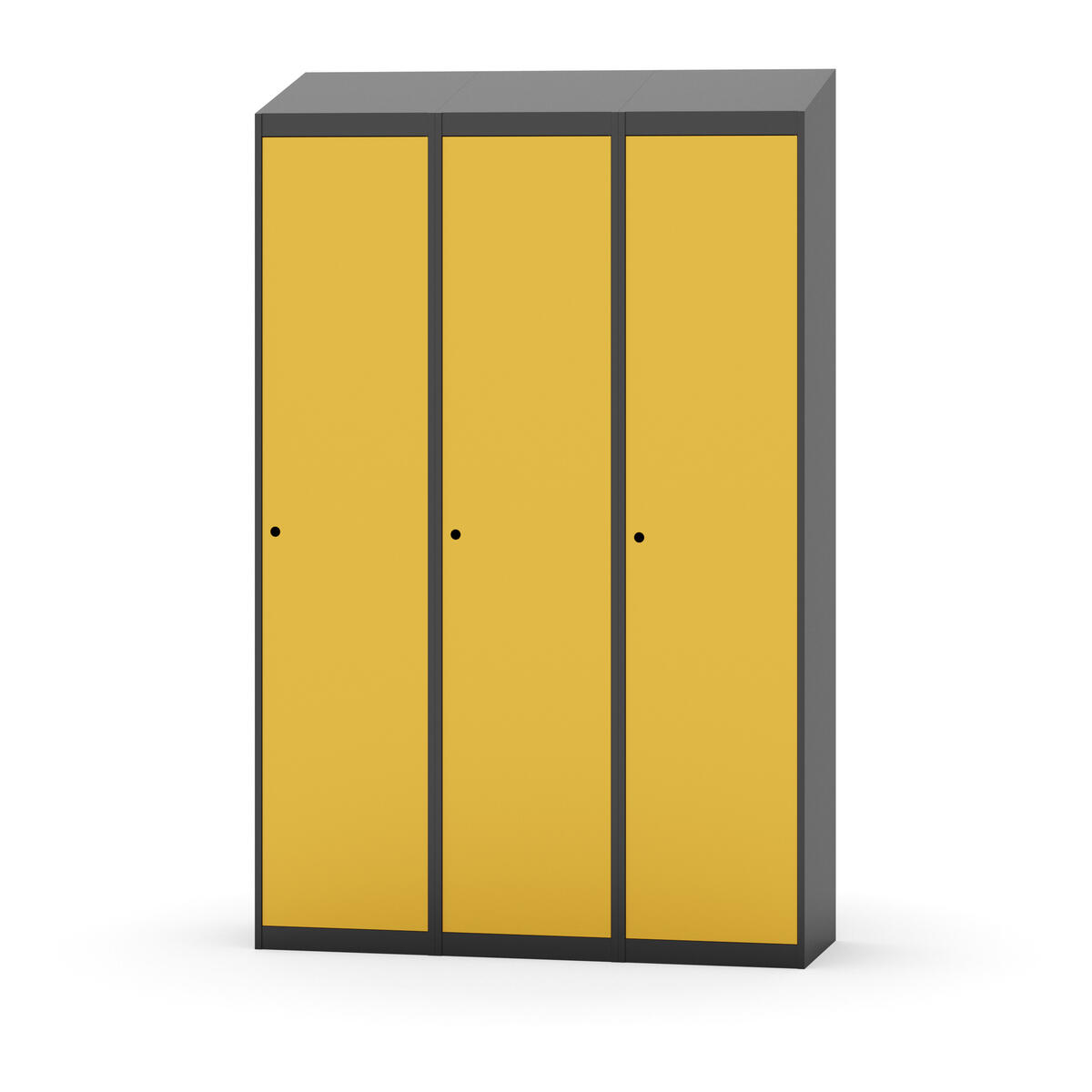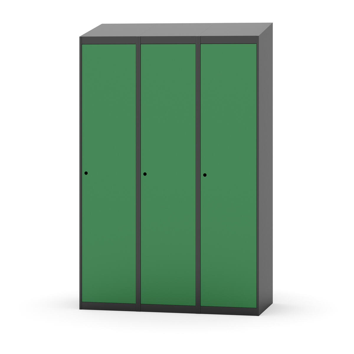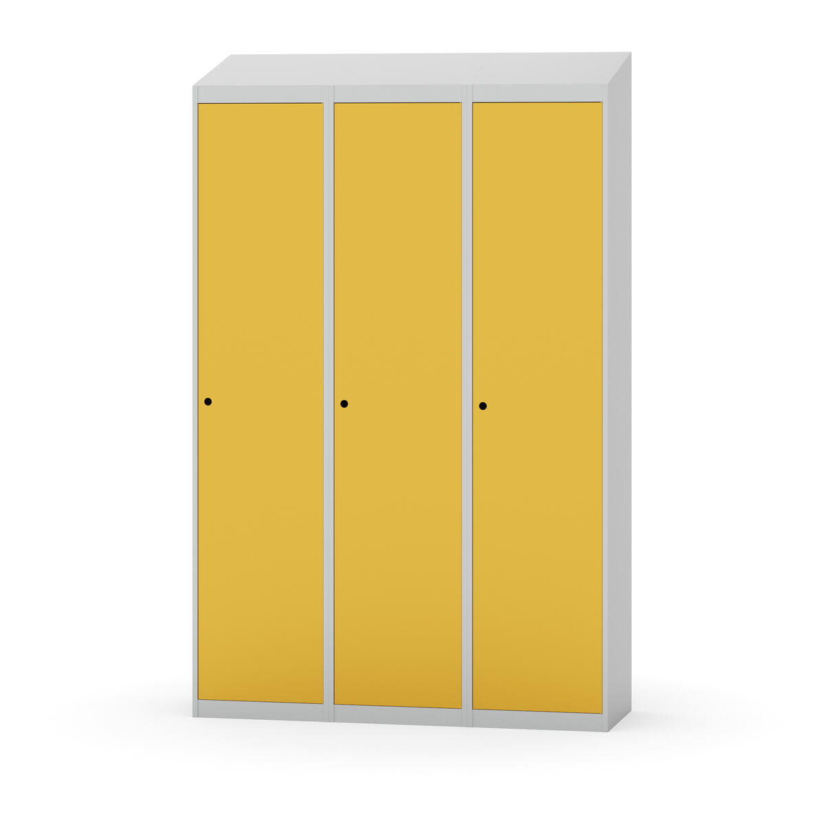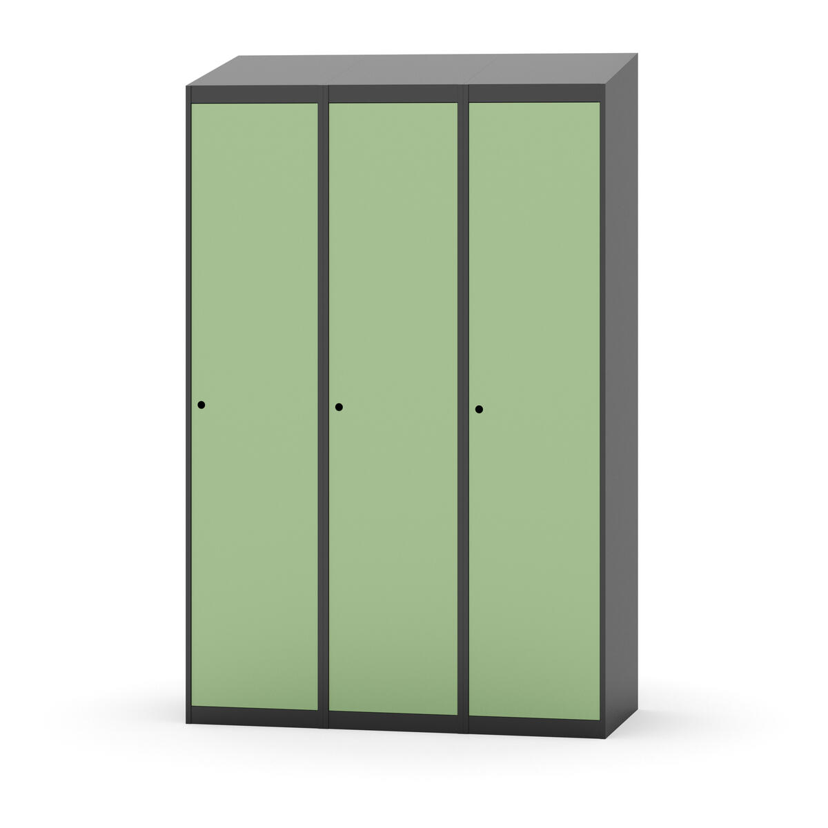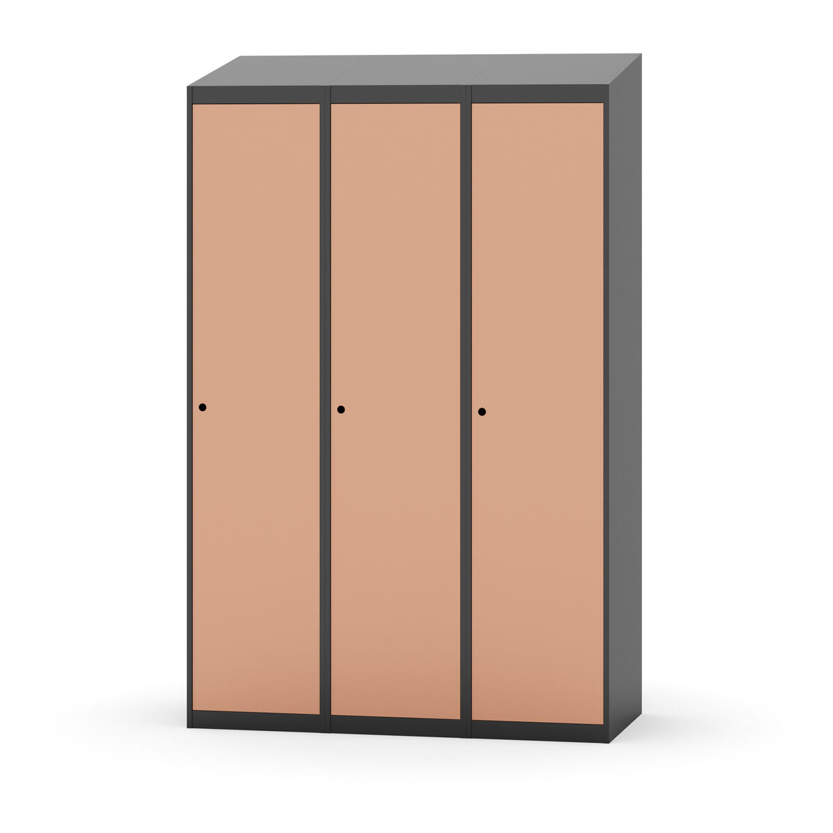 Täysin hitsattu runko. Valittavana pelti- tai korkeapainelaminaattipintainen ovi. Peltiovessa on pysäytin sekä teräsvahvike lukkoreiän ympärillä. Laminaattiovessa on teräskehys ja teräksinen pysäytin. Ovet aukeavat 90°. Sisällä on hylly ja vaatetanko kahdella kaksoiskoukulla. Kaapissa on tasainen pohja ilman kynnystä. Ilmastointireiät pohjassa ja katossa. Lukot ja sokkeli/jalusta tilataan erikseen omilla tuotenumeroillaan. Lukot tulevat asennettuna, sokkeli/jalusta asennetaan toimituksen yhteydessä.