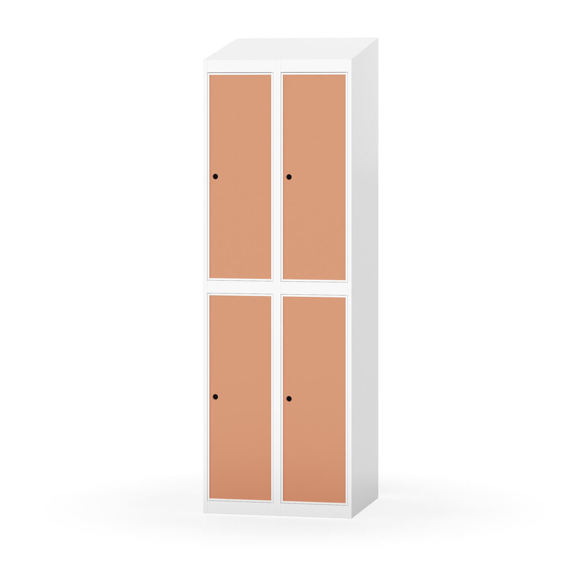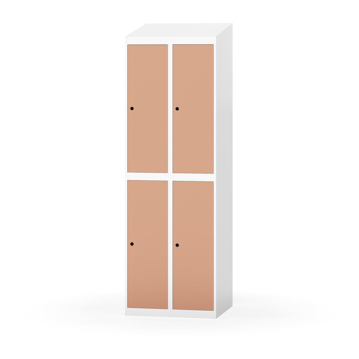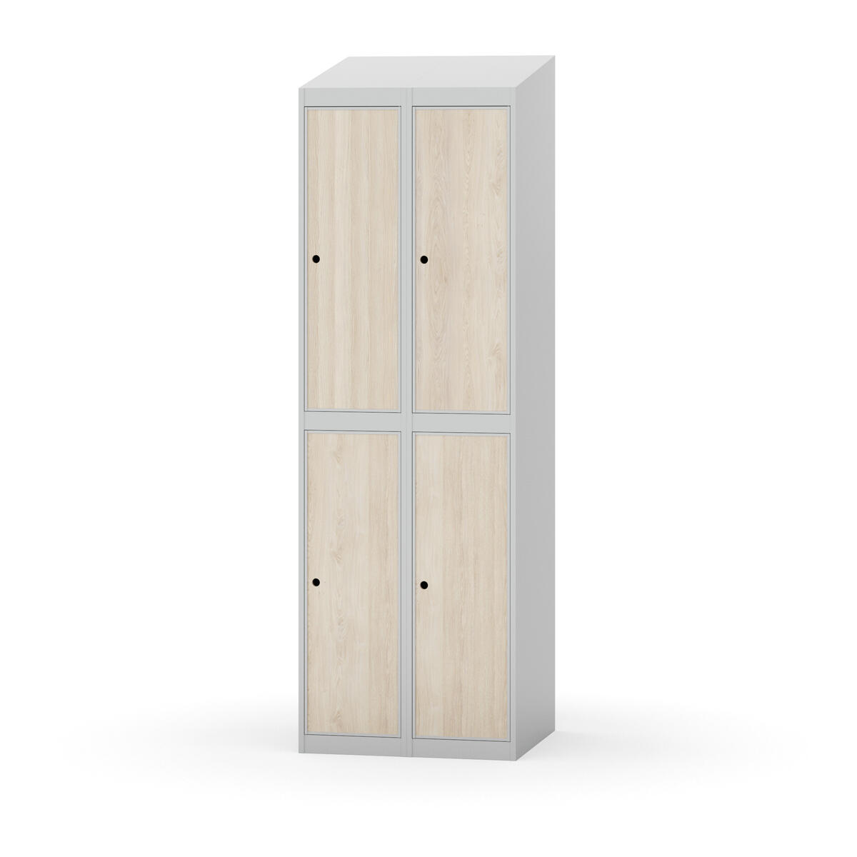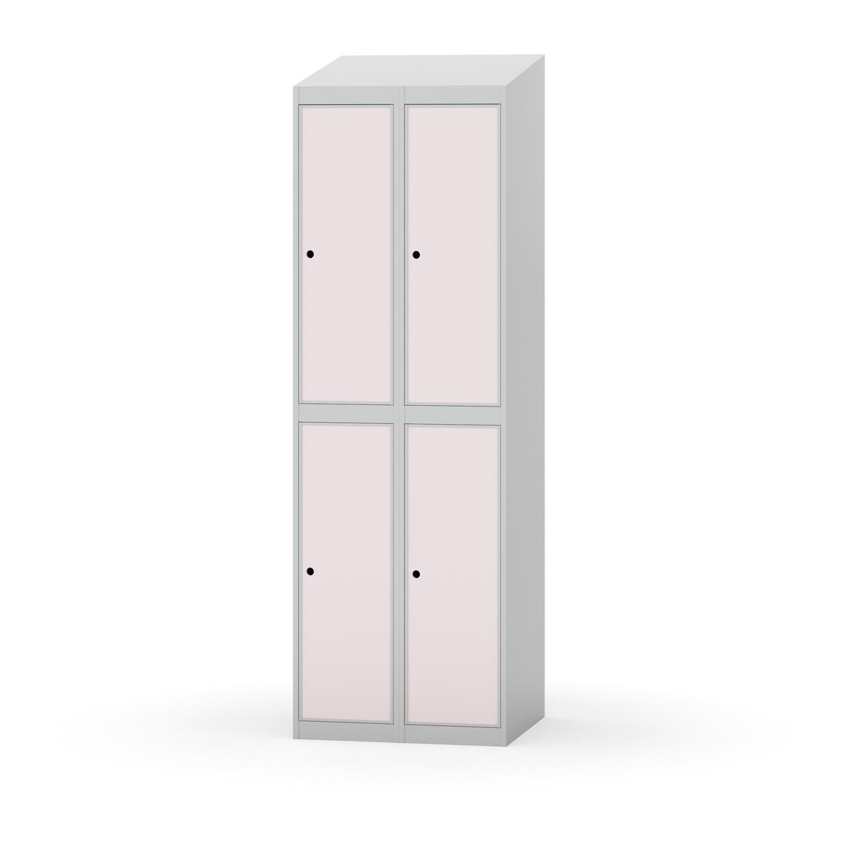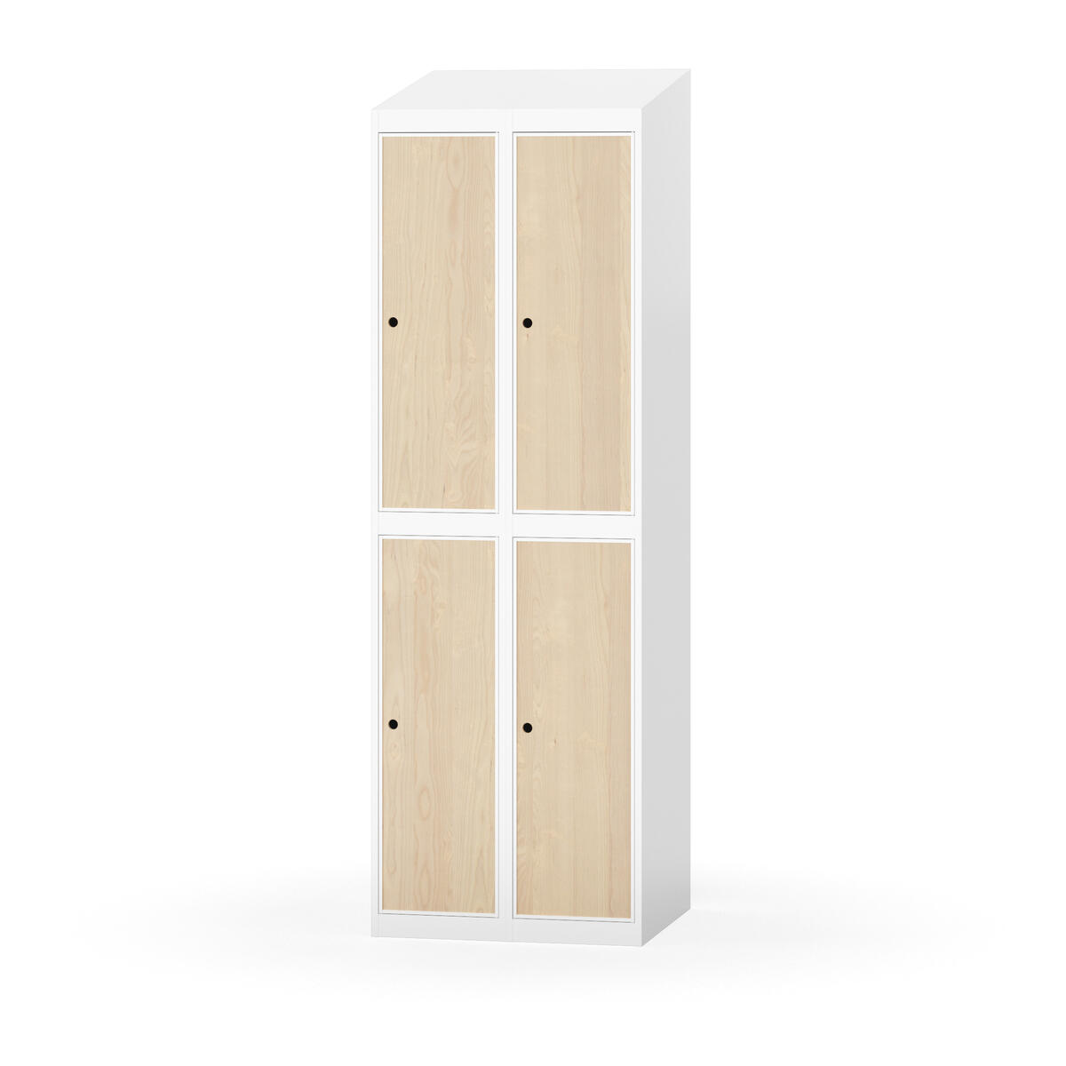 Täysin hitsattu runko. Valittavana pelti- tai korkeapainelaminaattipintainen ovi. Peltiovessa on pysäytin sekä teräsvahvike lukkoreiän ympärillä. Laminaattiovessa on teräskehys ja teräksinen pysäytin. Ovet aukeavat 90°. Sisällä on hylly ja vaatetanko kahdella kaksoiskoukulla. Kaapissa on tasainen pohja ilman kynnystä. Ilmastointireiät pohjassa ja katossa. Lukot ja sokkeli/jalusta tilataan erikseen omilla tuotenumeroillaan. Lukot tulevat asennettuna, sokkeli/jalusta asennetaan toimituksen yhteydessä.