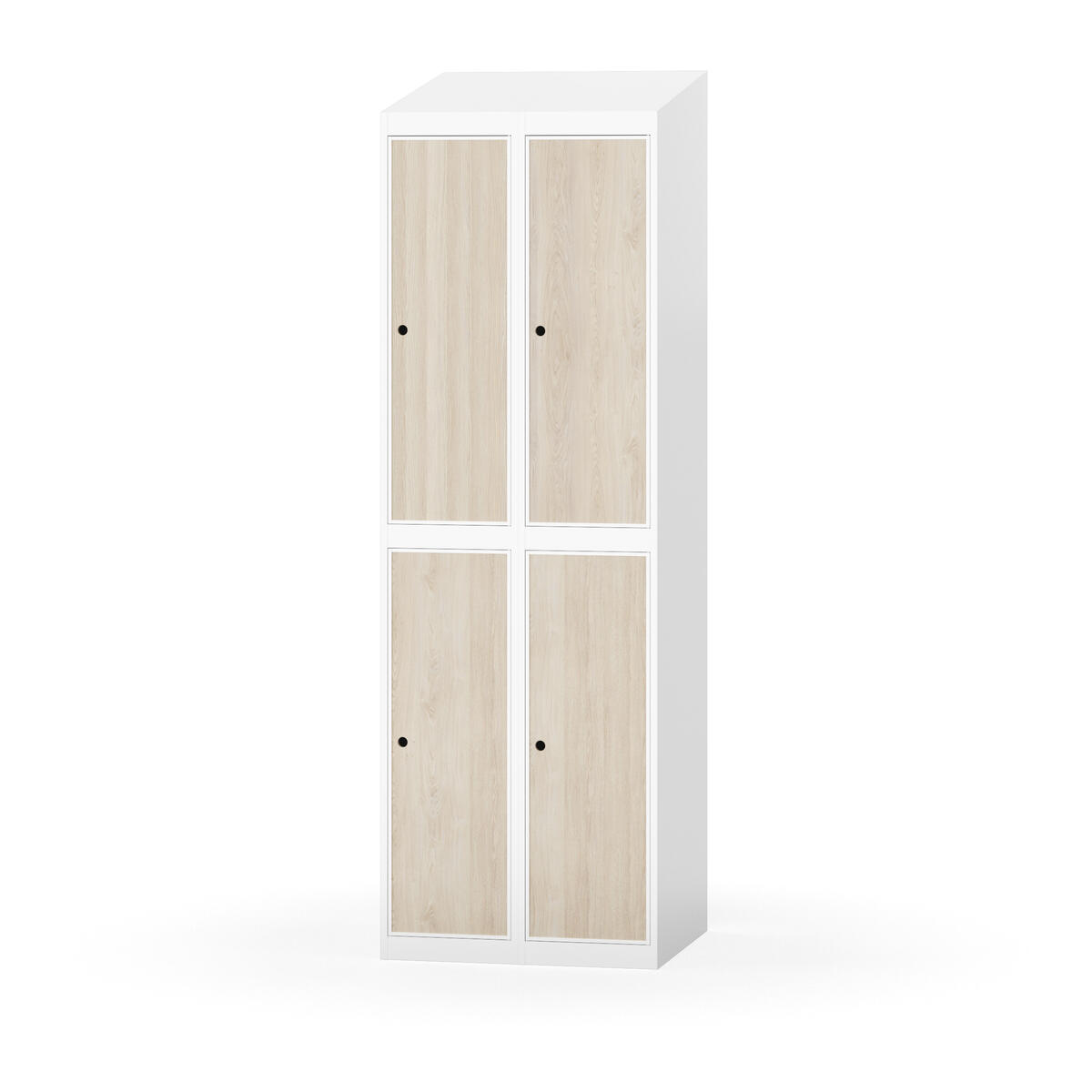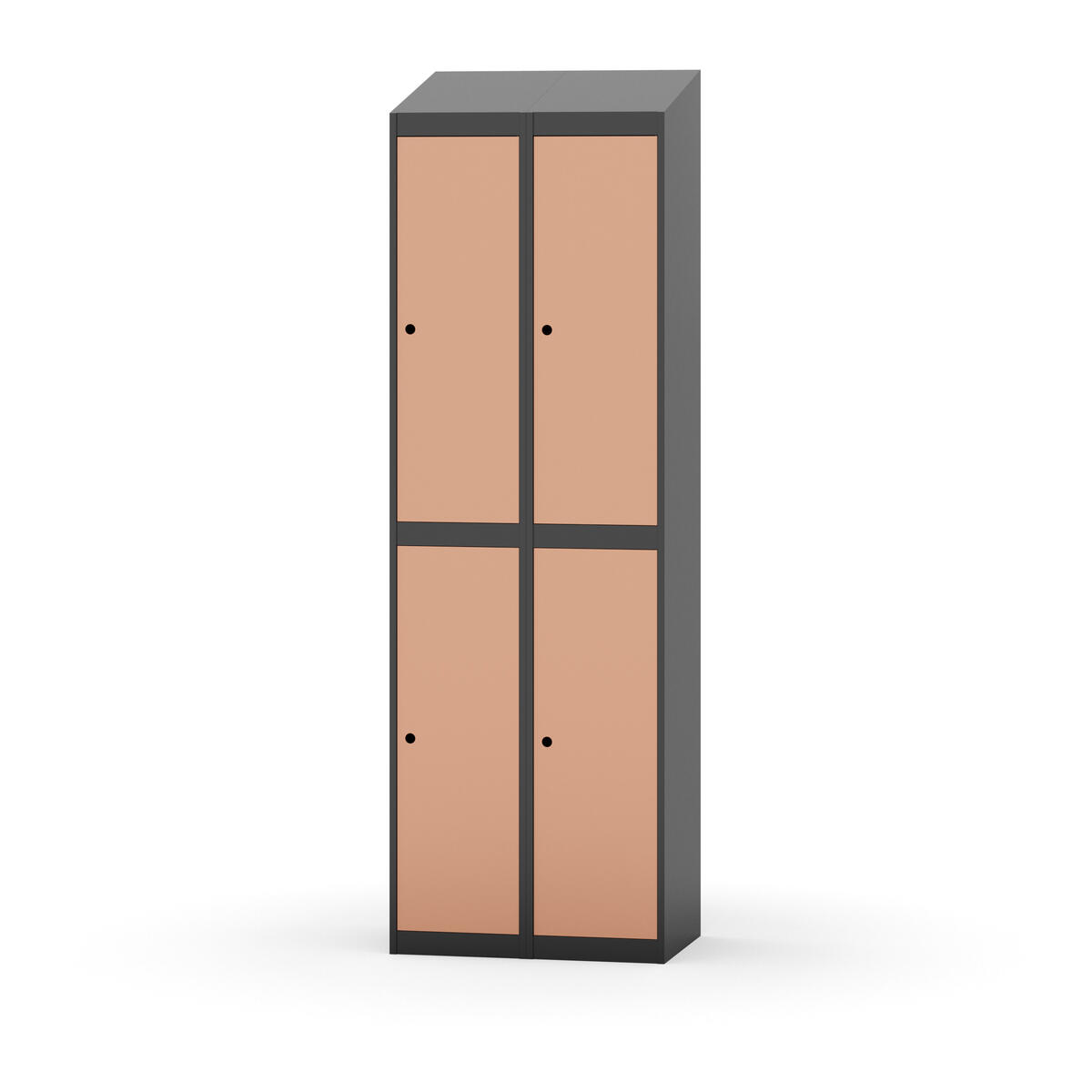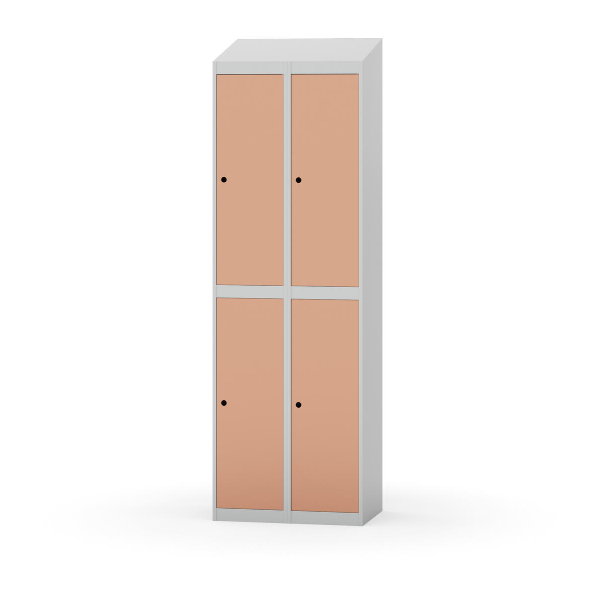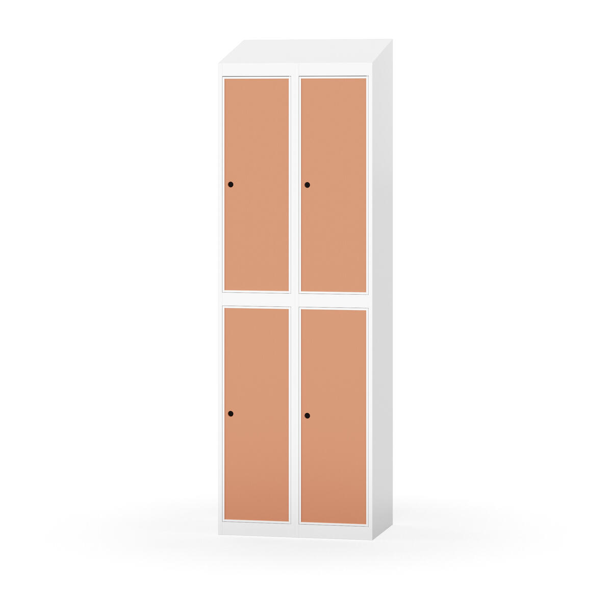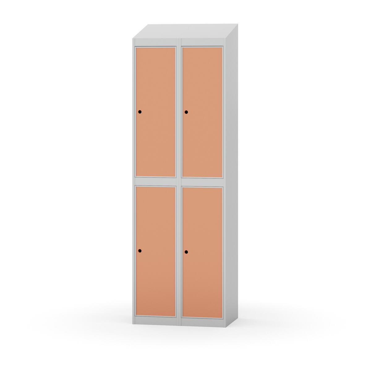 Täysin hitsattu runko. Valittavana pelti- tai korkeapainelaminaattipintainen ovi. Peltiovessa on pysäytin sekä teräsvahvike lukkoreiän ympärillä. Laminaattiovessa on teräskehys ja teräksinen pysäytin. Ovet aukeavat 90°. Sisällä on hylly ja vaatetanko kahdella kaksoiskoukulla. Kaapissa on tasainen pohja ilman kynnystä. Ilmastointireiät pohjassa ja katossa. Lukot ja sokkeli/jalusta tilataan erikseen omilla tuotenumeroillaan. Lukot tulevat asennettuna, sokkeli/jalusta asennetaan toimituksen yhteydessä.