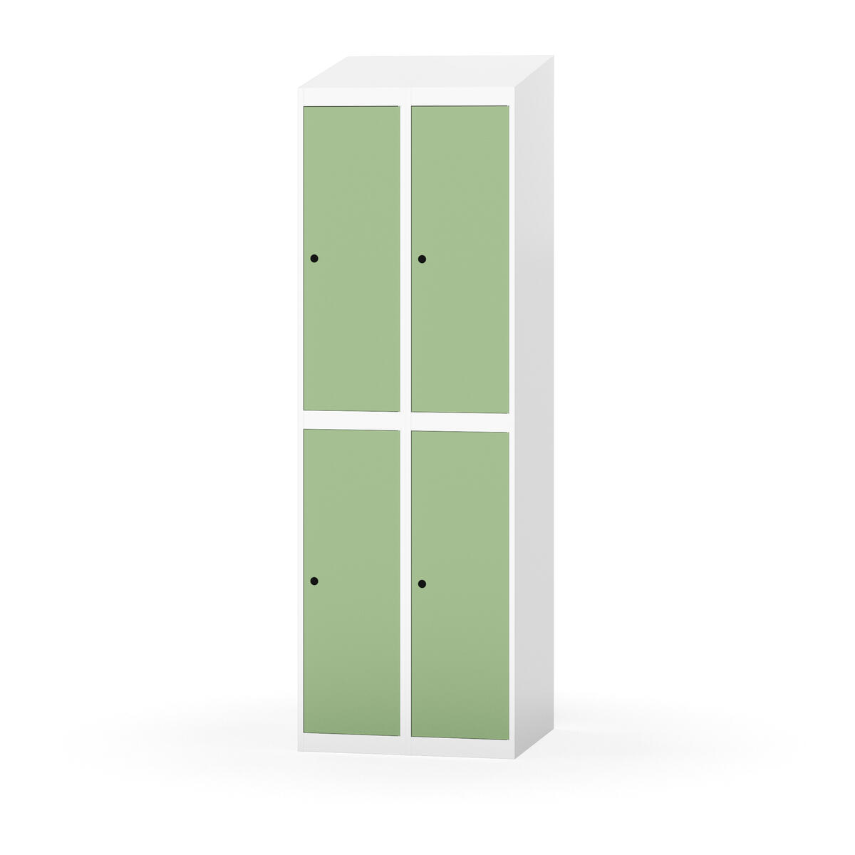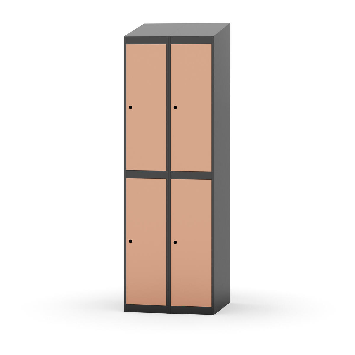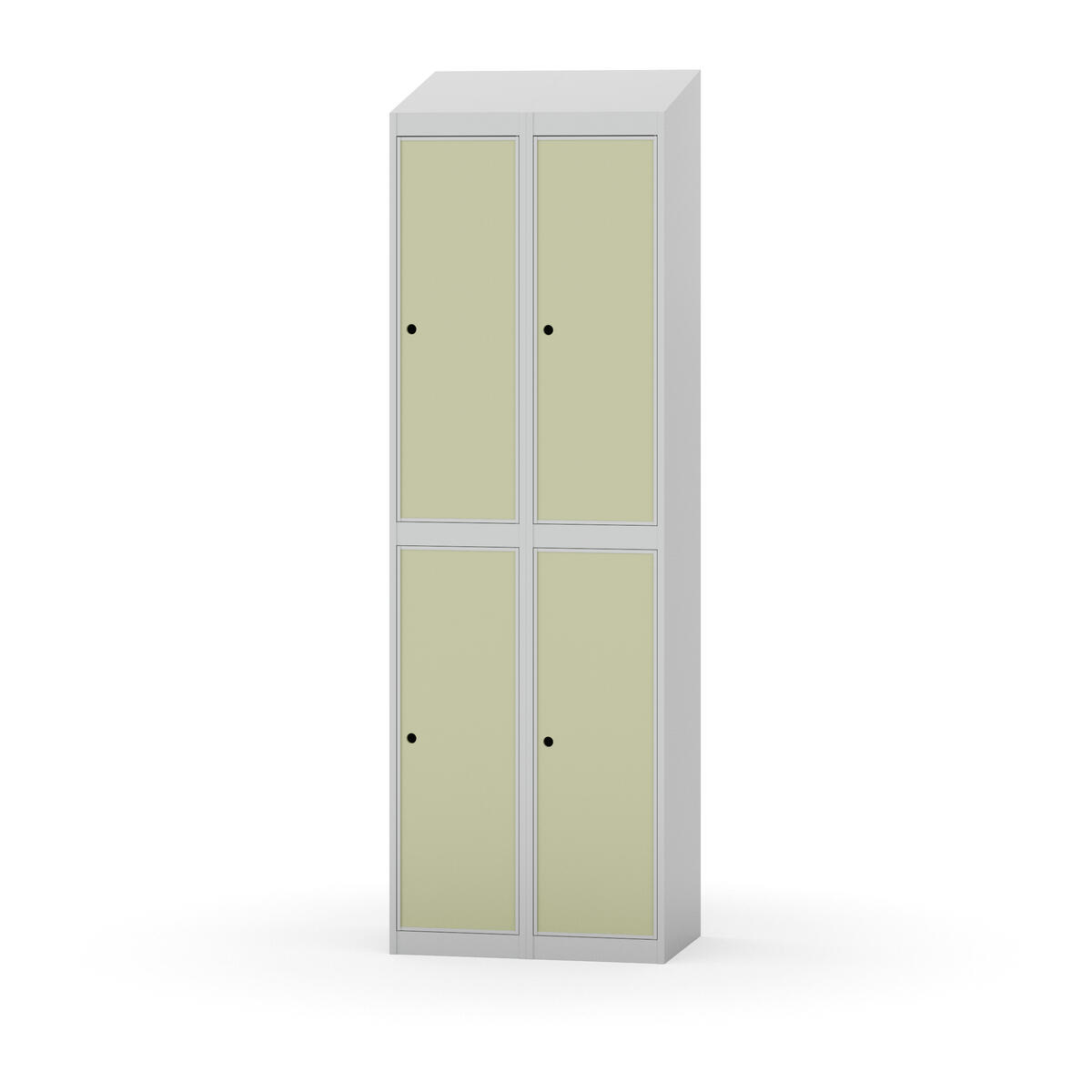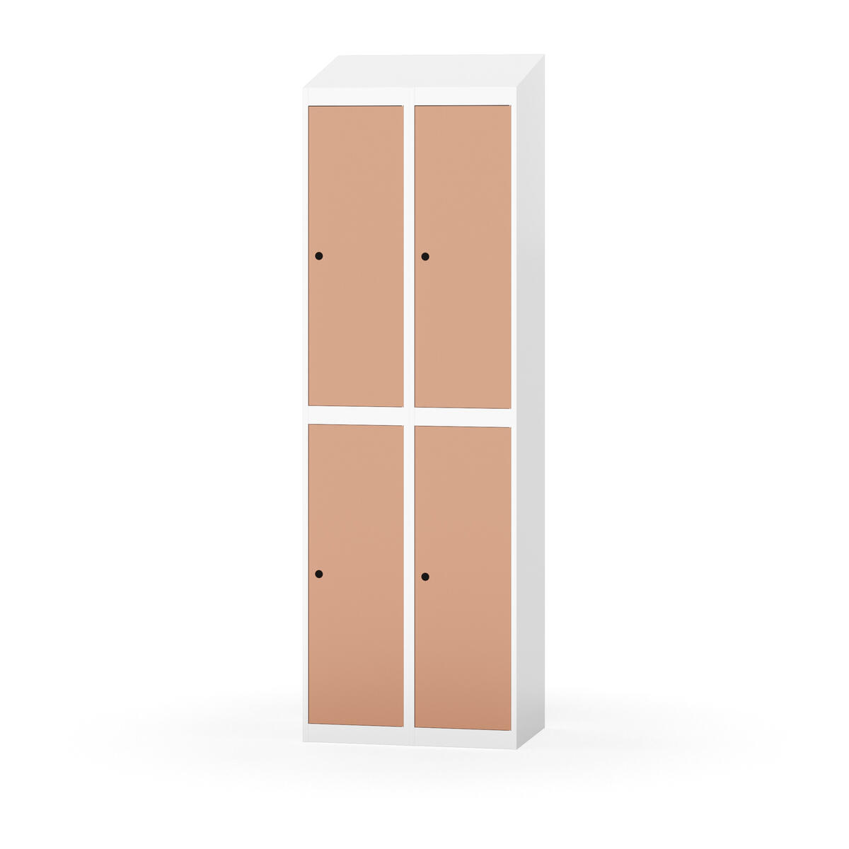 Täysin hitsattu runko. Valittavana pelti- tai korkeapainelaminaattipintainen ovi. Peltiovessa on pysäytin sekä teräsvahvike lukkoreiän ympärillä. Laminaattiovessa on teräskehys ja teräksinen pysäytin. Ovet aukeavat 90°. Sisällä on hylly ja vaatetanko kahdella kaksoiskoukulla. Kaapissa on tasainen pohja ilman kynnystä. Ilmastointireiät pohjassa ja katossa. Lukot ja sokkeli/jalusta tilataan erikseen omilla tuotenumeroillaan. Lukot tulevat asennettuna, sokkeli/jalusta asennetaan toimituksen yhteydessä.