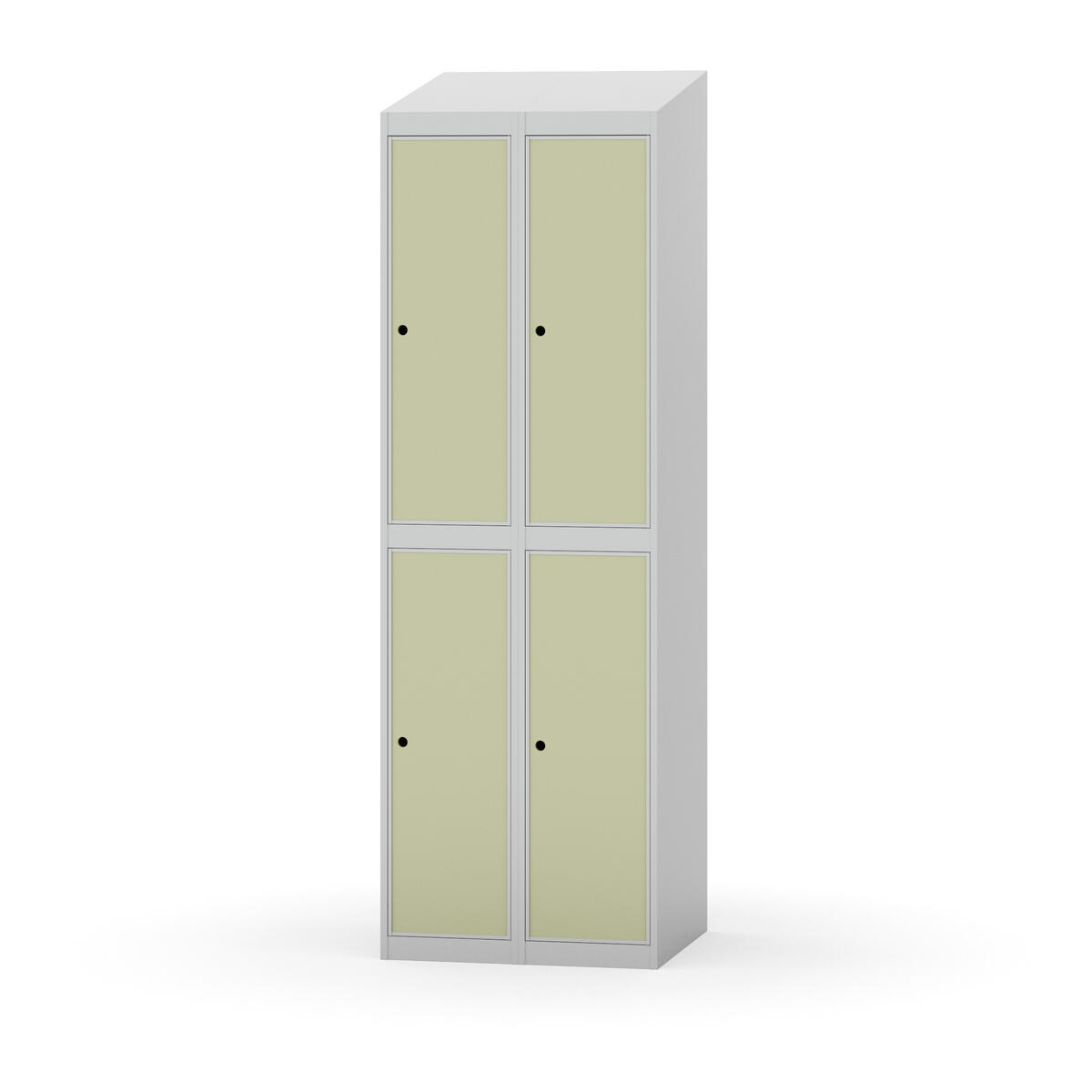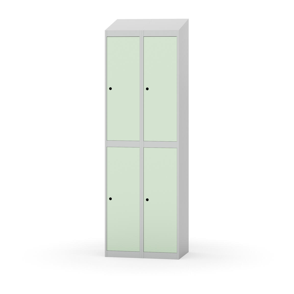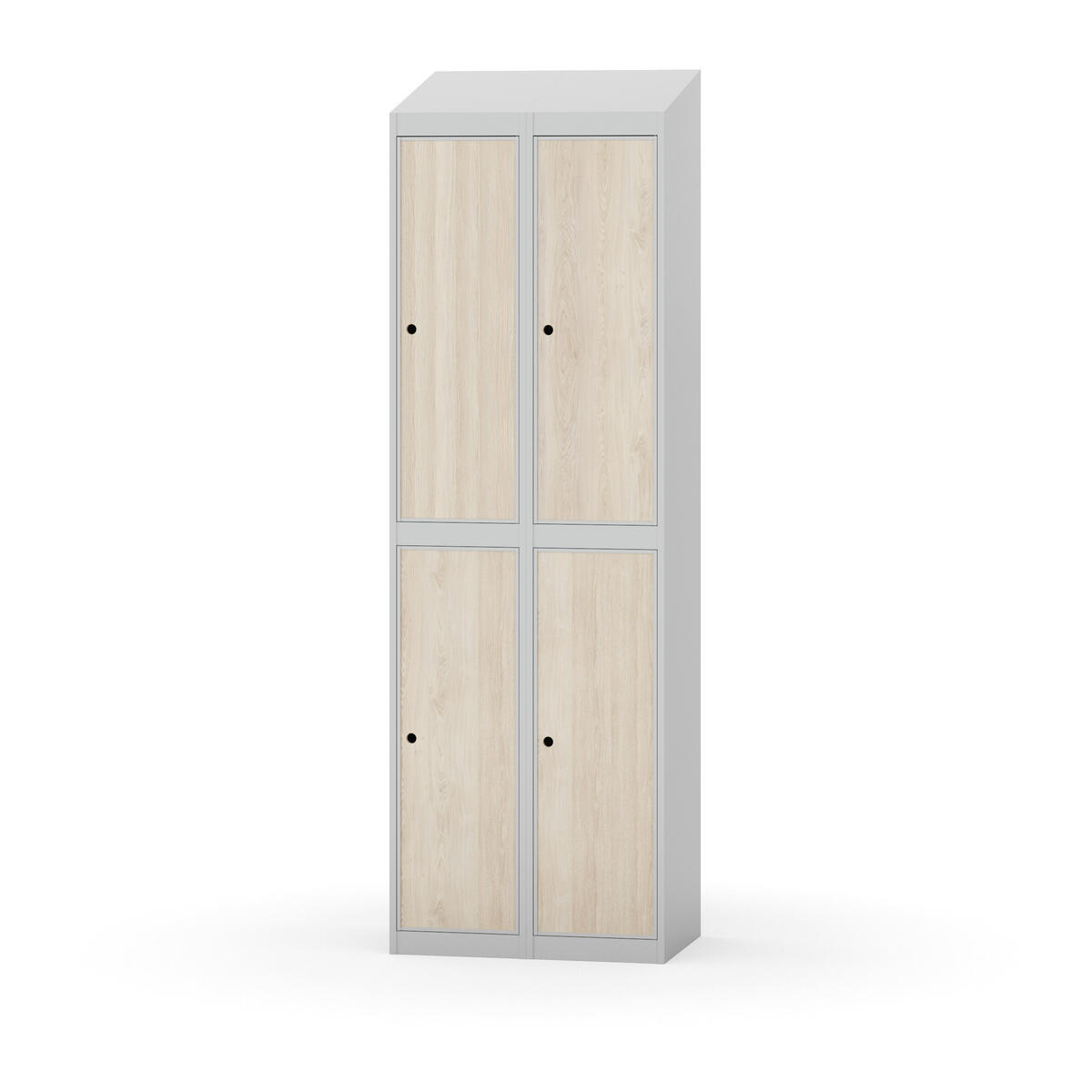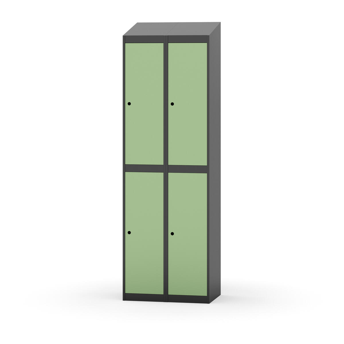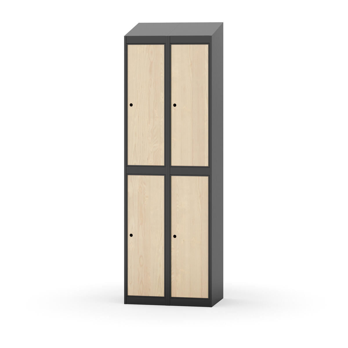 Täysin hitsattu runko. Valittavana pelti- tai korkeapainelaminaattipintainen ovi. Peltiovessa on pysäytin sekä teräsvahvike lukkoreiän ympärillä. Laminaattiovessa on teräskehys ja teräksinen pysäytin. Ovet aukeavat 90°. Sisällä on hylly ja vaatetanko kahdella kaksoiskoukulla. Kaapissa on tasainen pohja ilman kynnystä. Ilmastointireiät pohjassa ja katossa. Lukot ja sokkeli/jalusta tilataan erikseen omilla tuotenumeroillaan. Lukot tulevat asennettuna, sokkeli/jalusta asennetaan toimituksen yhteydessä.